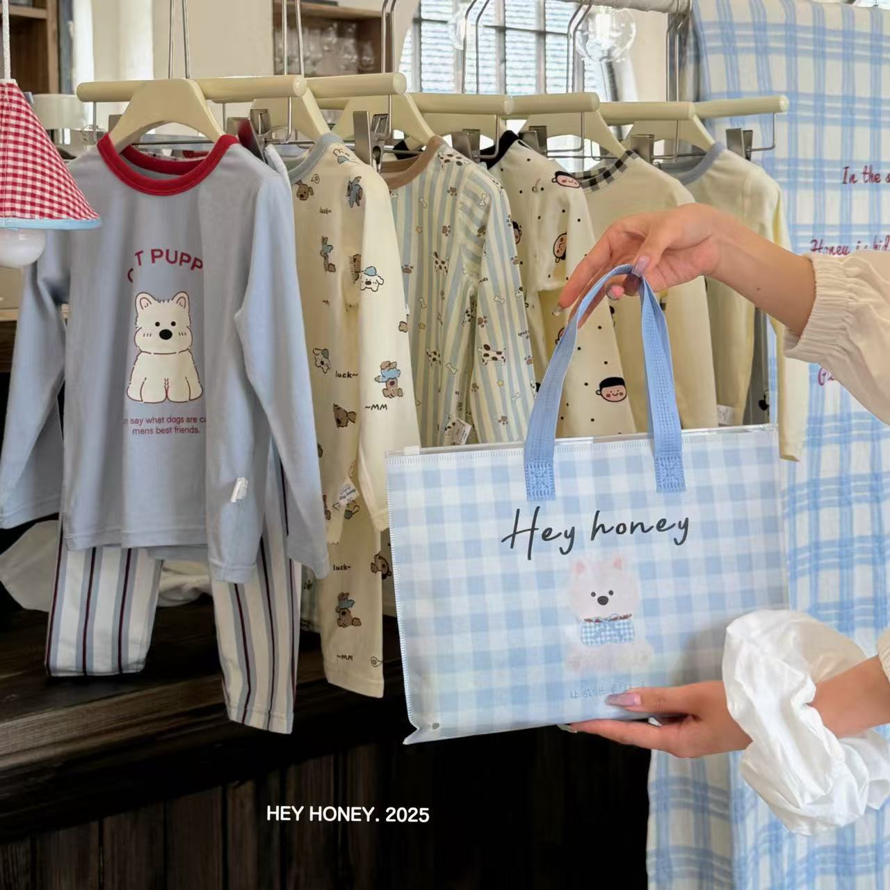 • 흰색 바탕에 파란색 커피 격자 무늬 작은 동물