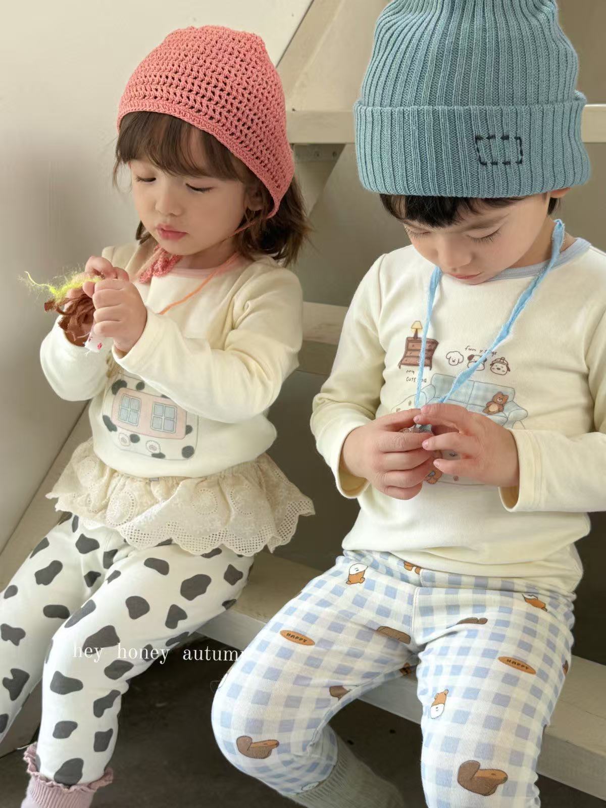 어린이 가을 겨울 잠옷 A급 200클레카 면 가을옷 상의 남녀 아동 가을옷 세트 대형 소형 아동복스토어 가기