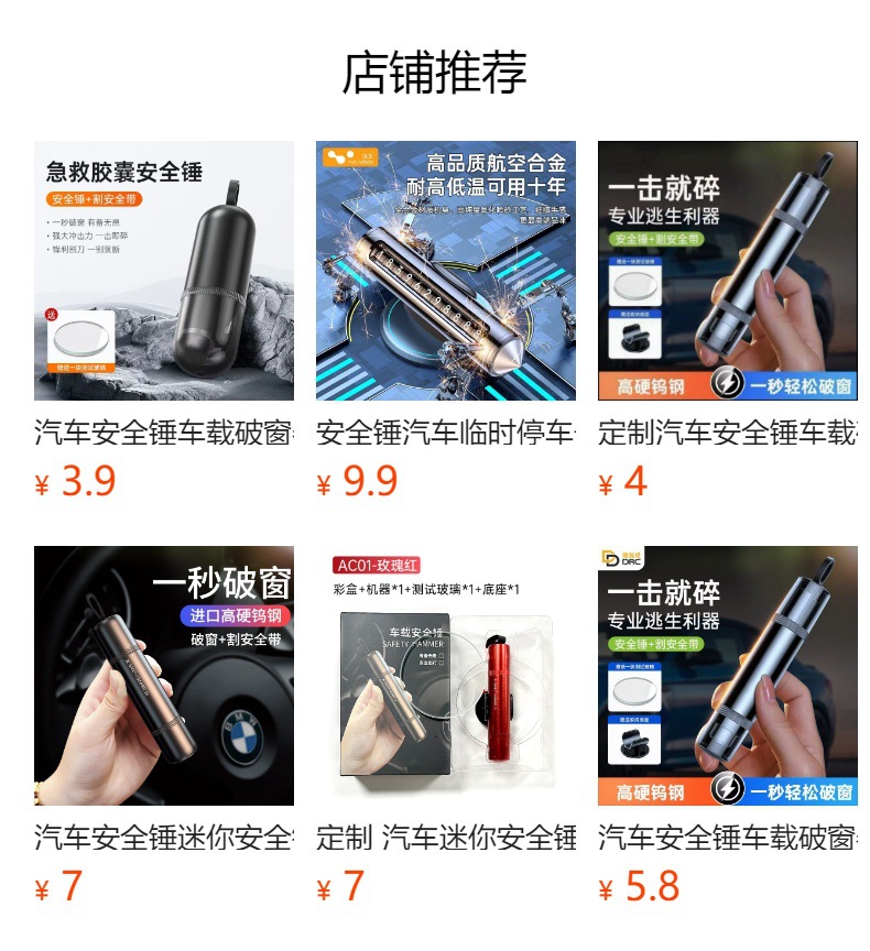 자동차 창문 파괴기, 유리 파괴기, 창문 안전 벨트 절단기, 투인원 자동차 안전 망치 제조업체스토어 가기