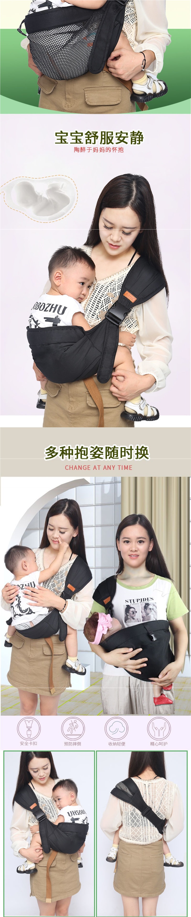 여름 나들이용 얇은 아기띠, 어린이용 거즈망, 간편하고 휴대성이 뛰어난 앞안아 아기띠스토어 가기