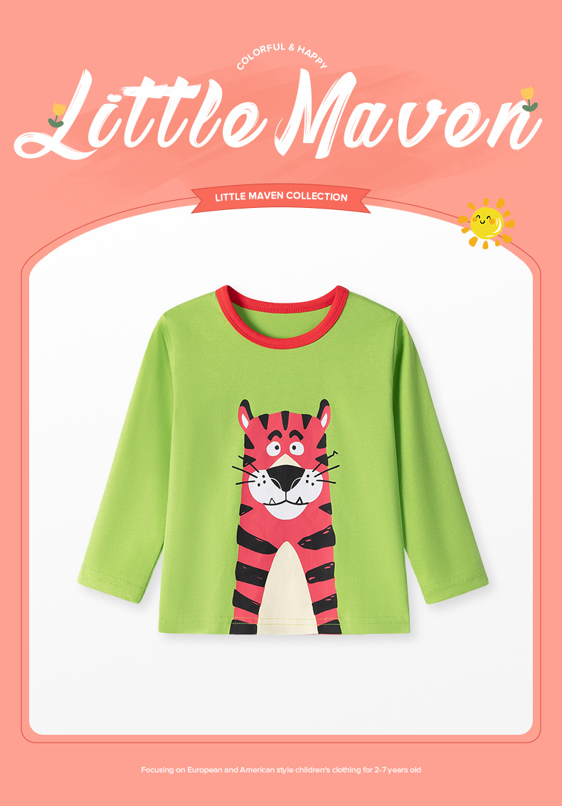Little maven 유럽과 미국 스타일의 소년 티셔츠 가을 만화 베이비 탑 긴 소매 면화 어린이 티셔츠 도매스토어 가기
