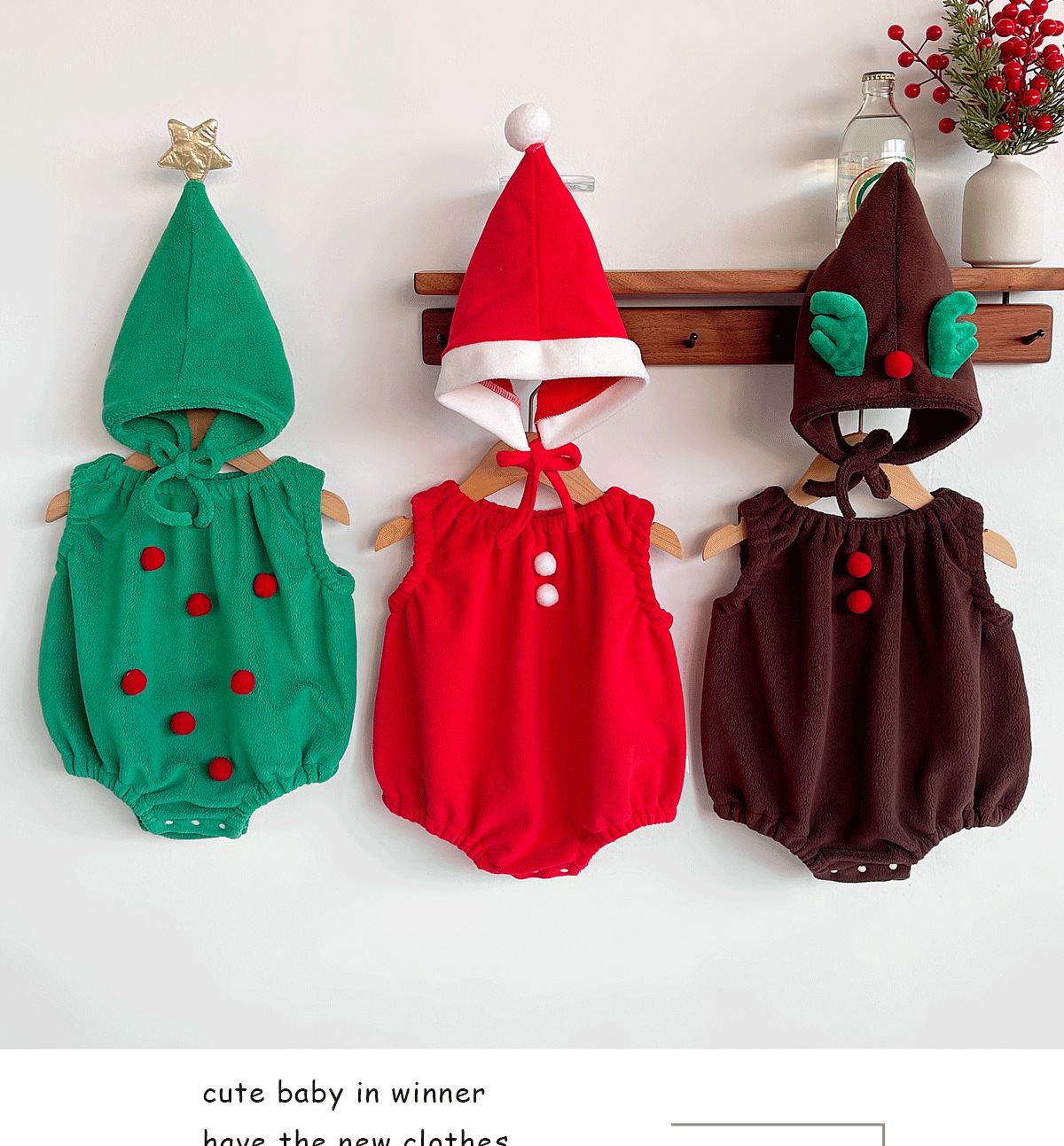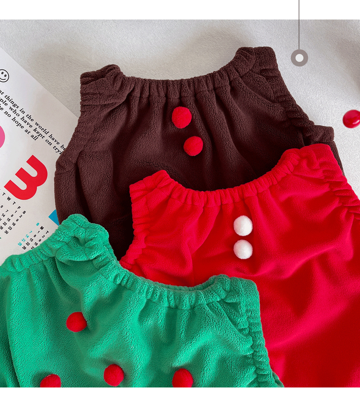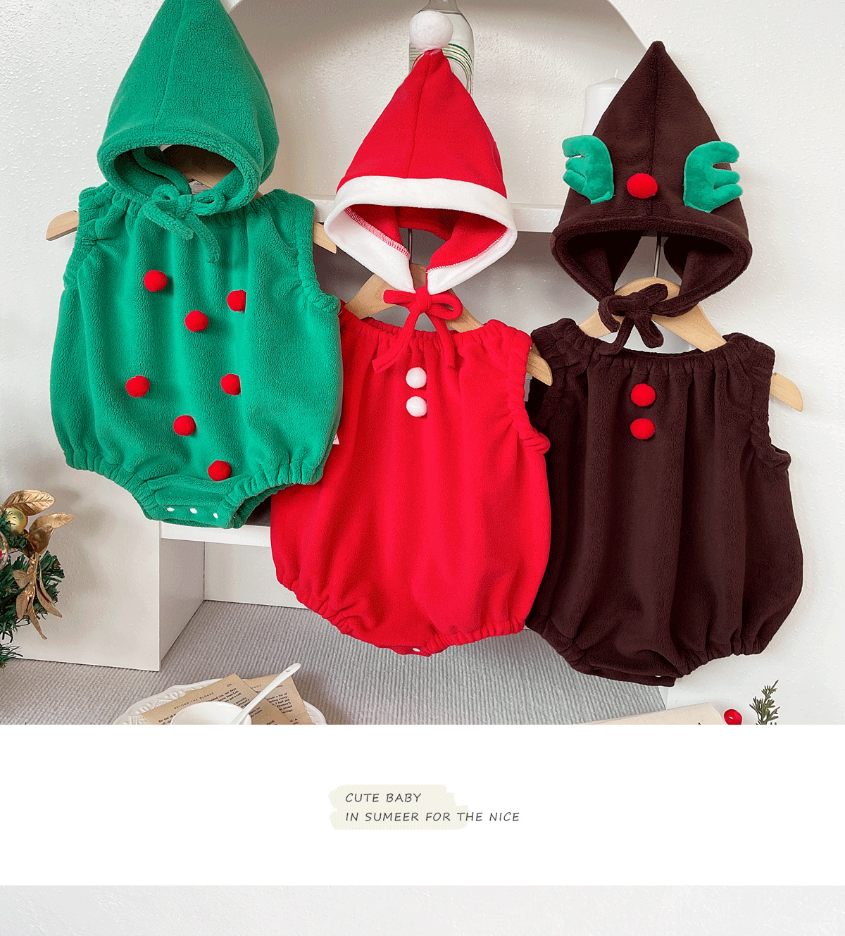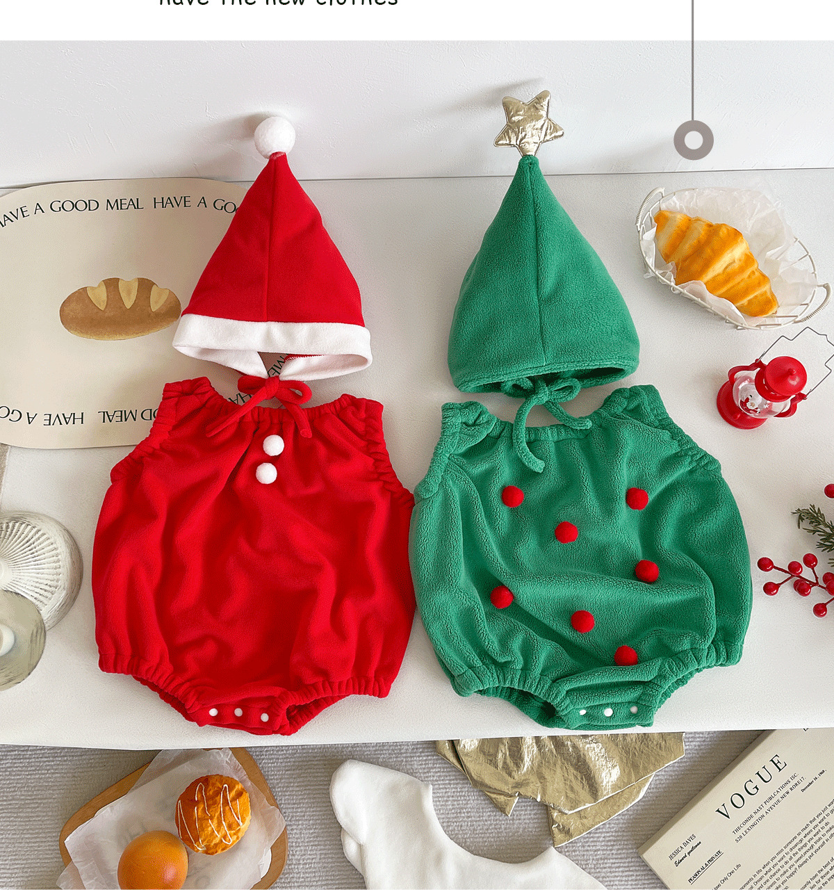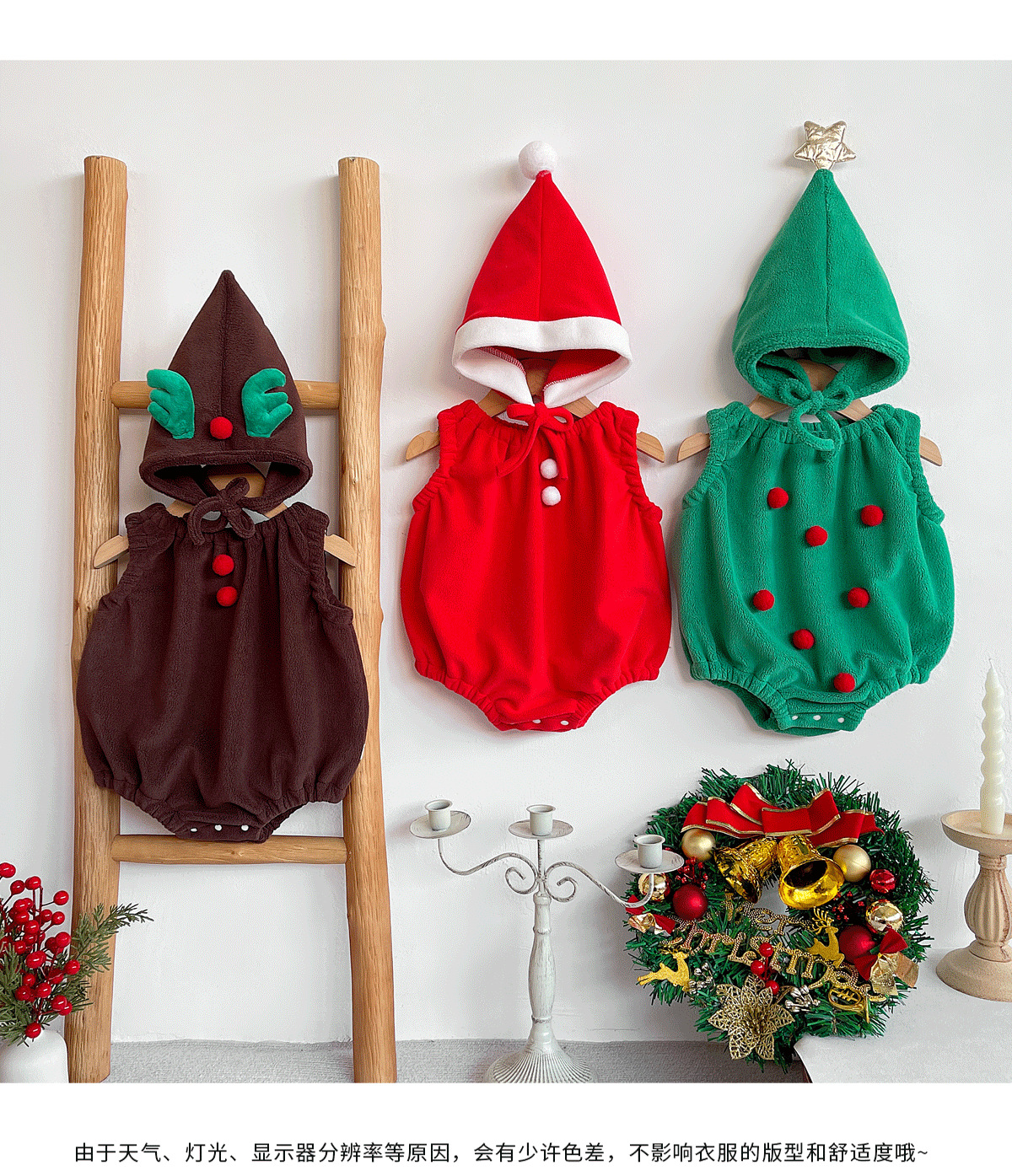 가을 겨울 핫 스타일 2025 크리스마스 시리즈 귀여운 플러시 후드 조끼 작은 양복 조끼 가방 아기와 어린이를위한 새해 옷