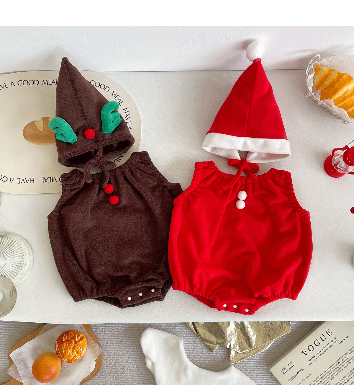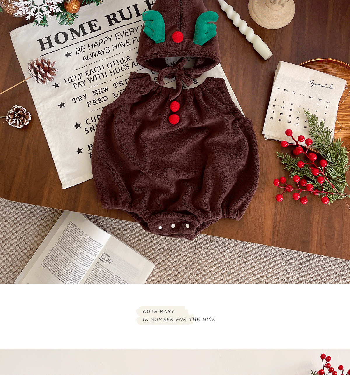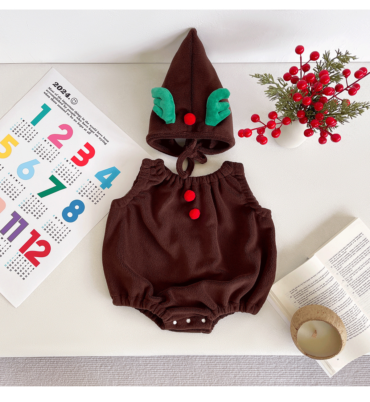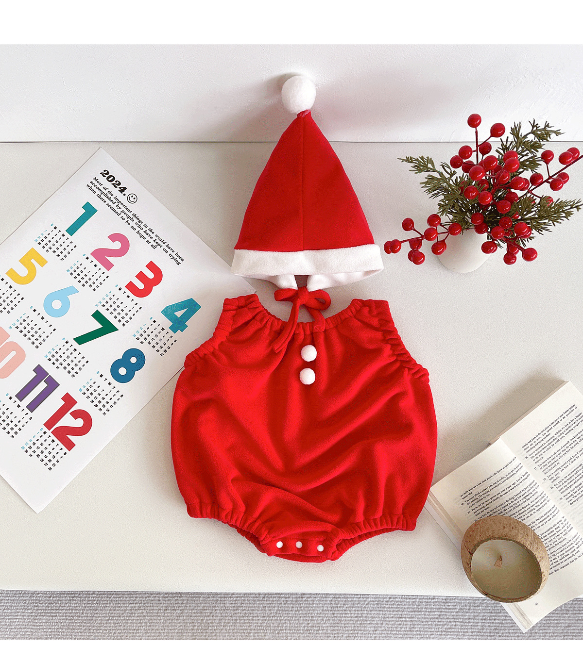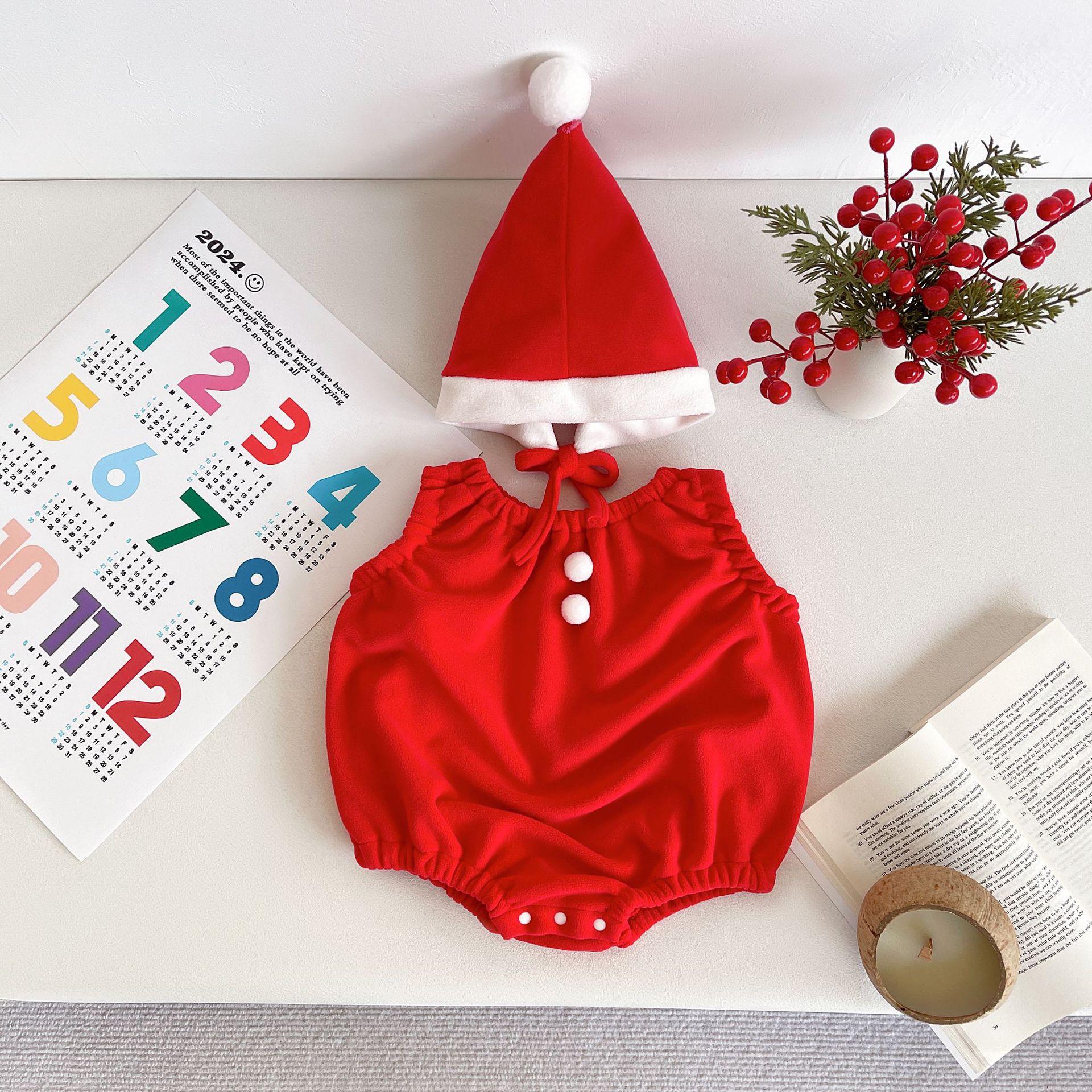 가을 겨울 핫 스타일 2025 크리스마스 시리즈 귀여운 플러시 후드 조끼 작은 양복 조끼 가방 아기와 어린이를위한 새해 옷