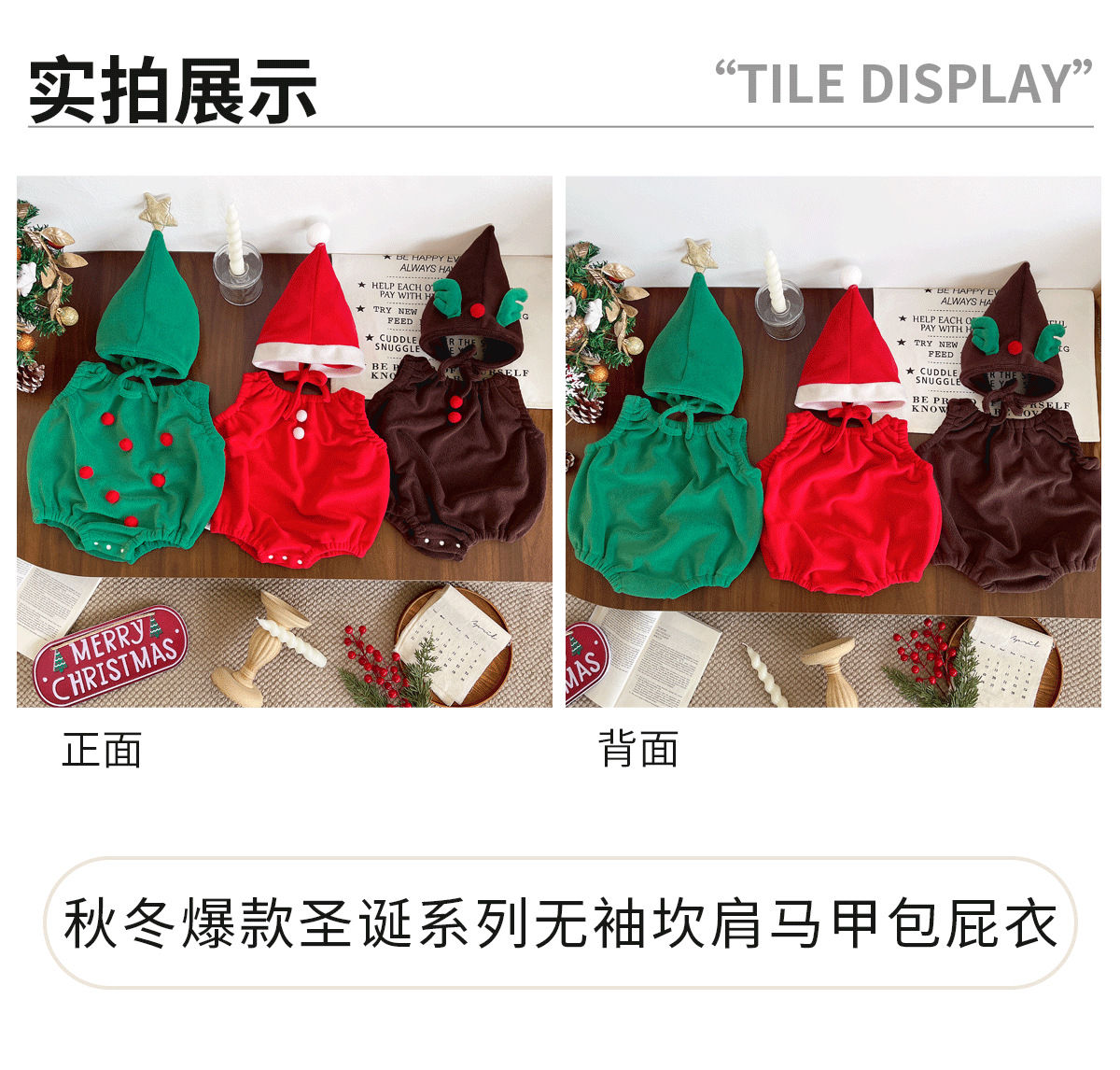 가을 겨울 핫 스타일 2025 크리스마스 시리즈 귀여운 플러시 후드 조끼 작은 양복 조끼 가방 아기와 어린이를위한 새해 옷스토어 가기