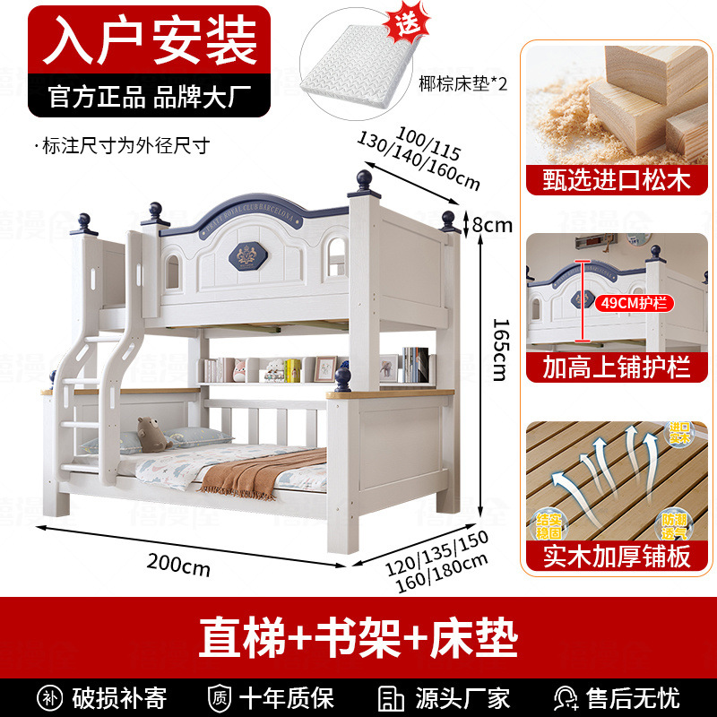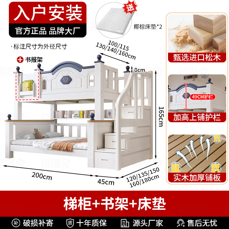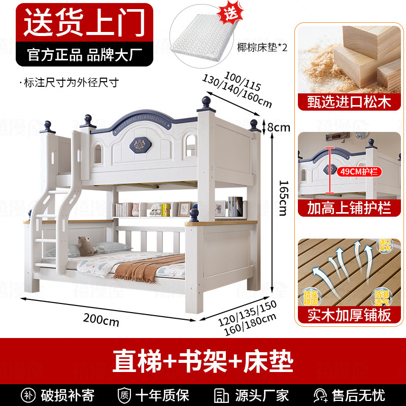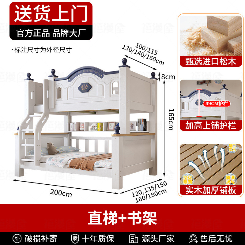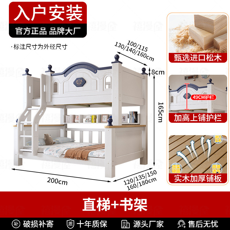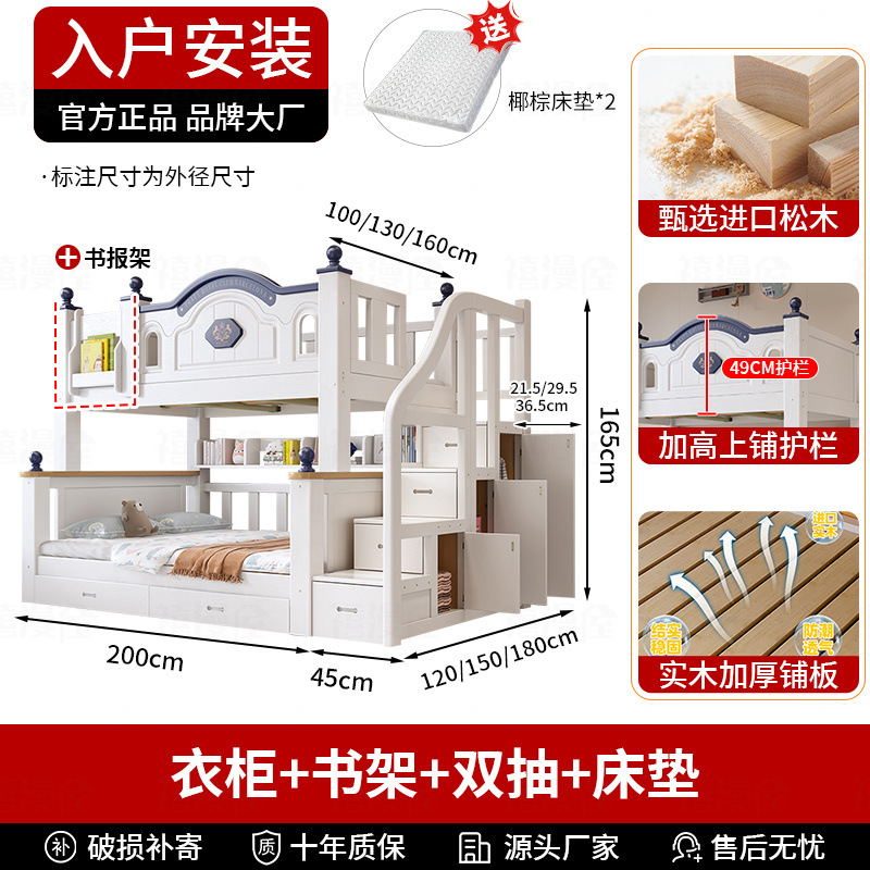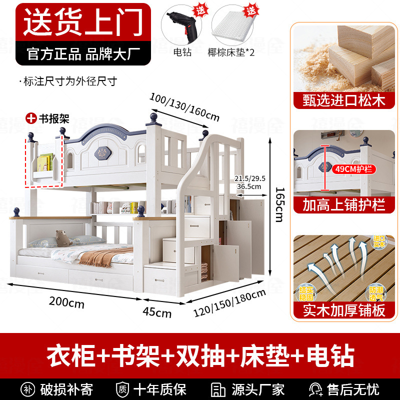 Ximanwu 단단한 나무 이층 침대 공장 직접 판매 어린이 침대 다기능 강화 및 두꺼운 작은 아파트 이층 침대