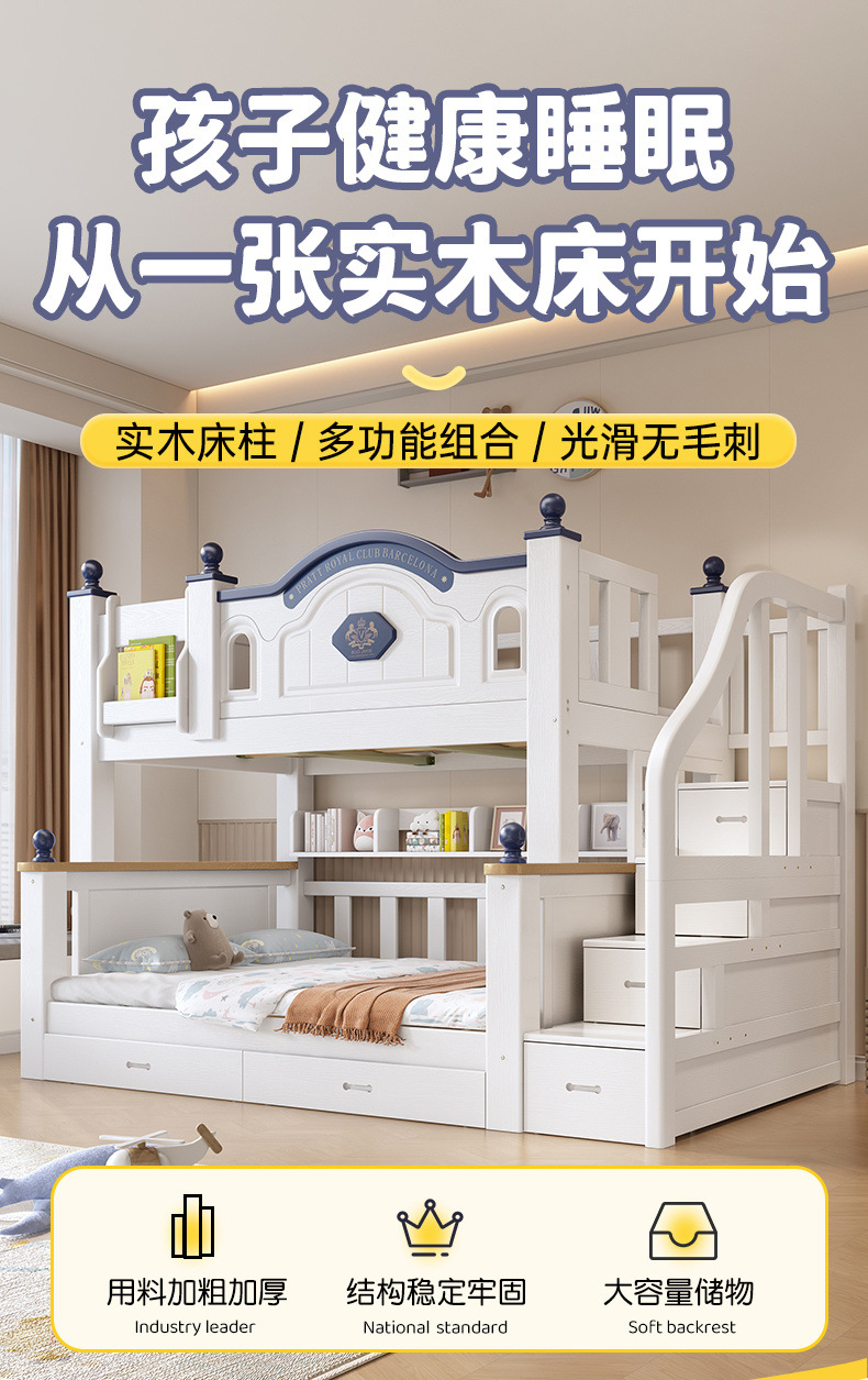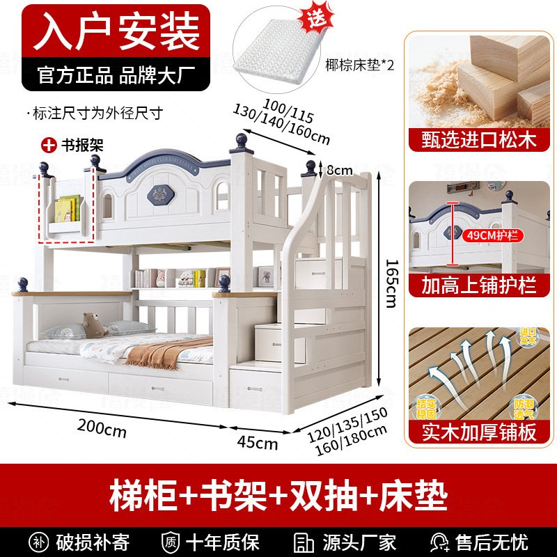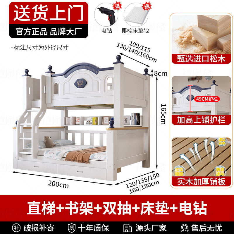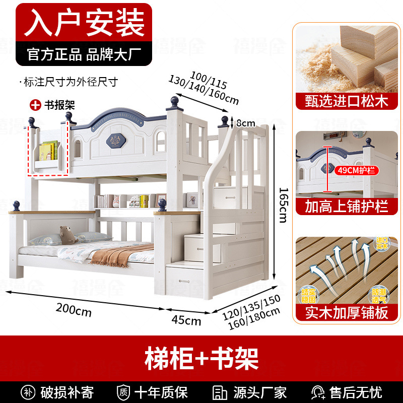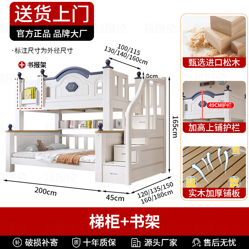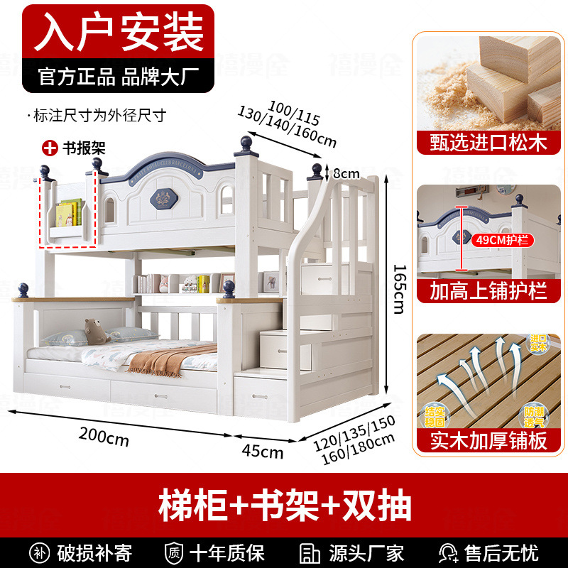 Ximanwu 단단한 나무 이층 침대 공장 직접 판매 어린이 침대 다기능 강화 및 두꺼운 작은 아파트 이층 침대