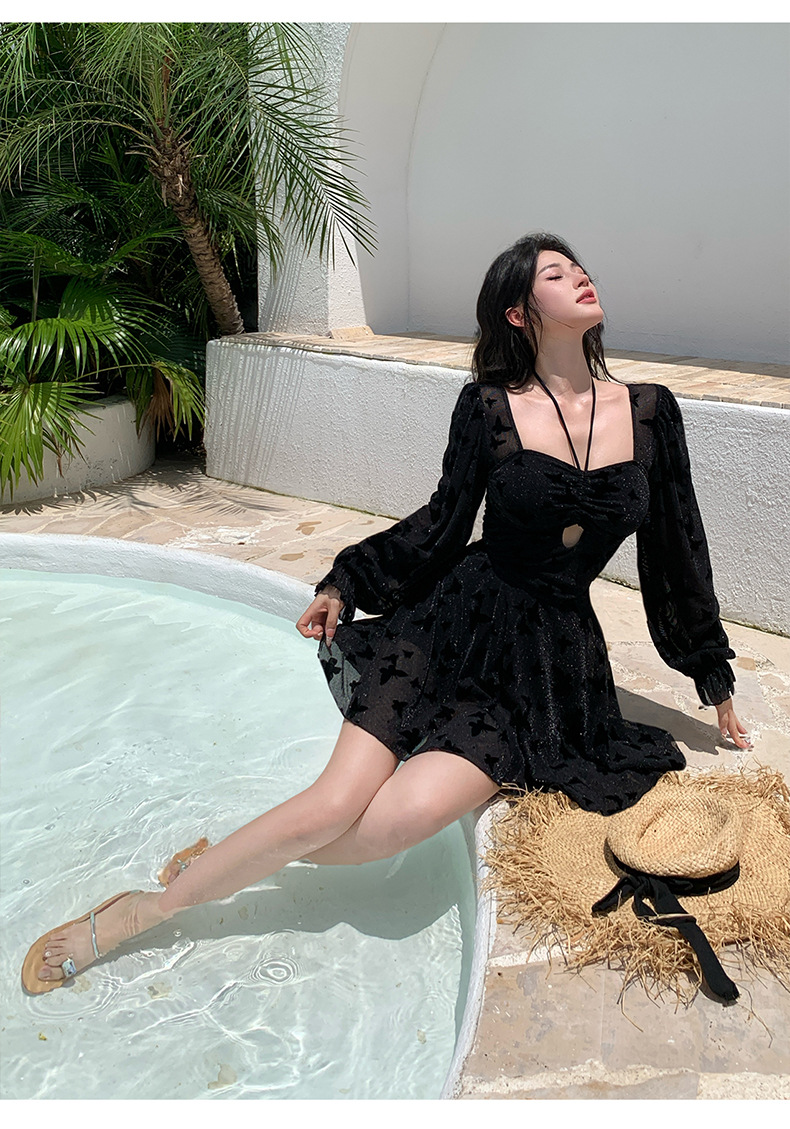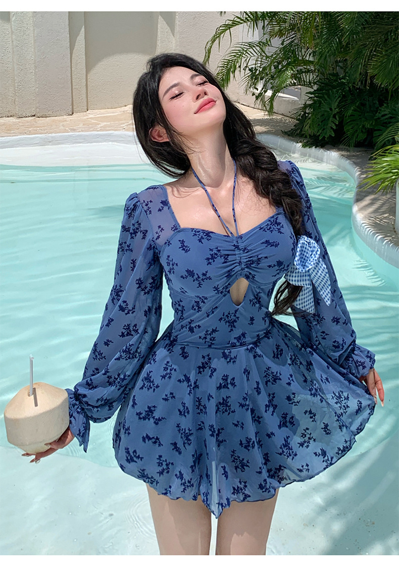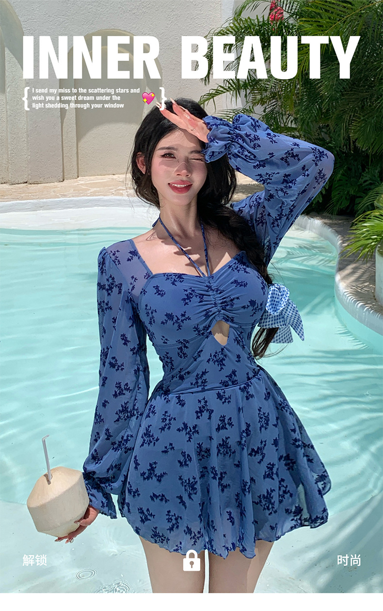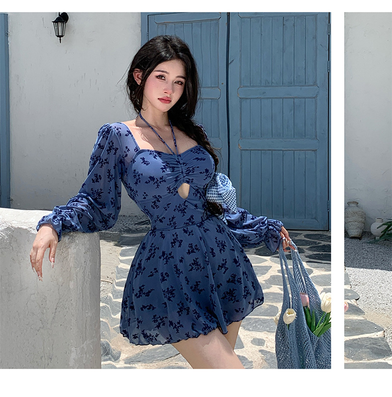 AliExpress 플러스 사이즈 수영복 여성 100kg 여름 원피스 스커트 슬리밍 배 커버 태양 보호 긴 소매 뚱뚱한 mm 여성 수영복