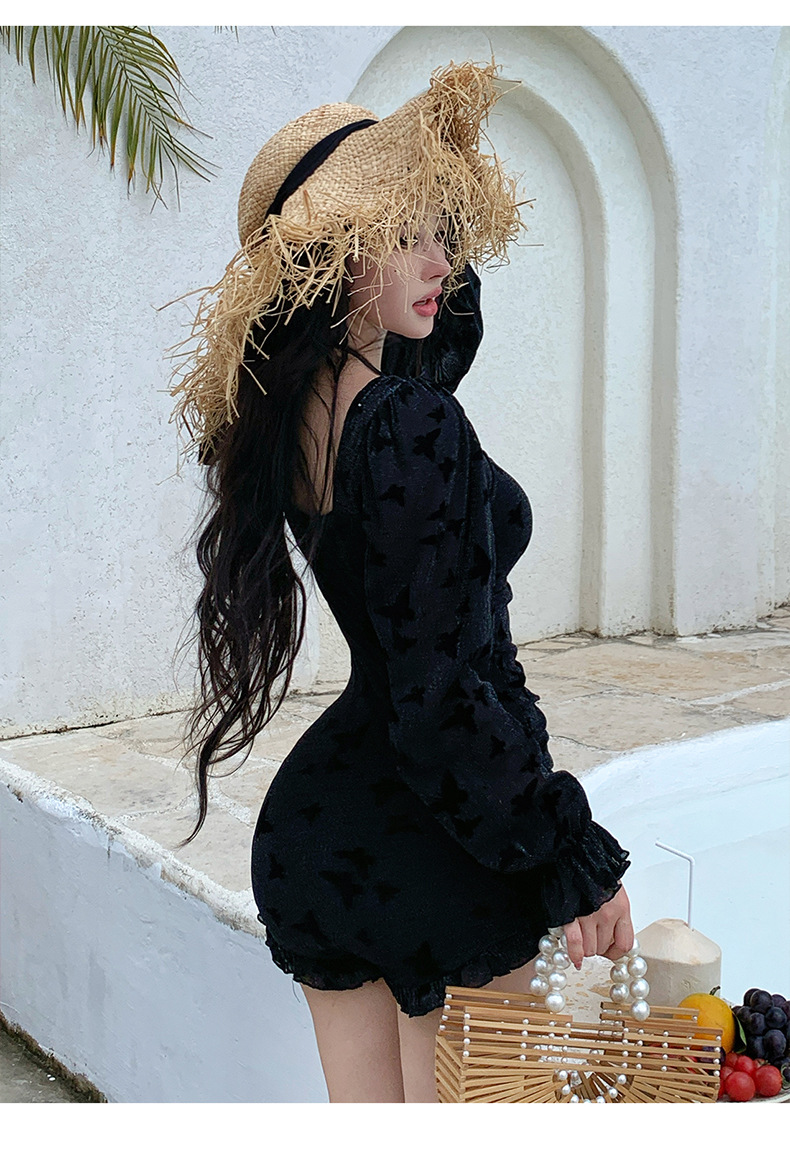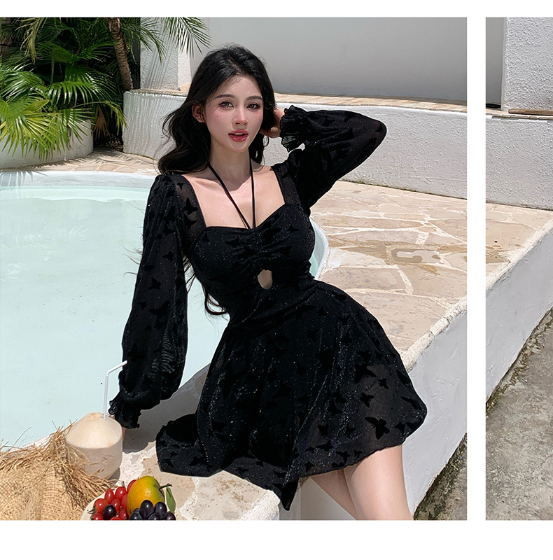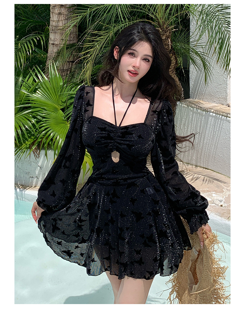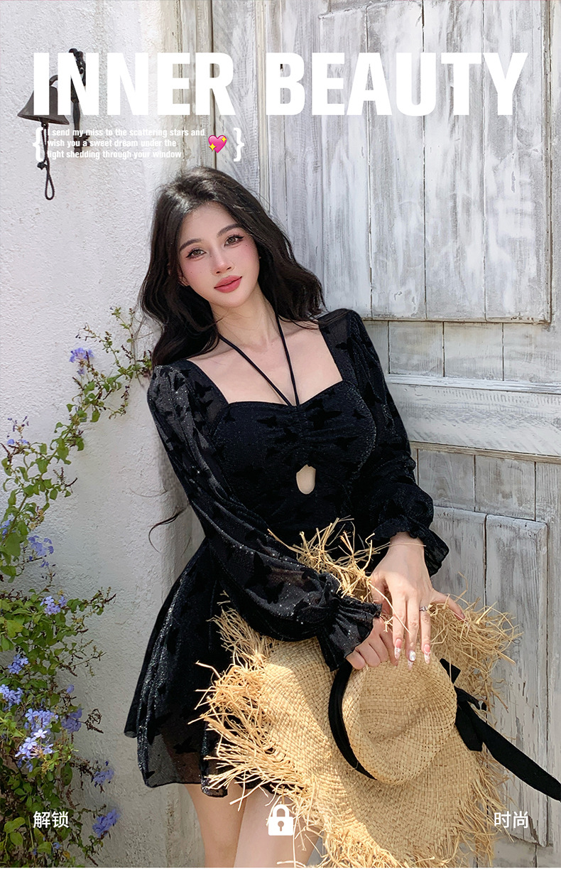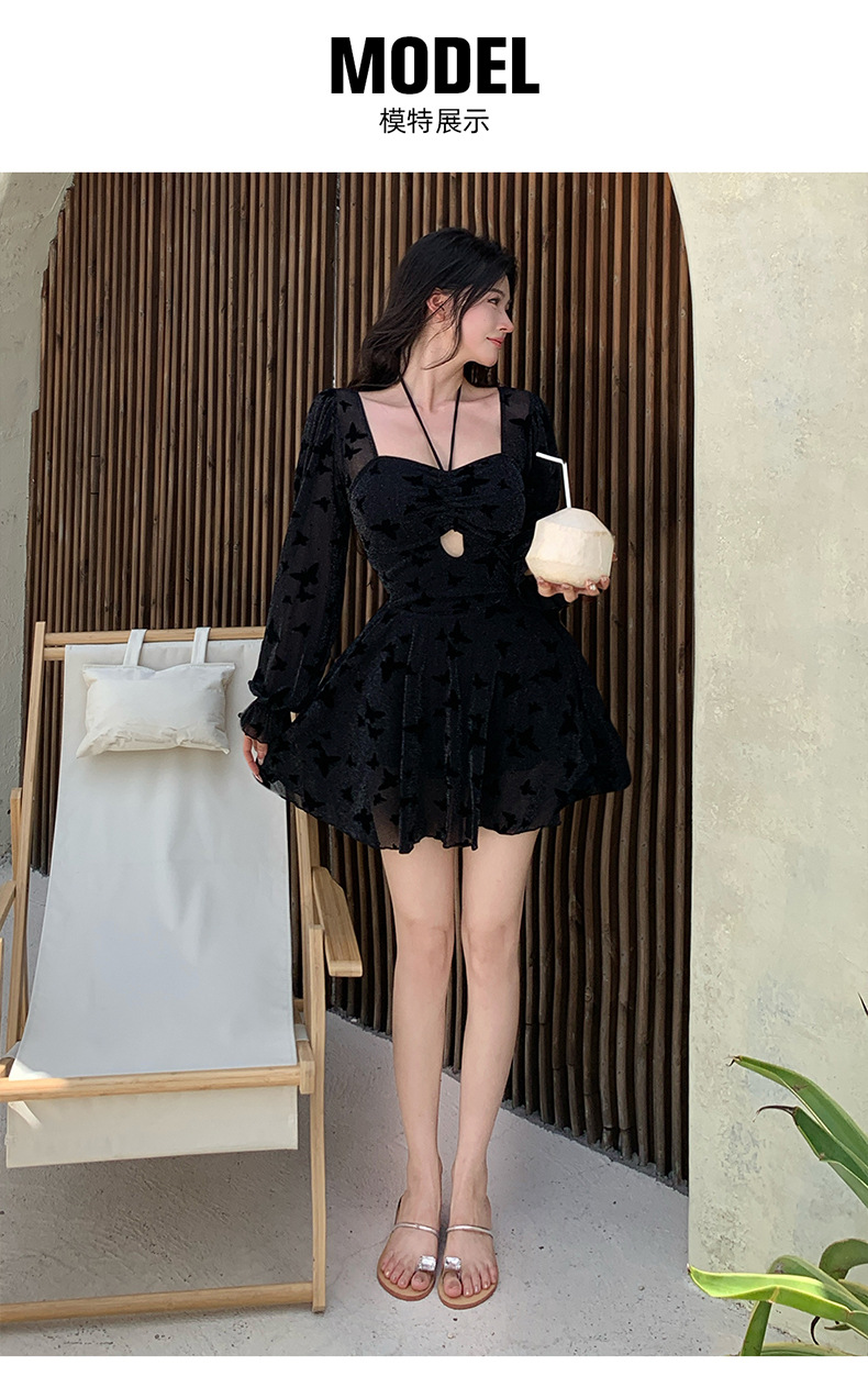 AliExpress 플러스 사이즈 수영복 여성 100kg 여름 원피스 스커트 슬리밍 배 커버 태양 보호 긴 소매 뚱뚱한 mm 여성 수영복