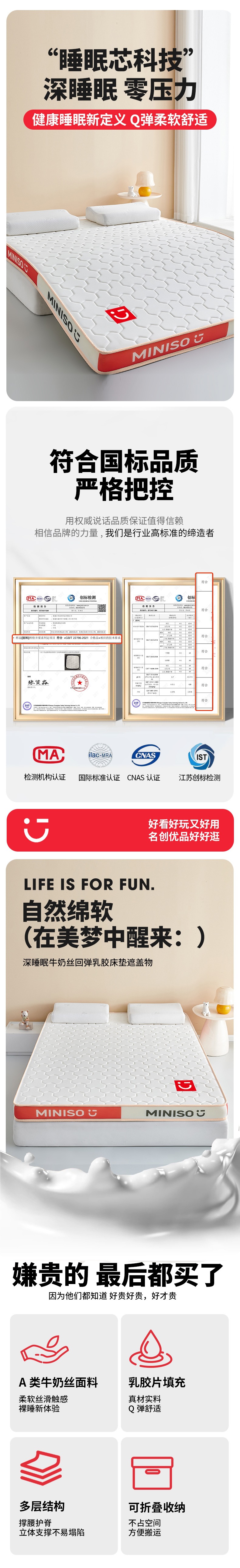 Miniso 라텍스 매트리스 커버 부드러운 쿠션 홈 침실 기숙사 학생 싱글 다다미 매트리스 하드 쿠션스토어 가기
