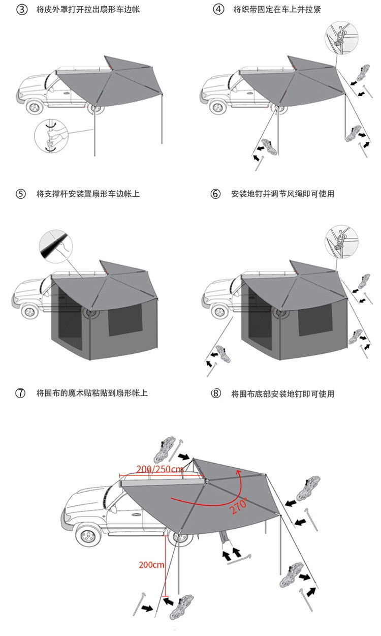 270도 부채꼴 캐노피 텐트 야외 캠핑 캠핑 자동차 옆 차양 자동차 지붕 측면 텐트 기타스토어 가기