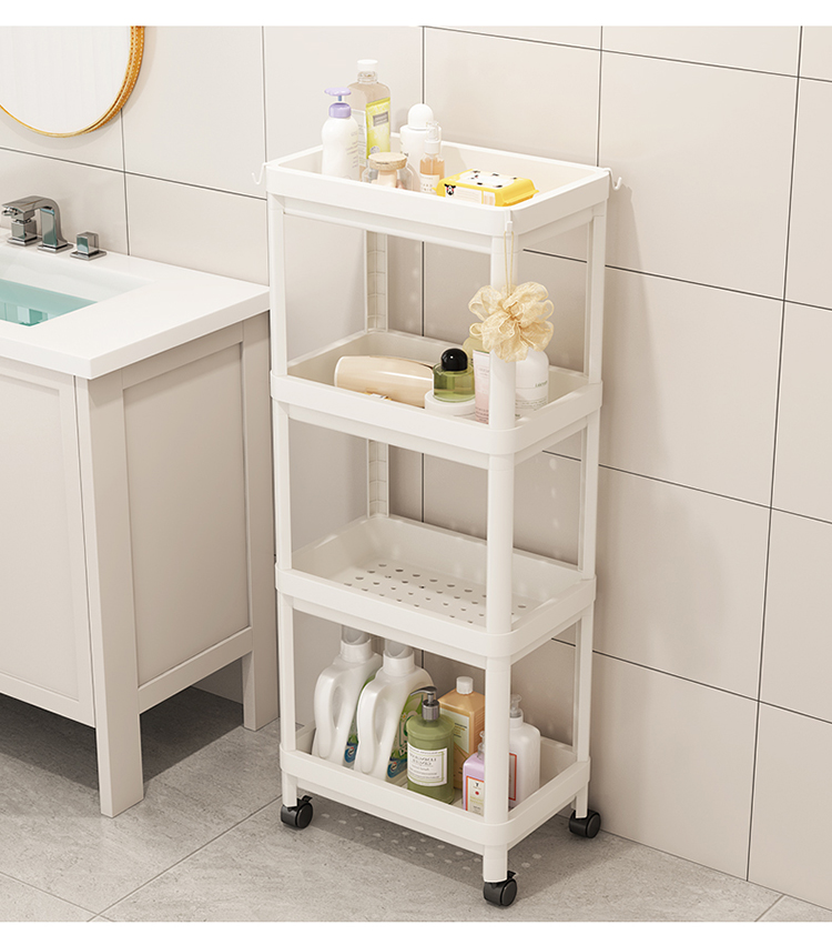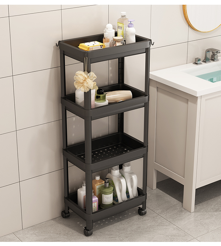 바닥에서 천장까지 이어지는 욕실 욕실 다층 화장품 보관 랙 가정용 틈새 보관 랙 스낵 카트스토어 가기