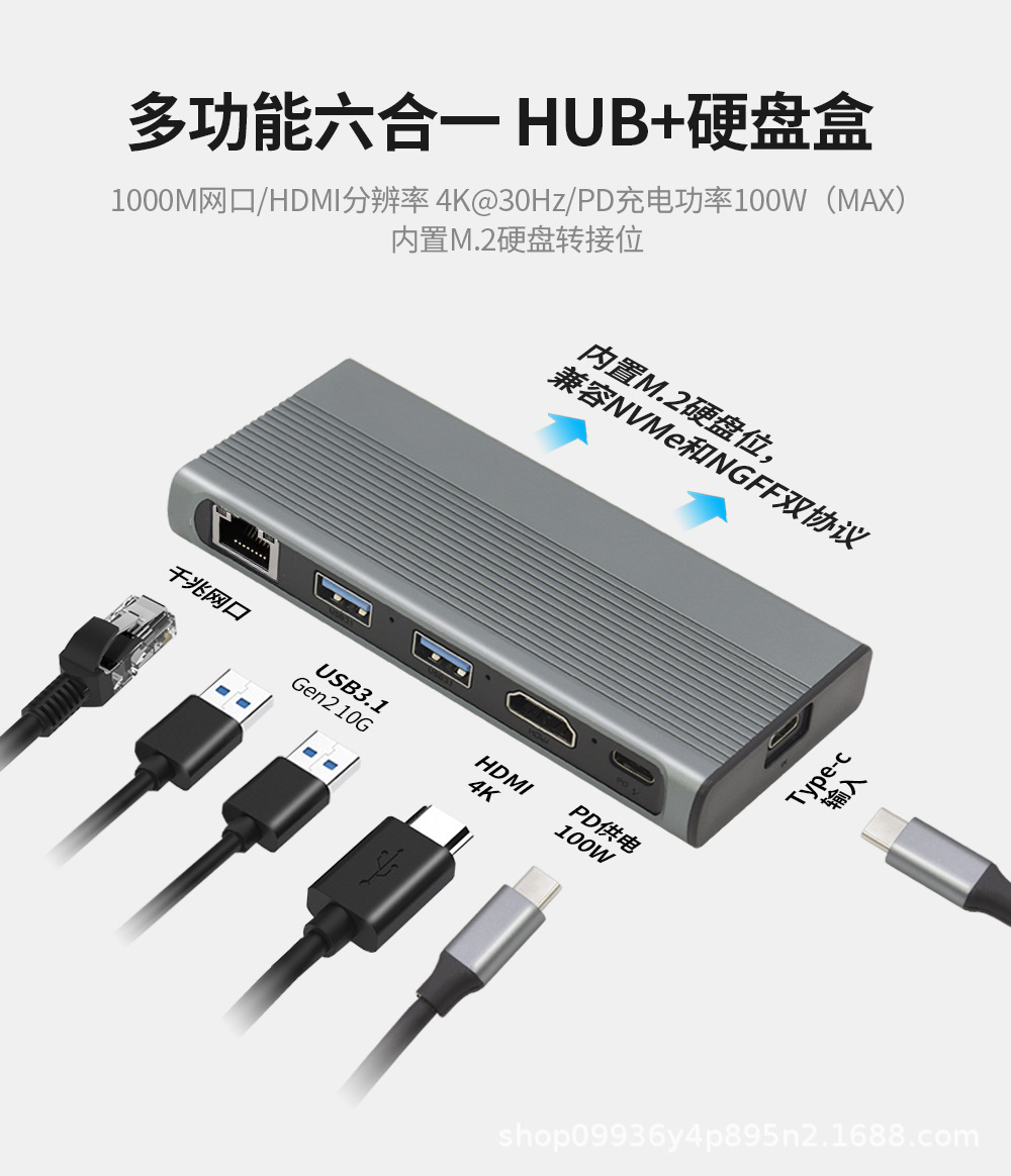6-in-1 Type-C 확장 도크 USB 허브 SSDM.2 모바일 하드 디스크 박스 고속 전송 다중 인터페이스스토어 가기