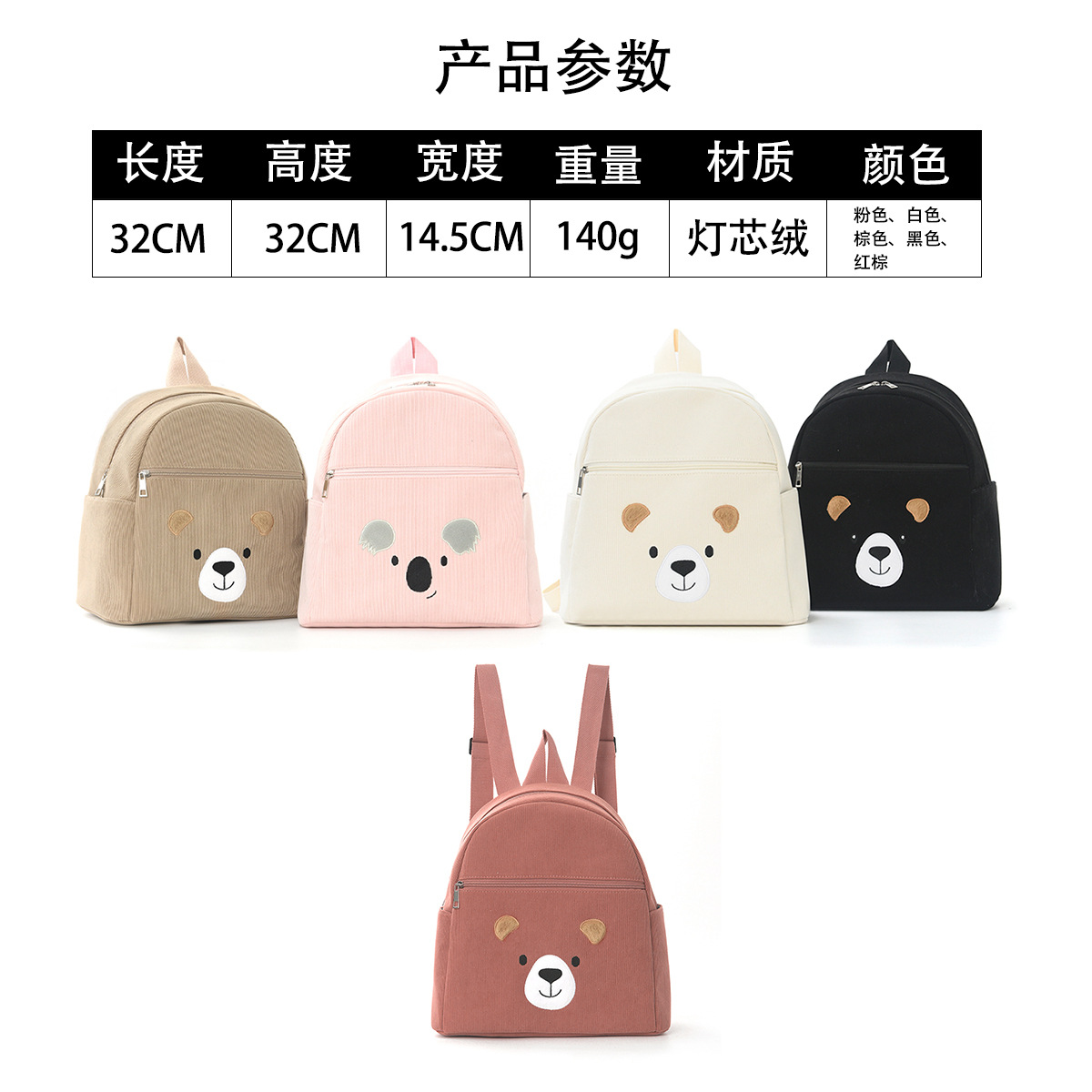 Feihong 국경 간 코듀로이 배낭 학생 캐주얼 만화 학교 가방 대용량 세련되고 귀여운 어린이 배낭스토어 가기