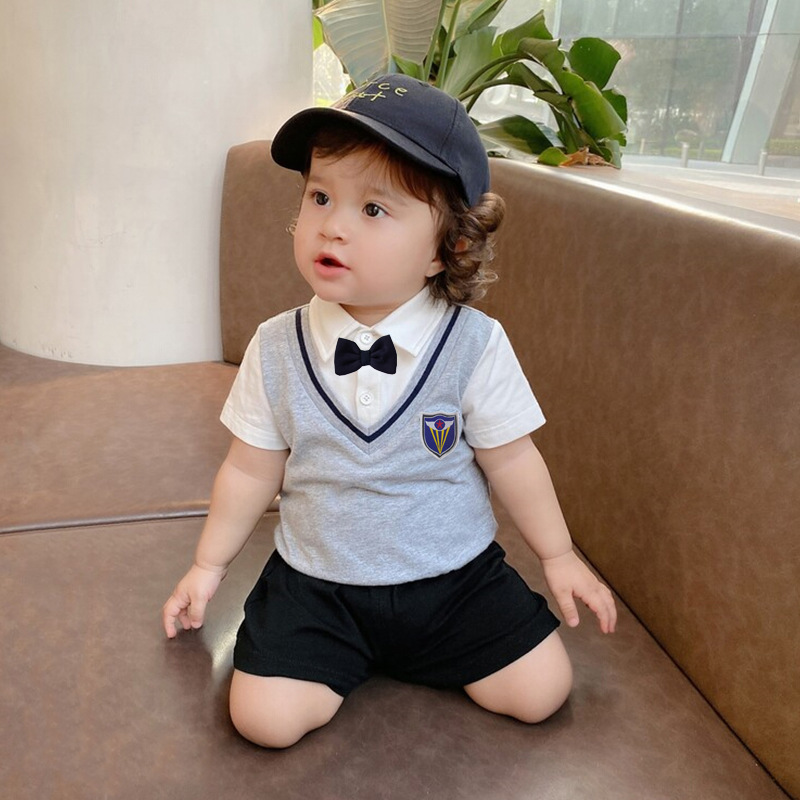 맞춤형 소년 유럽과 미국 여름 대학 스타일 반팔 신사 정장 유아 티셔츠 아기 폴로 셔츠 대외 무역