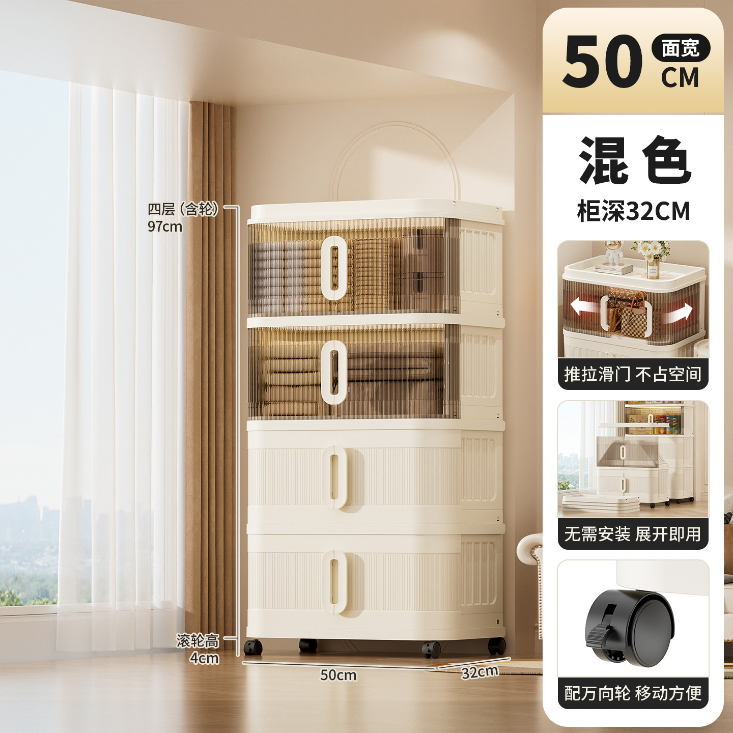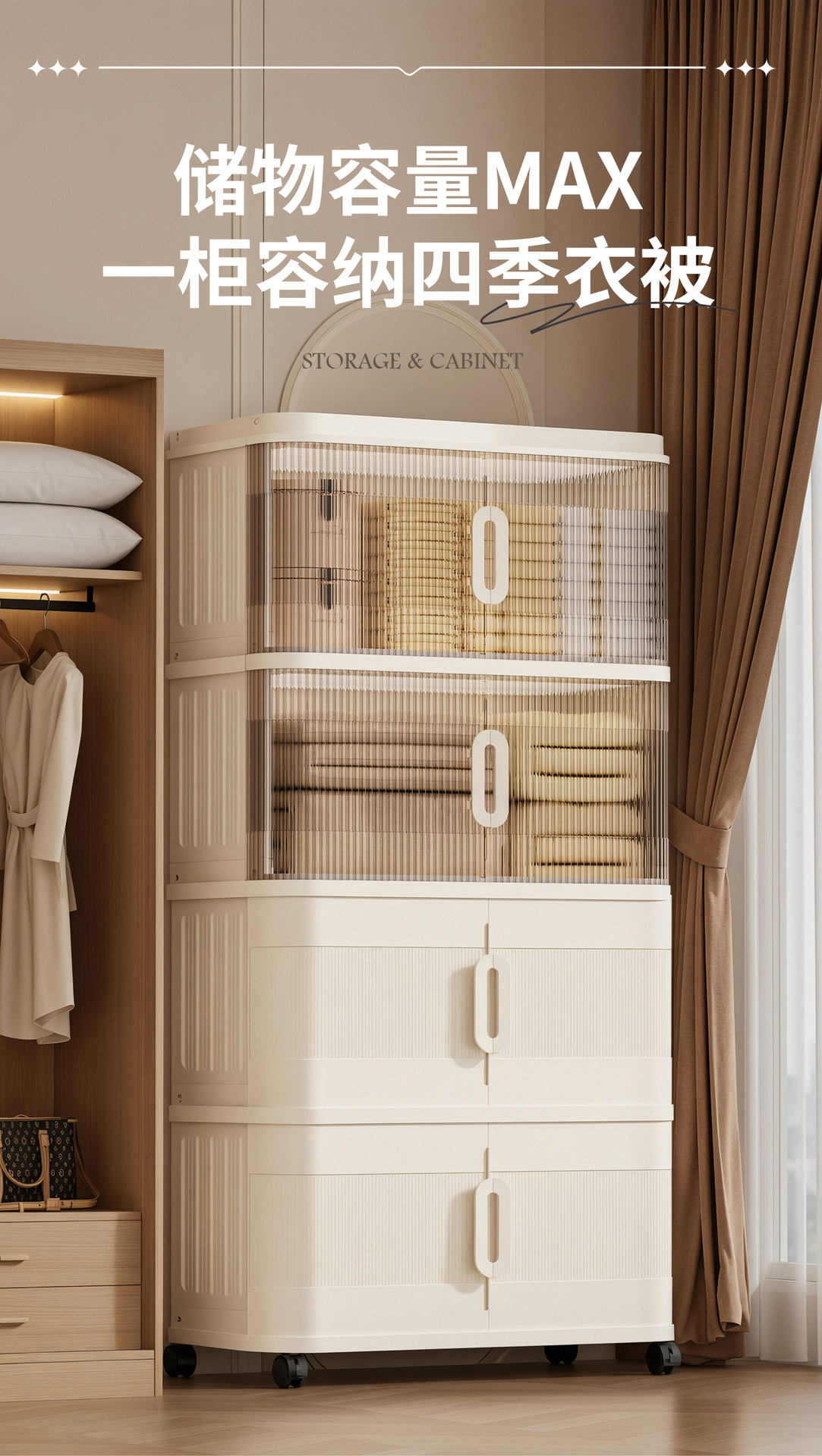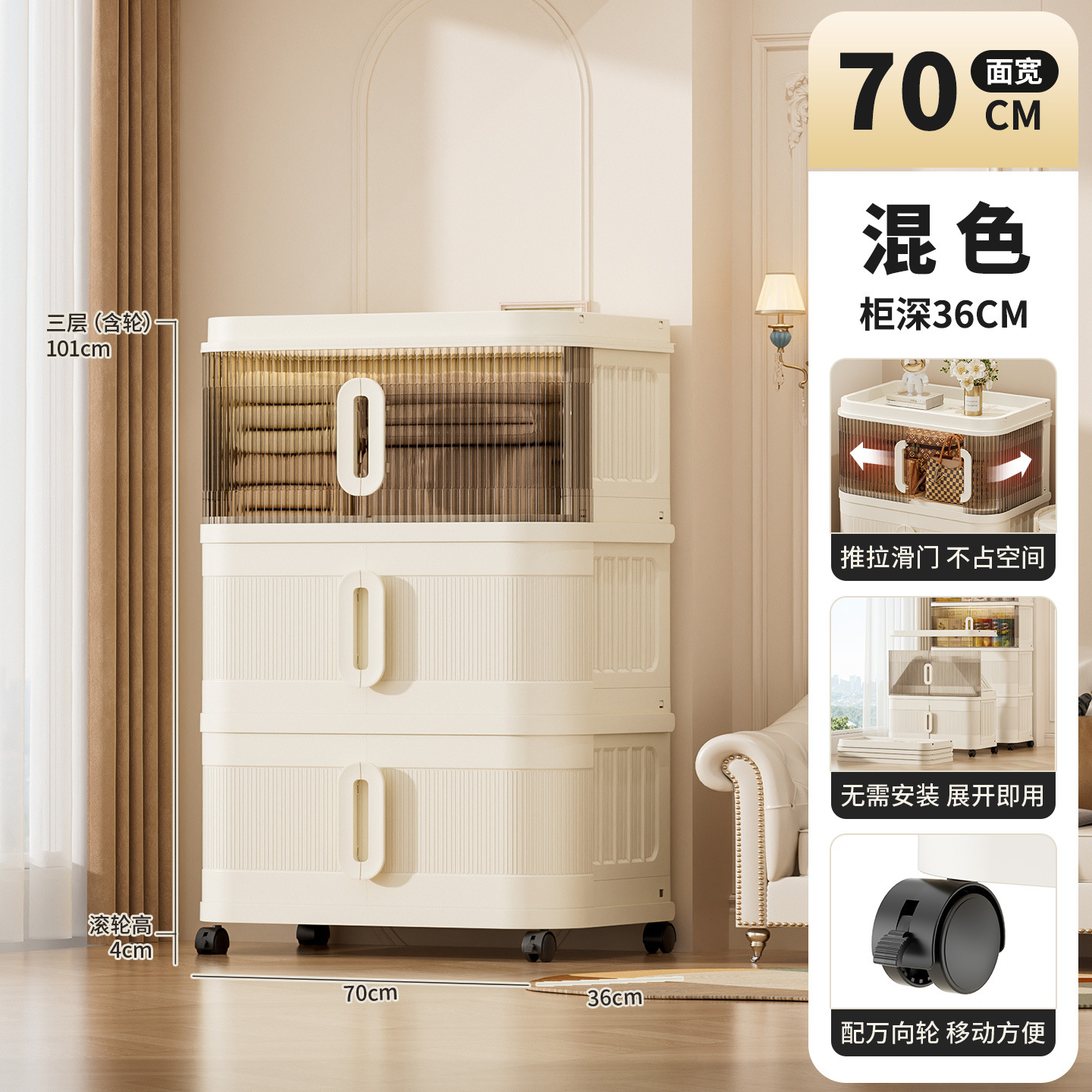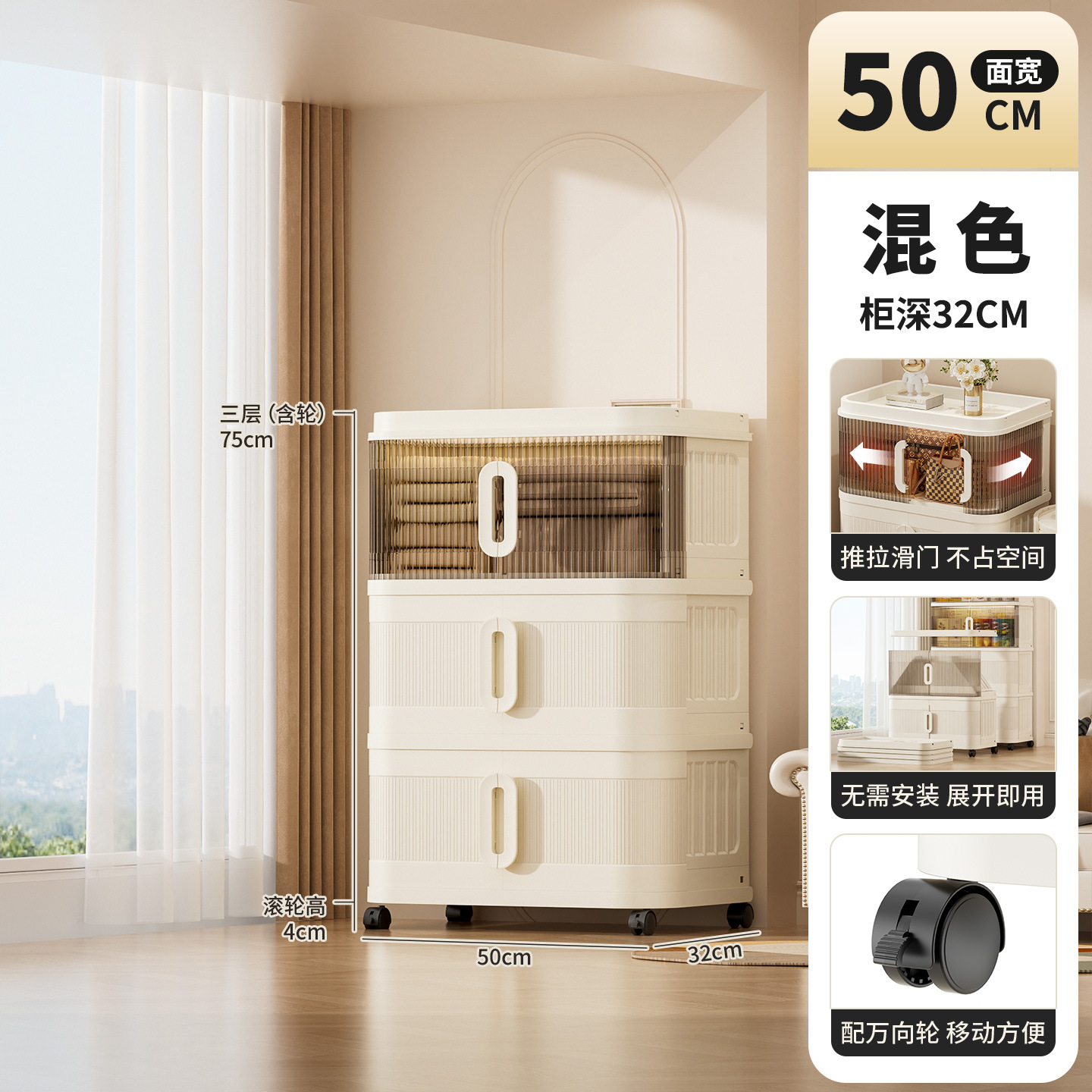 국경 간 배송 의류 보관 캐비닛 슬라이딩 롤링 도어 접이식 상자 이불 보관 상자 대용량 정리 보관 캐비닛스토어 가기