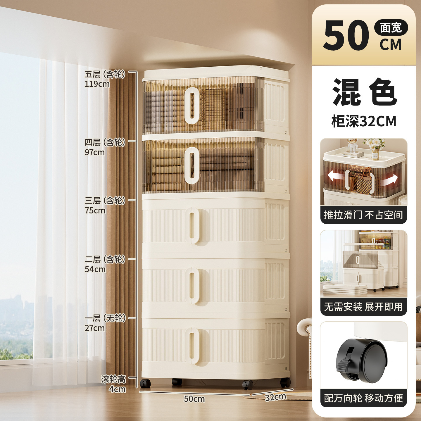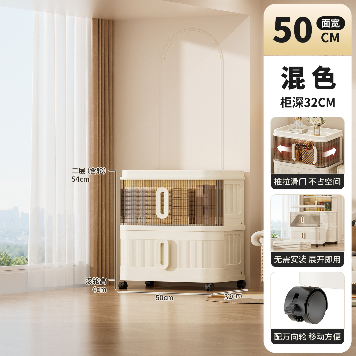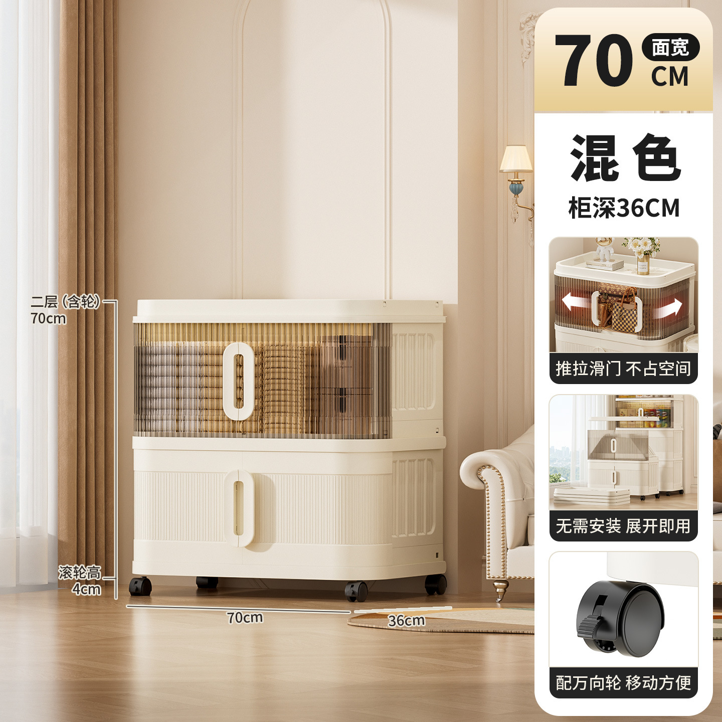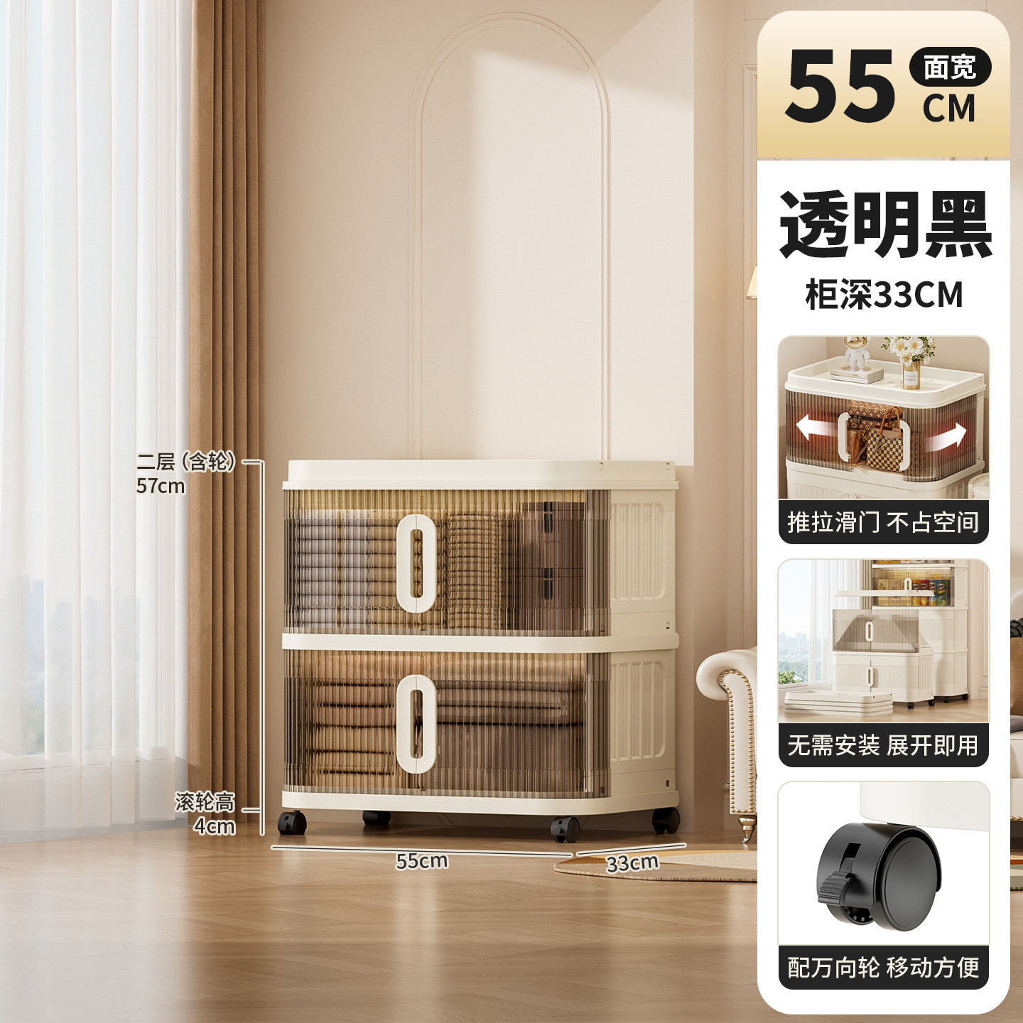국경 간 배송 의류 보관 캐비닛 슬라이딩 롤링 도어 접이식 상자 이불 보관 상자 대용량 정리 보관 캐비닛스토어 가기