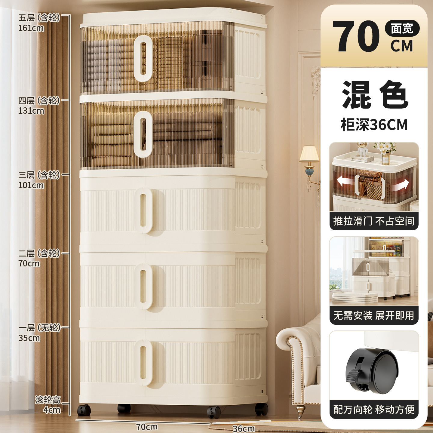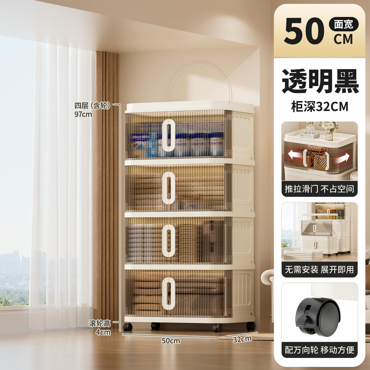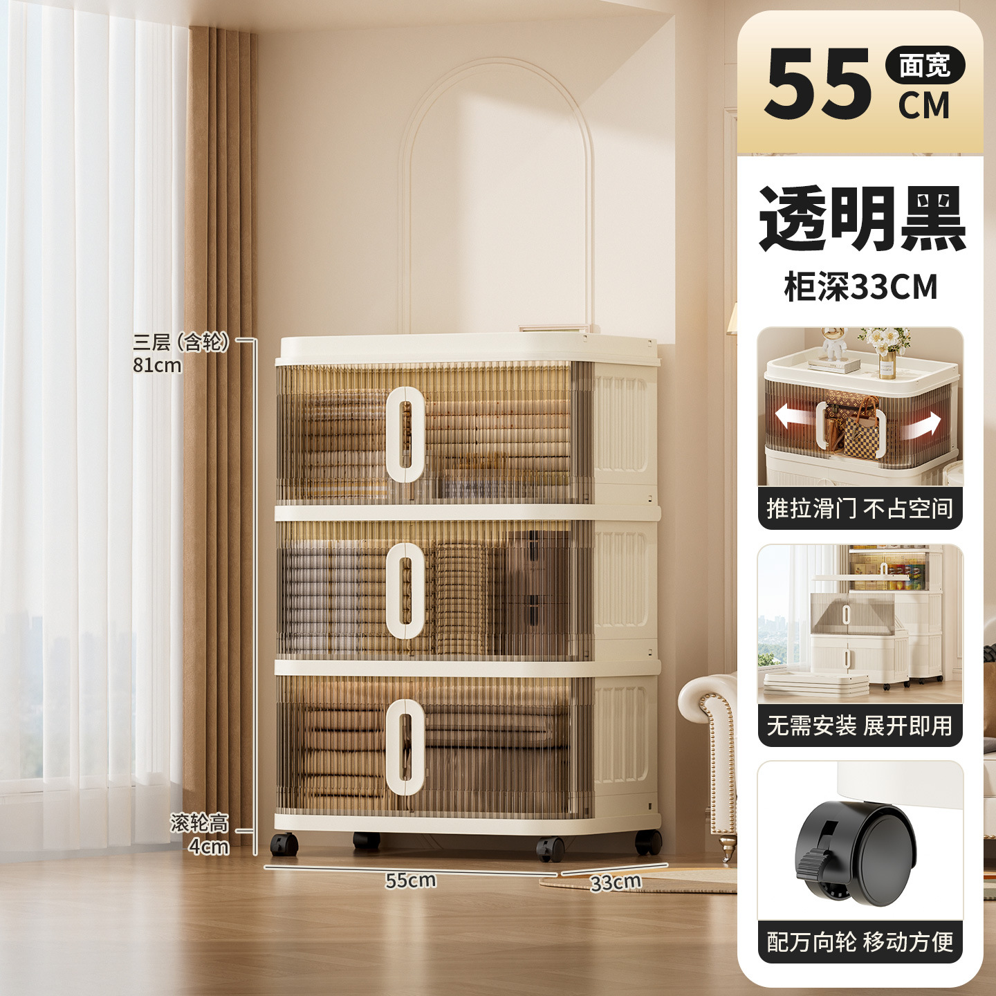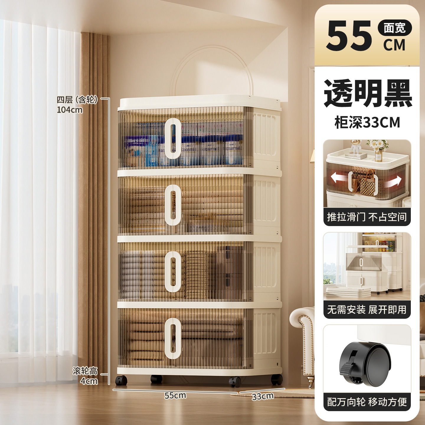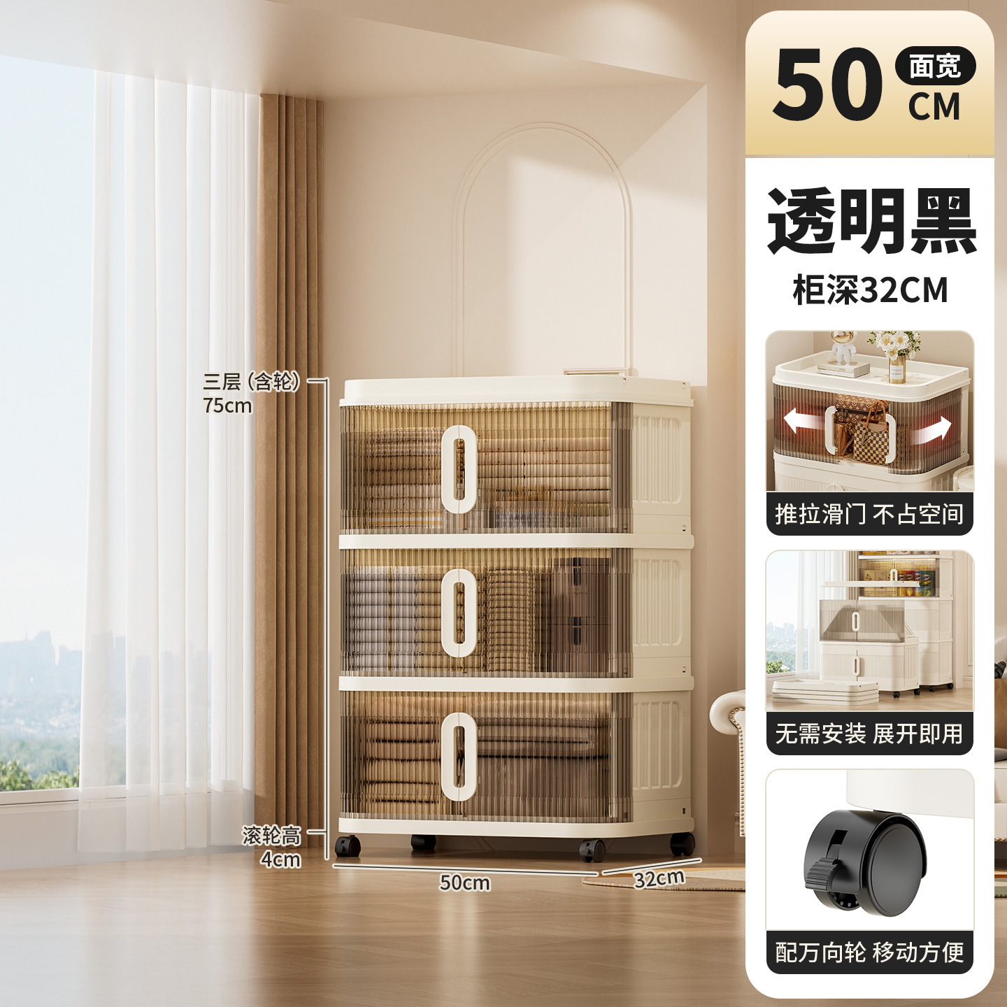 국경 간 배송 의류 보관 캐비닛 슬라이딩 롤링 도어 접이식 상자 이불 보관 상자 대용량 정리 보관 캐비닛스토어 가기