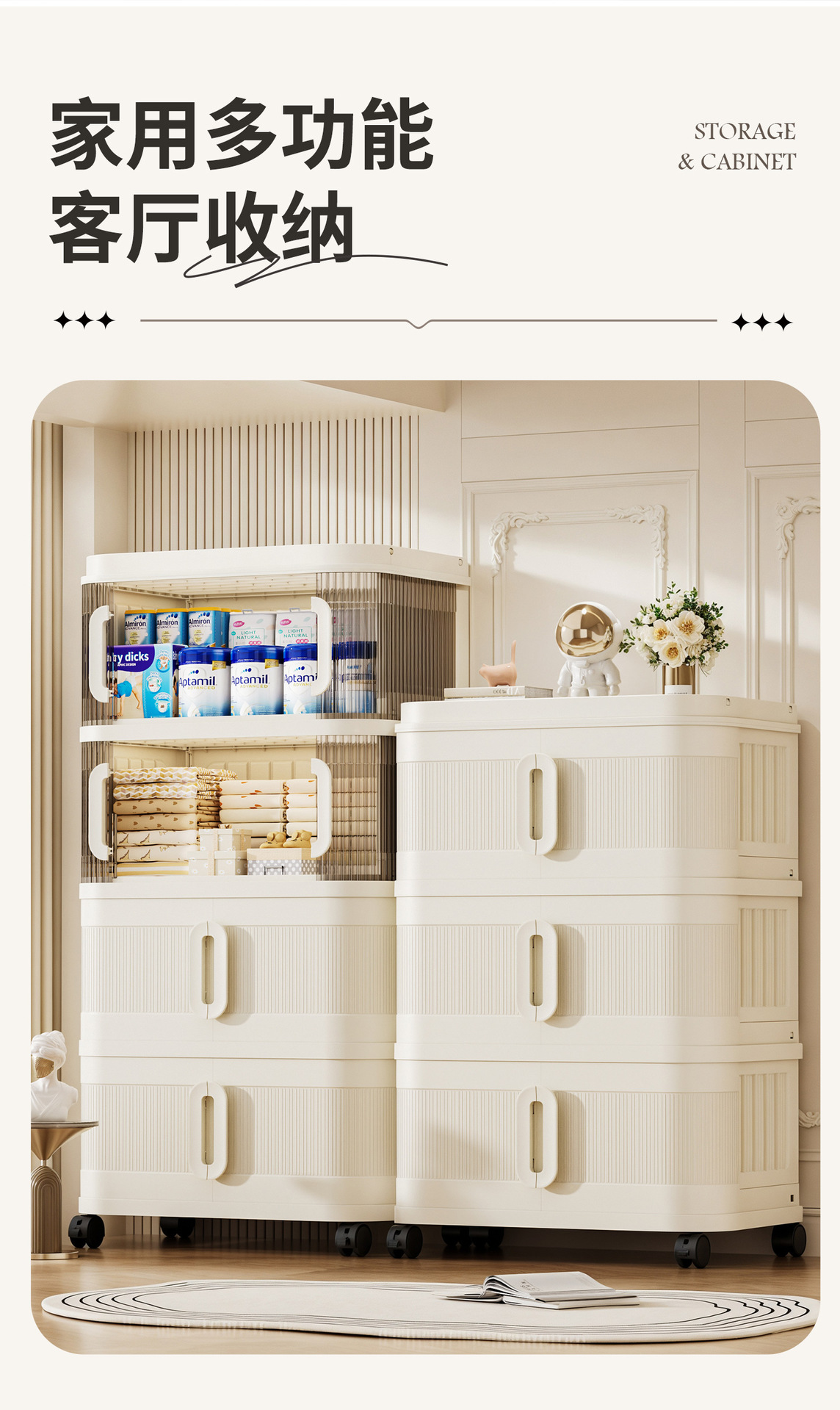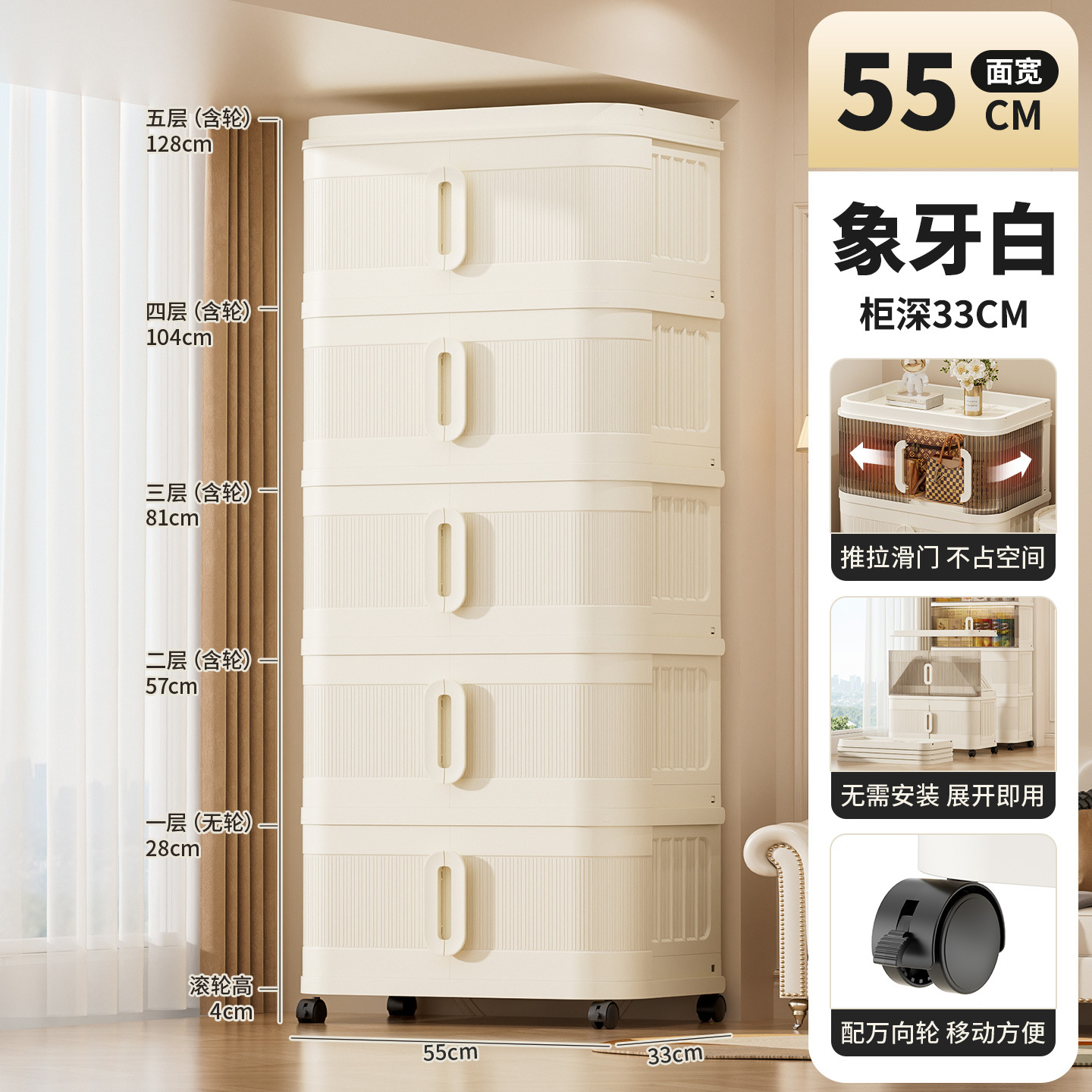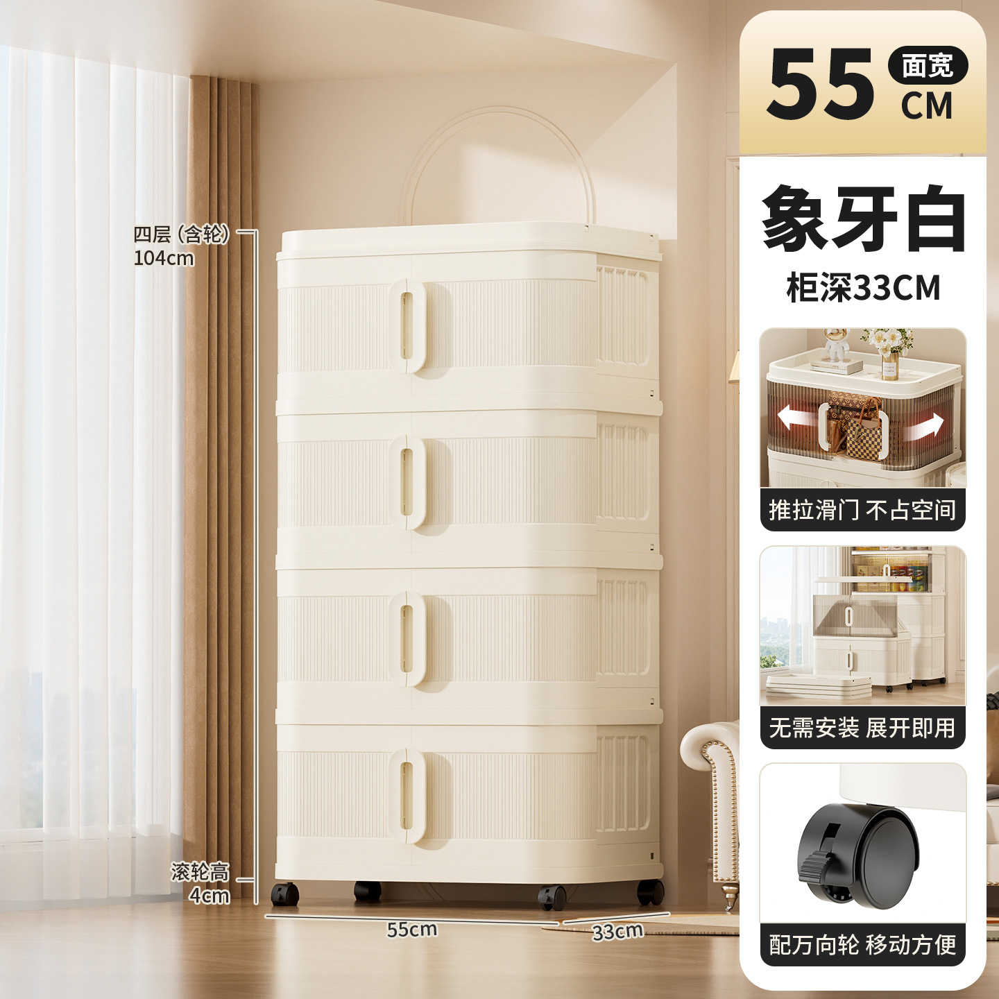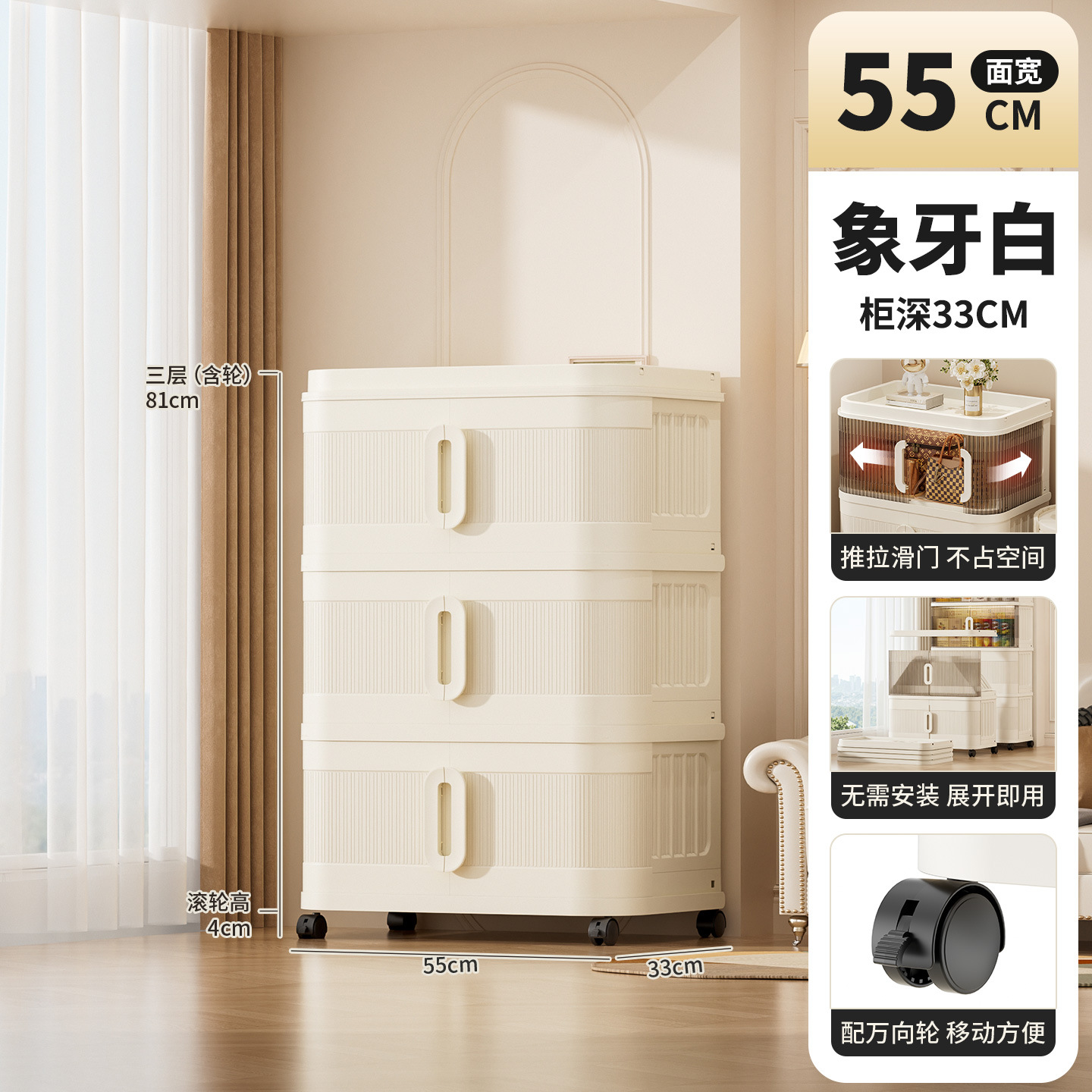 국경 간 배송 의류 보관 캐비닛 슬라이딩 롤링 도어 접이식 상자 이불 보관 상자 대용량 정리 보관 캐비닛스토어 가기