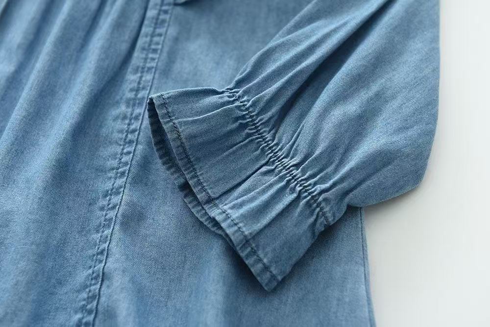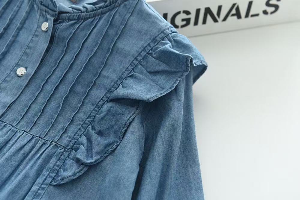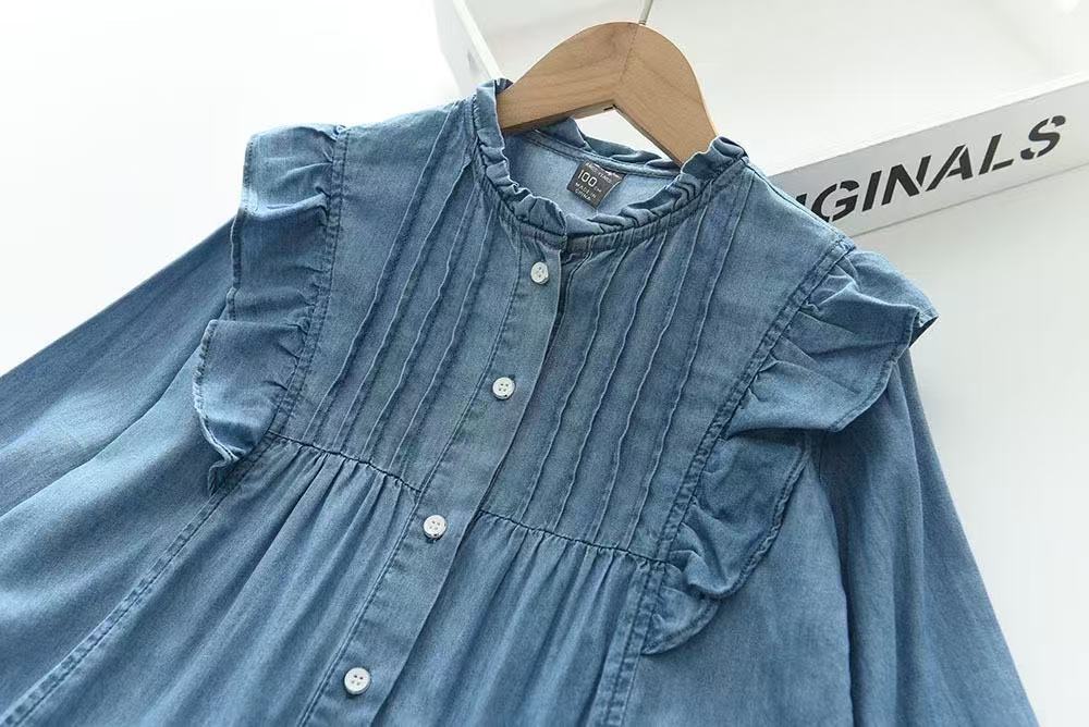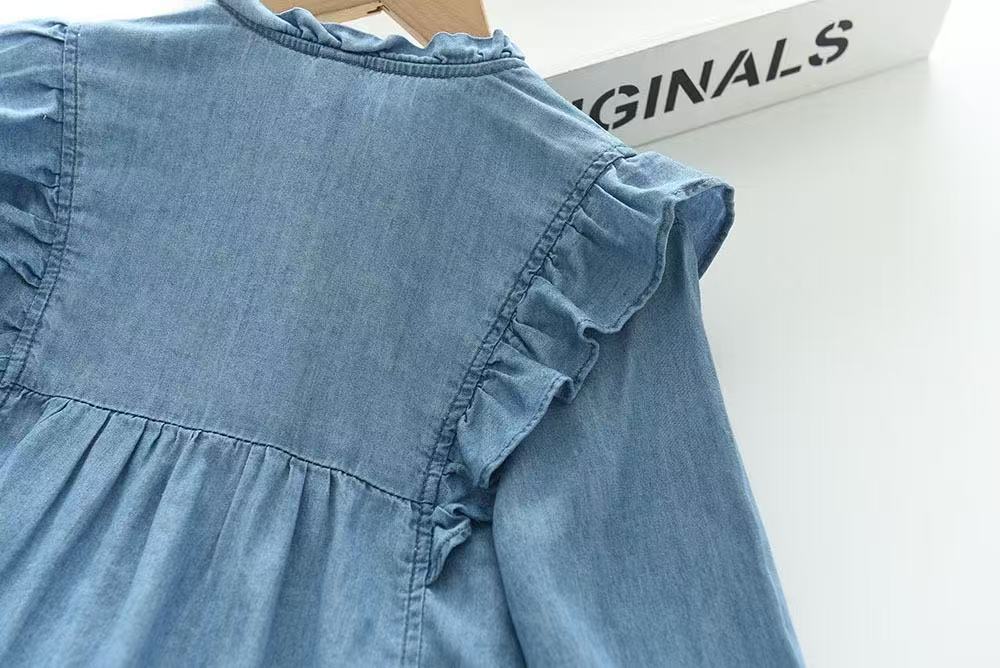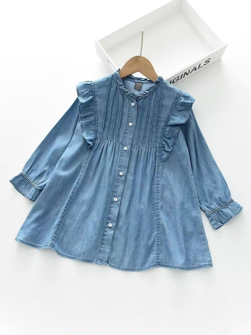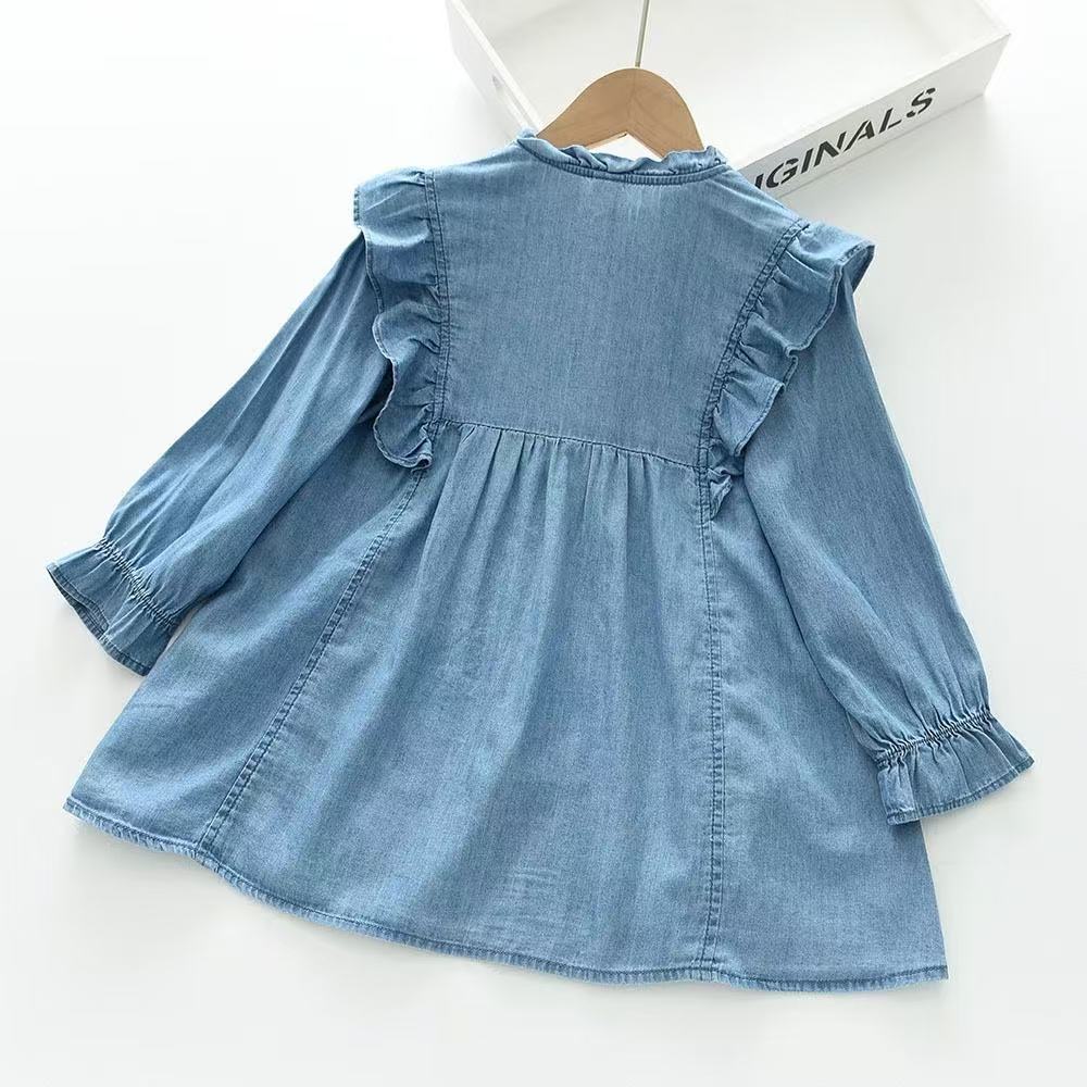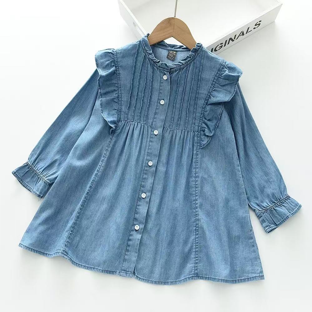 여자 긴팔 드레스 2025 가을 새로운 대외 무역 데님 스커트 아동 의류 프릴 공주 스커트 아동 스커트스토어 가기