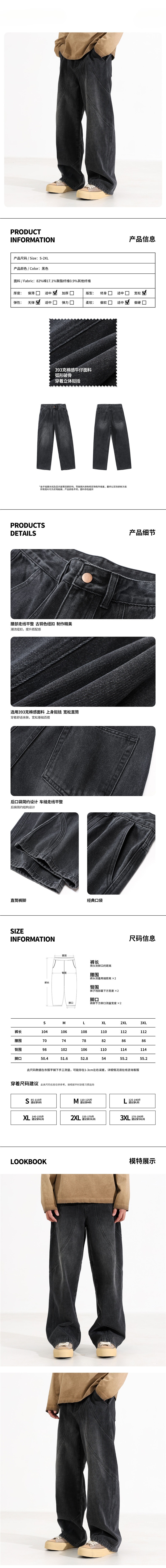 Ceecuz 아메리칸 레트로 디컨스트럭티드 디자인 루즈한 청바지 남성 트렌디 워싱 디스트레스드 스트레이트 와이드 레그 도매스토어 가기