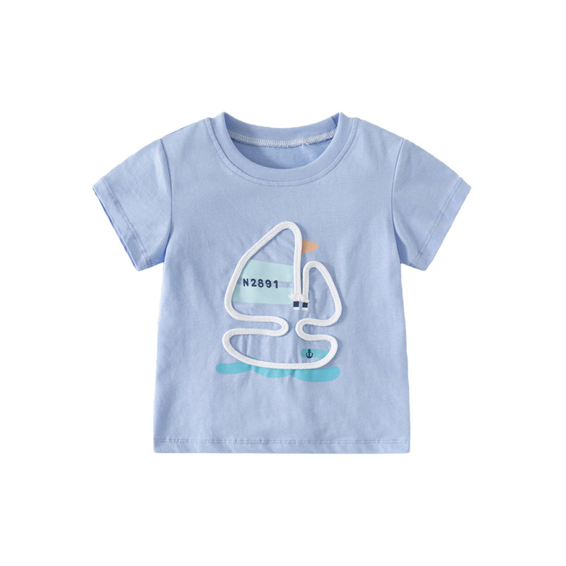 Littlebuddy 소년 반팔 여름 옷 새로운 유럽과 미국 아동 티셔츠 잘 생긴 수 놓은 라운드 넥 캐주얼 아동복