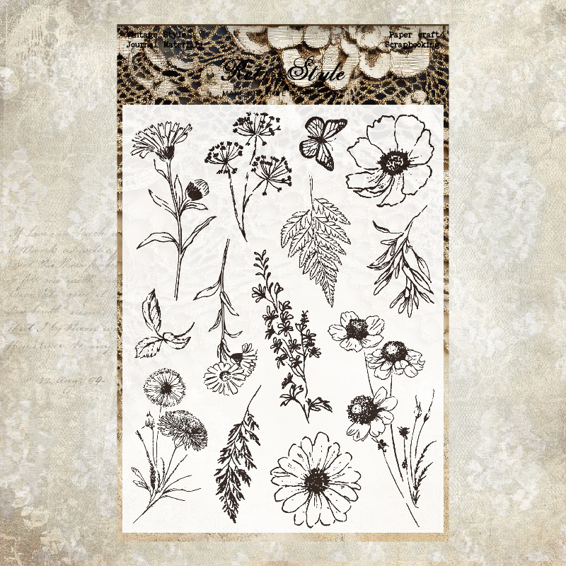 핸드북 투명 실리콘 스탬프 복고풍 배경 기본 스탬프 DIY 장식 핸드북 고무 스탬프 버섯 스크래치 종이