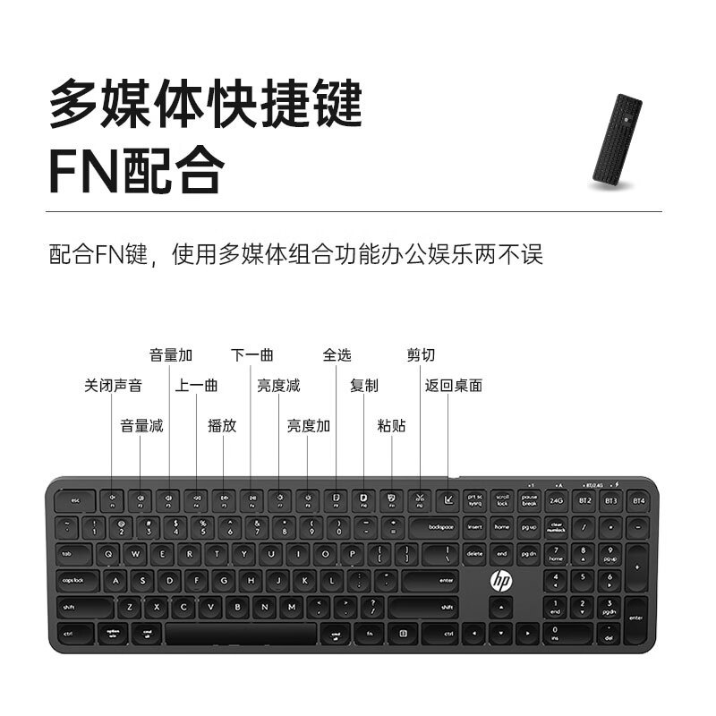HP K241 무선 블루투스 듀얼 모드 가위 발 얇고 가벼운 사무실 키보드 104 풀 키 유선스토어 가기