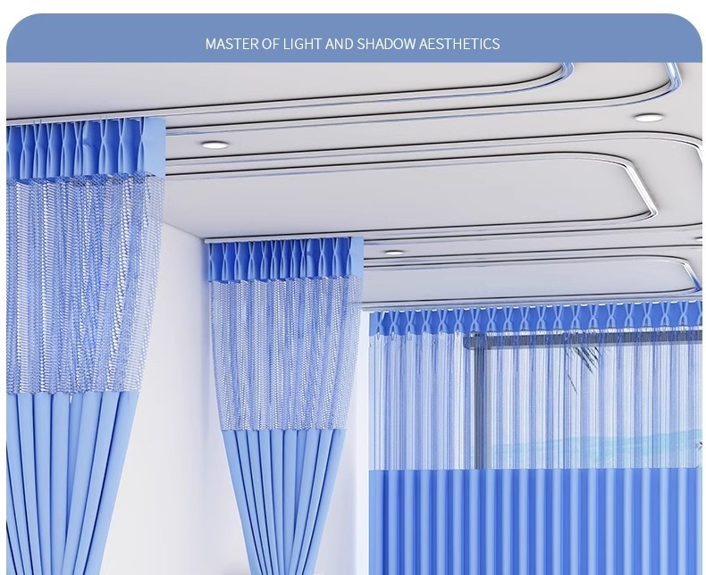 소스 공장 의료 커튼은 개인 정보 보호 커튼을 보호합니다. 병원 블루는 난연성 곡선 레일 도매 U 자형을 추가할 수 있습니다.