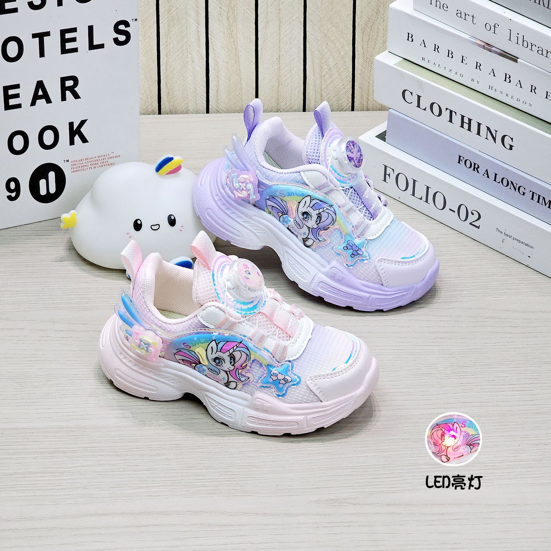 女童超轻软底运动鞋,透气网面,穿着舒适,LED亮灯,潮流图案,欢迎采购。