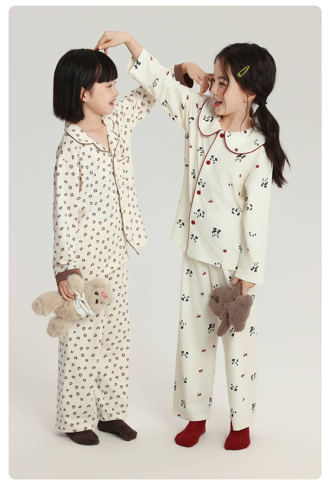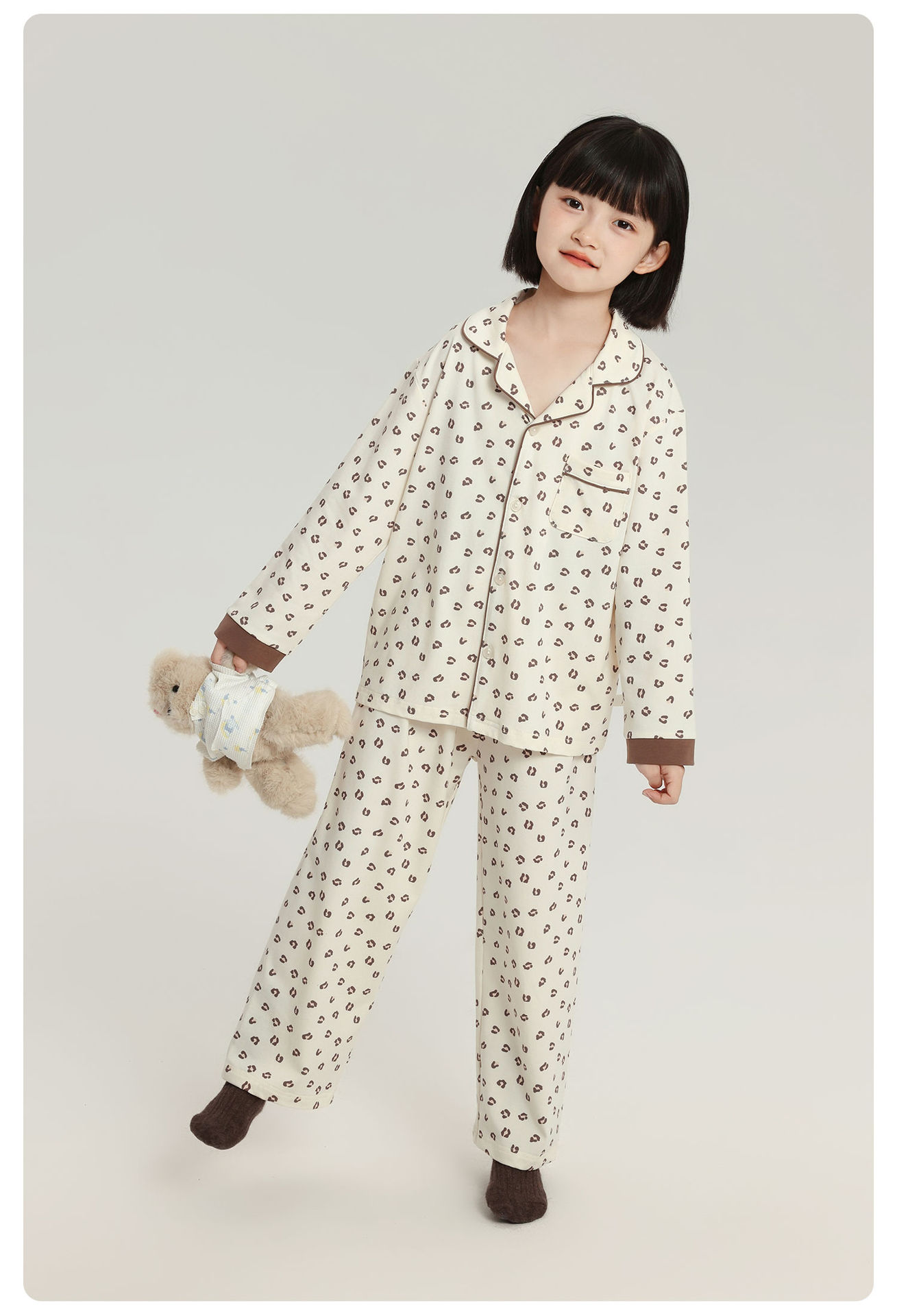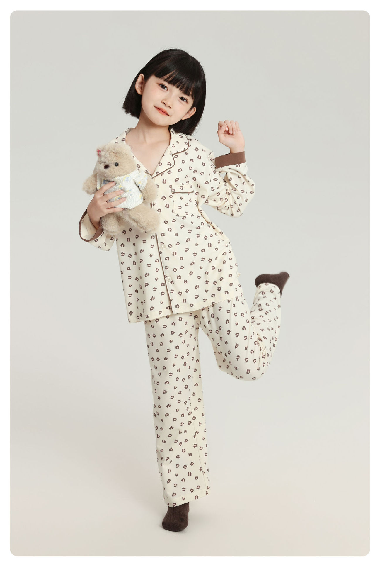 Pudding Haru 어린이 귀여운 긴팔 잠옷 2025 가을 새 여자 캐주얼 루즈 홈웨어 세트