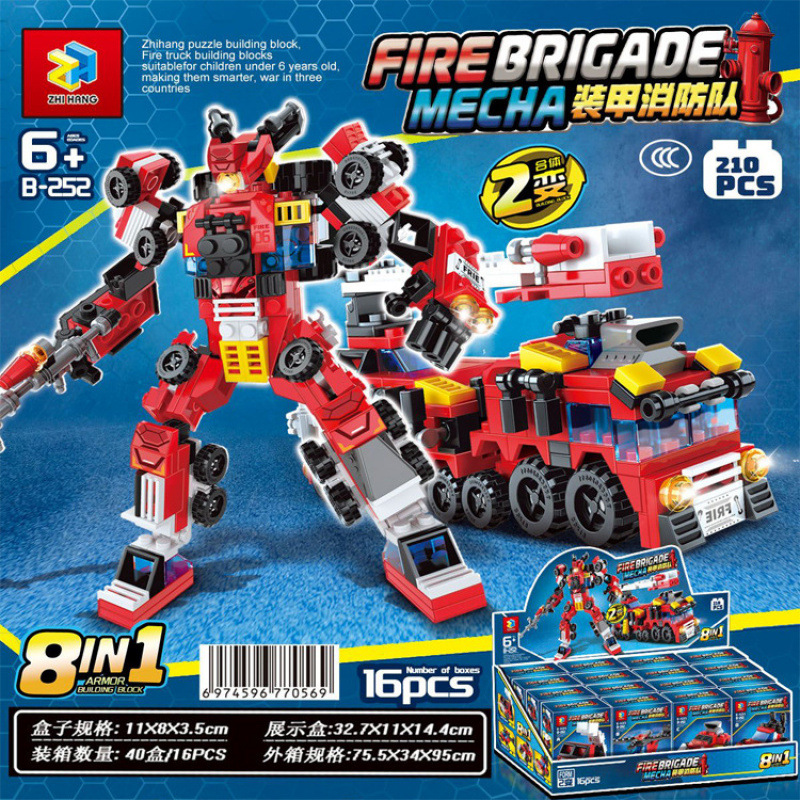 어린이 장난감 8-in-1 빌딩 블록 퍼즐 조립 소년 군사 소방 SWAT 항공기 자동차 노점 선물 도매