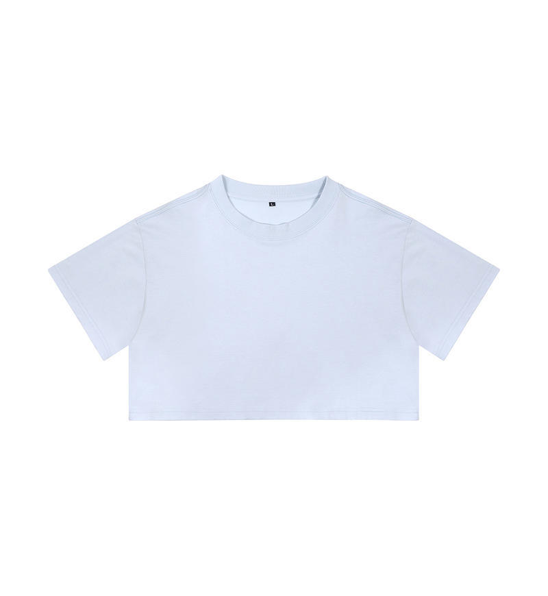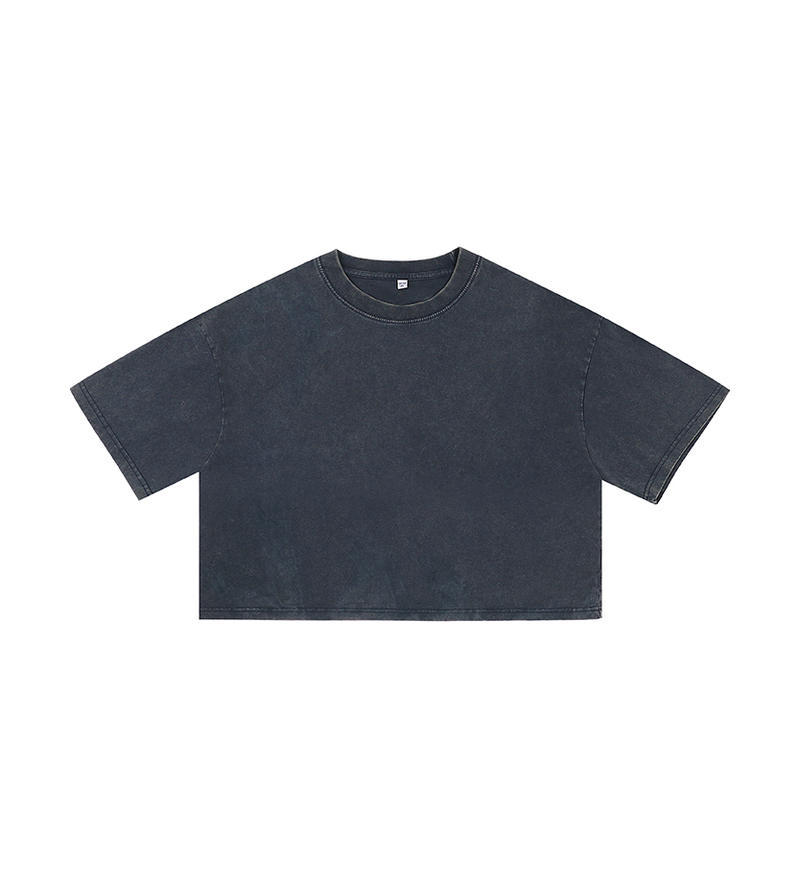 국경 간 인기 제품 230g 워싱 디스트레스드 코튼 티셔츠 짧은 스포츠 피트니스 블라우스 배꼽 노출 핫 소녀 여성용 반팔 티셔츠