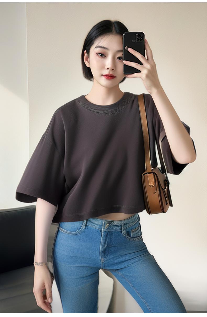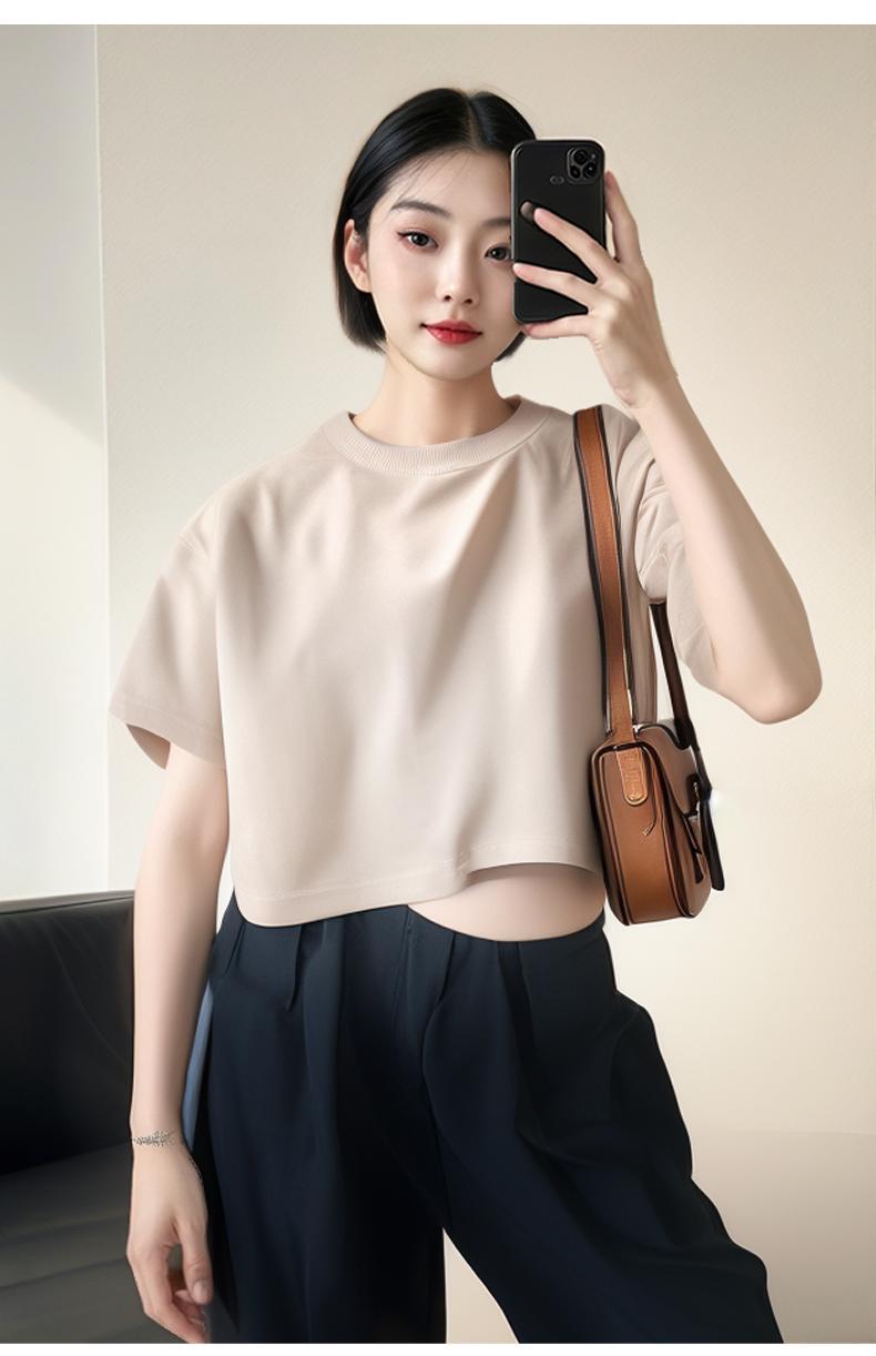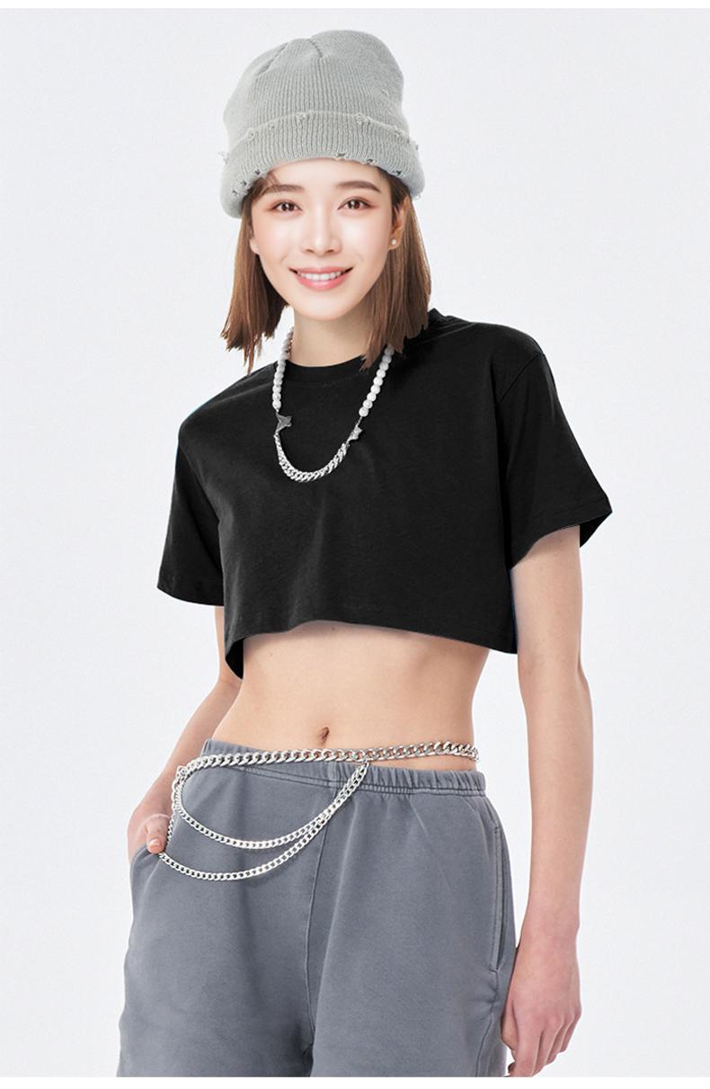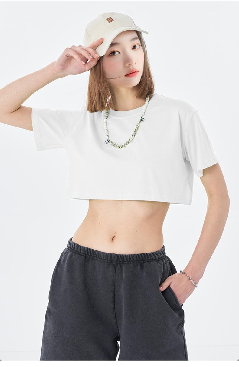 국경 간 인기 제품 230g 워싱 디스트레스드 코튼 티셔츠 짧은 스포츠 피트니스 블라우스 배꼽 노출 핫 소녀 여성용 반팔 티셔츠스토어 가기