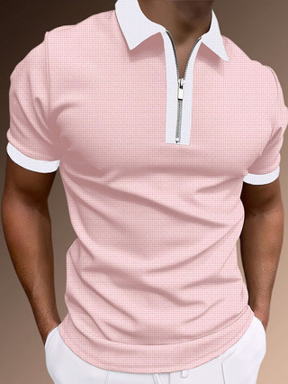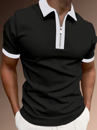 유럽과 미국의 국경 간 새로운 Amazon 남성 여름 컬러 블록 반팔 스포츠 및 레저 라펠 티셔츠 하프 지퍼 폴로스토어 가기