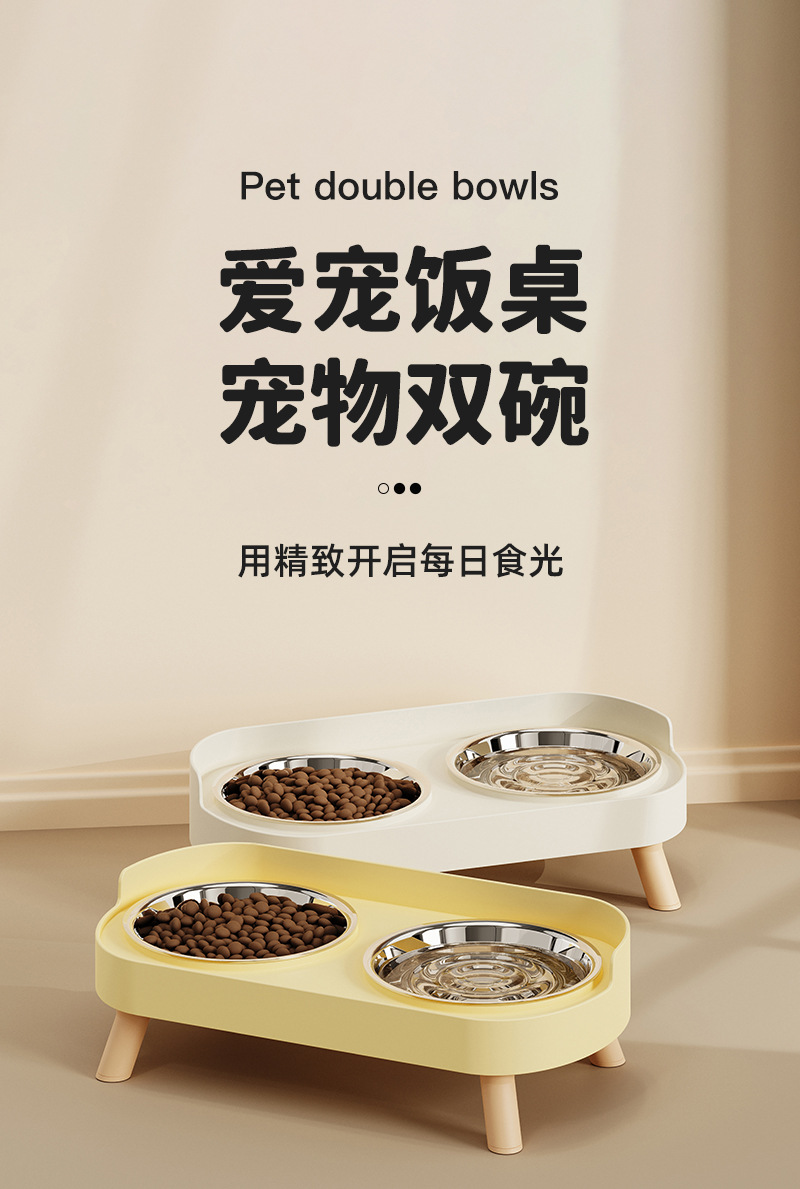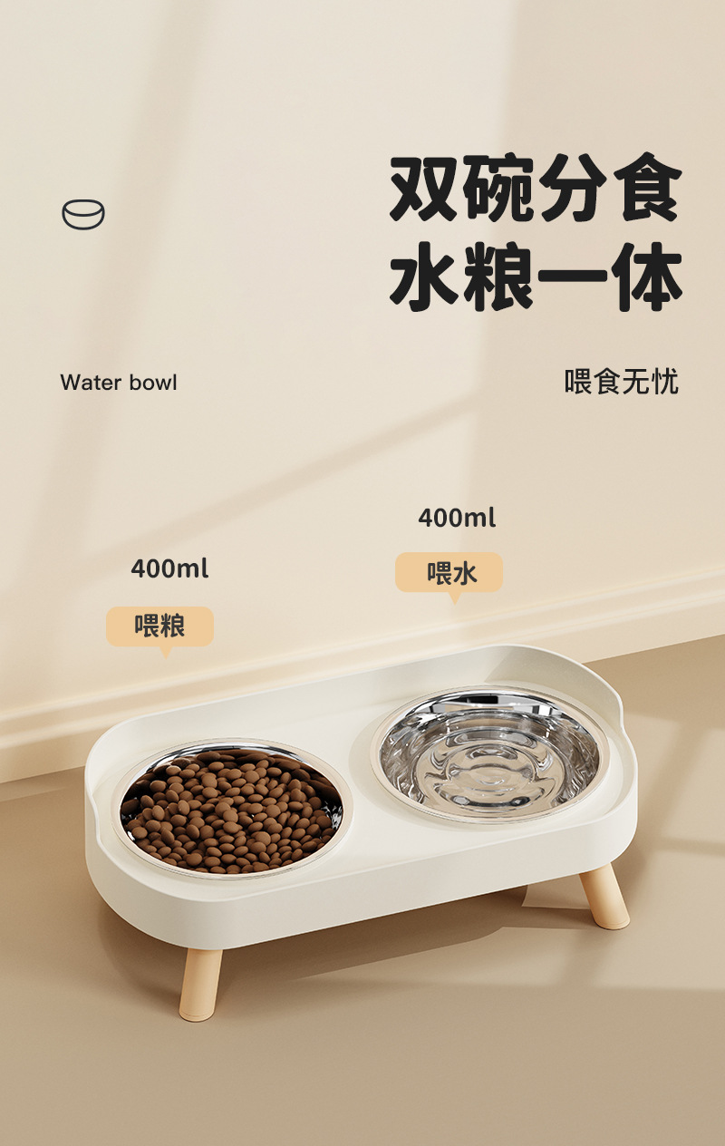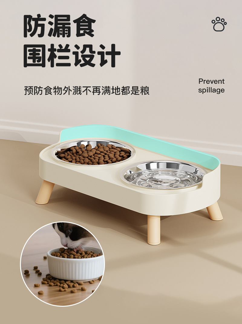 국경 간 고양이 그릇 스테인레스 스틸 더블 그릇 세라믹 더블 그릇 물과 식품 통합 넘어짐 방지 및 물 튀김 방지 목 보호 먹이 그릇 개 그릇스토어 가기