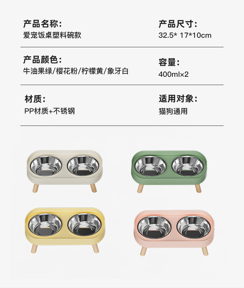 국경 간 고양이 그릇 스테인레스 스틸 더블 그릇 세라믹 더블 그릇 물과 식품 통합 넘어짐 방지 및 물 튀김 방지 목 보호 먹이 그릇 개 그릇