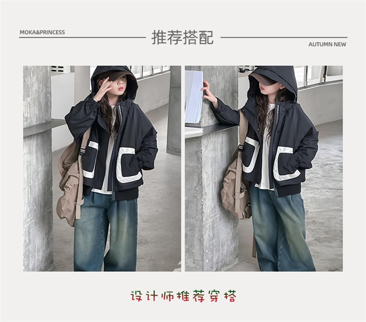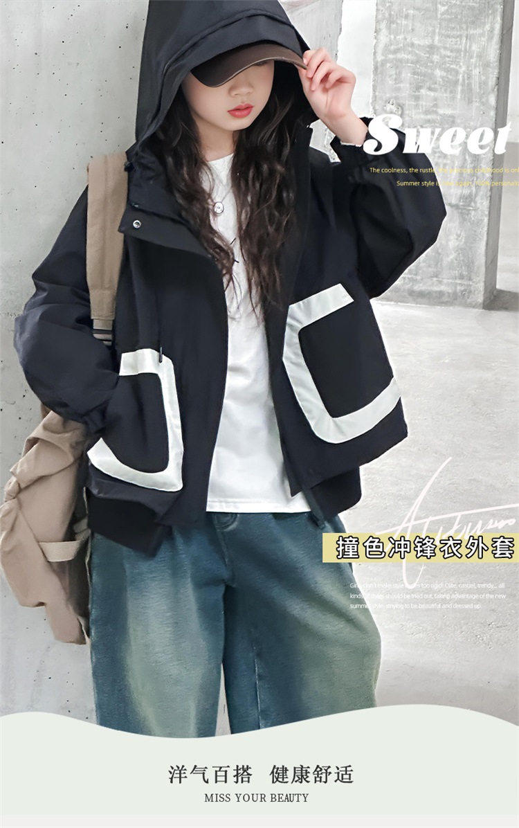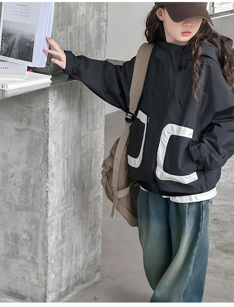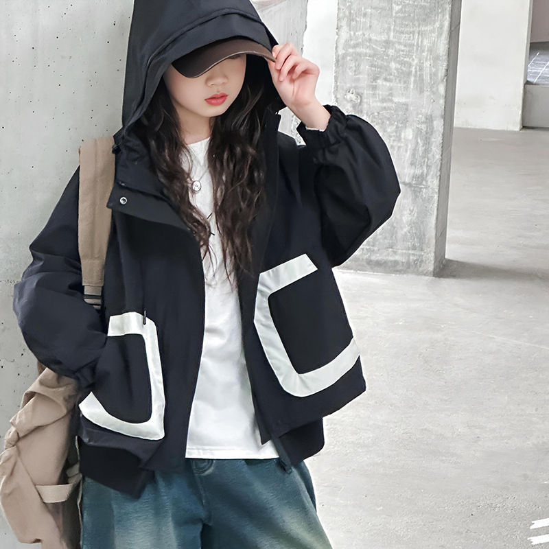 여아 봄, 가을 재킷 2025 새로운 스타일 여성 중대형 아동 트렌디 재킷 봄, 가을 후드 재킷 패션 탑 트렌디스토어 가기