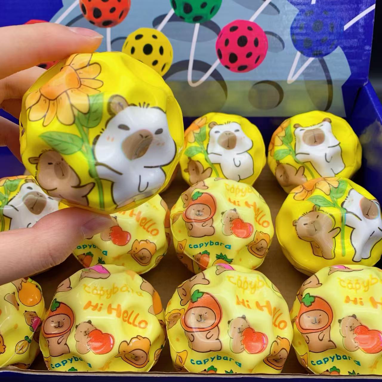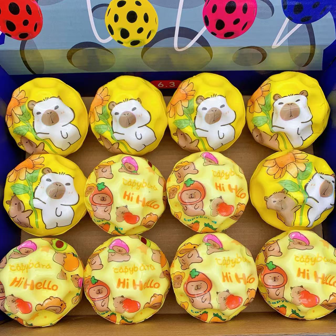 63mm 새로운 고반발 구멍 공 pu 해바라기 카피바라 어린이 스트레치 공 지루함을 완화하고 반응 공을 운동합니다.스토어 가기