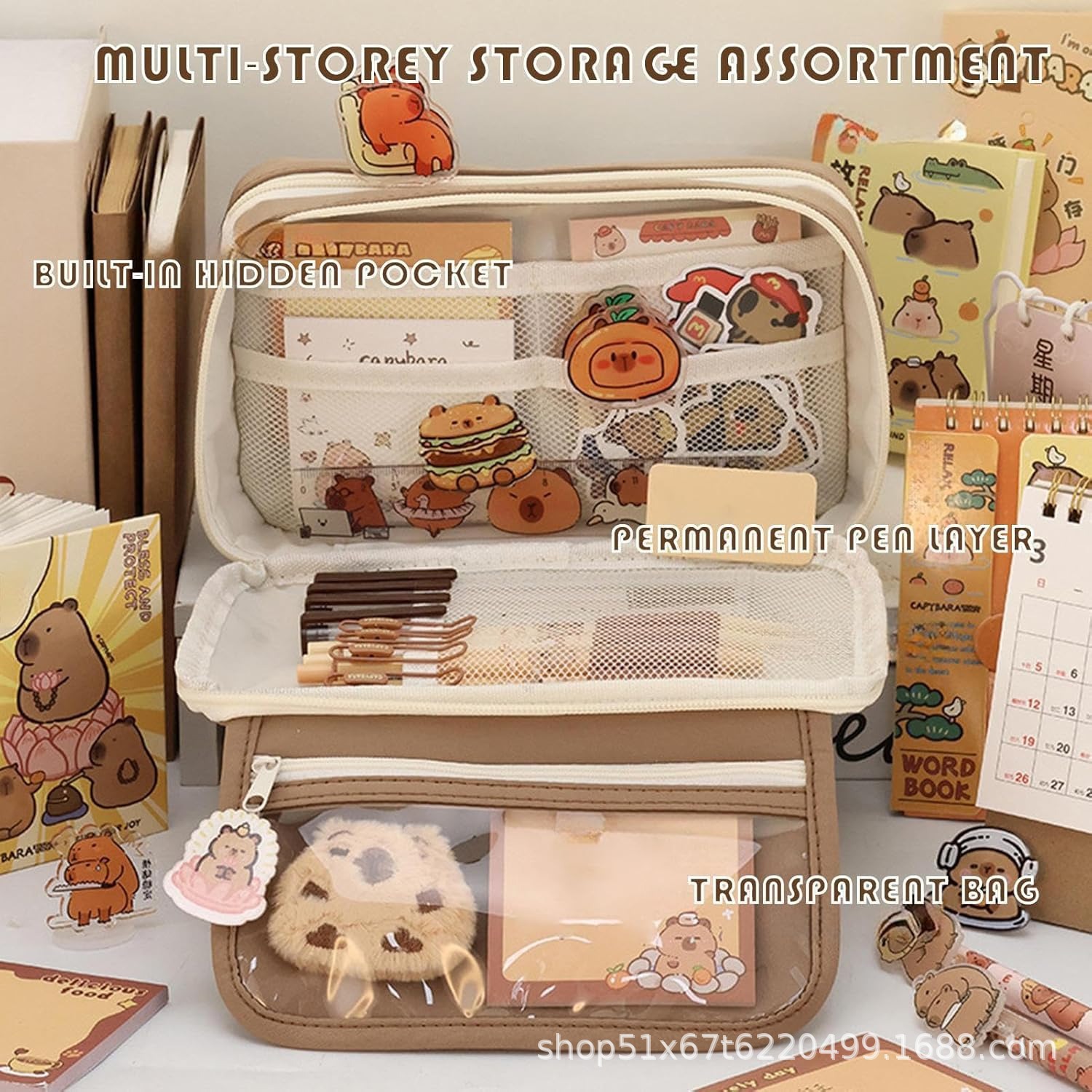 咖色卡皮巴拉笔袋,咖色卡皮巴拉笔袋、卡皮巴拉笔袋大容量