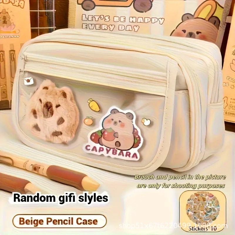 국경 간 인기 커피 컬러 카피바라 연필 가방 대용량 학생 카피바라 연필 가방 고등학생 문구 가방스토어 가기