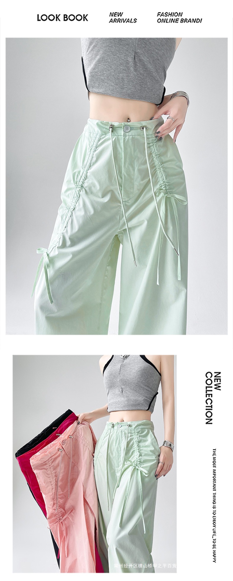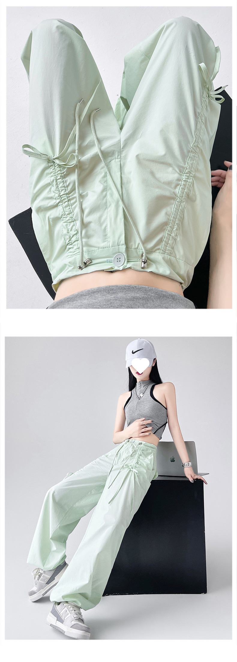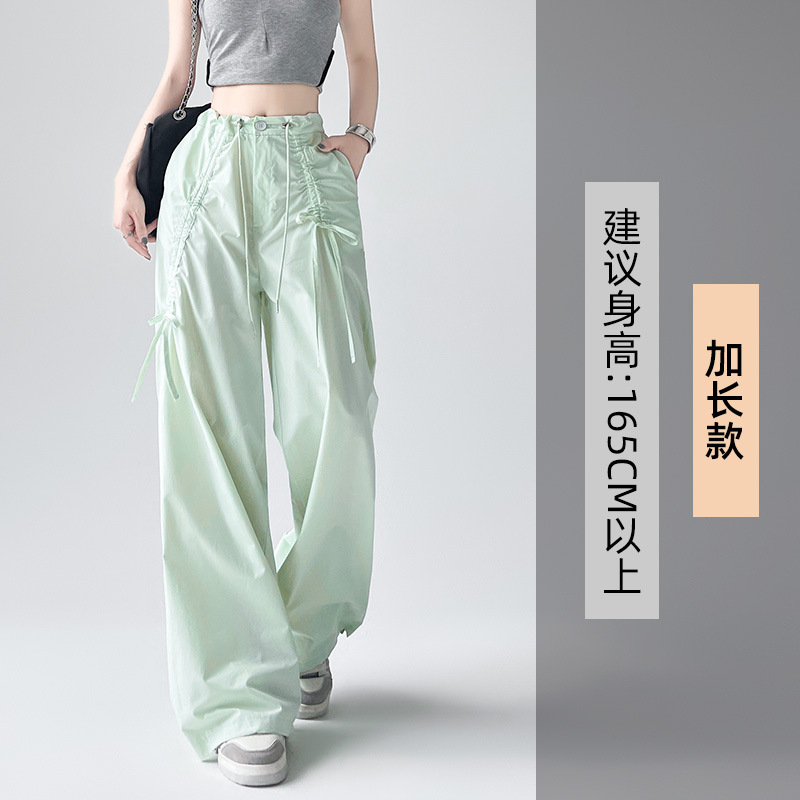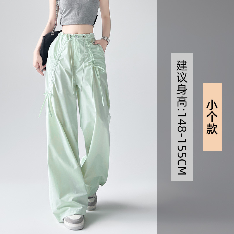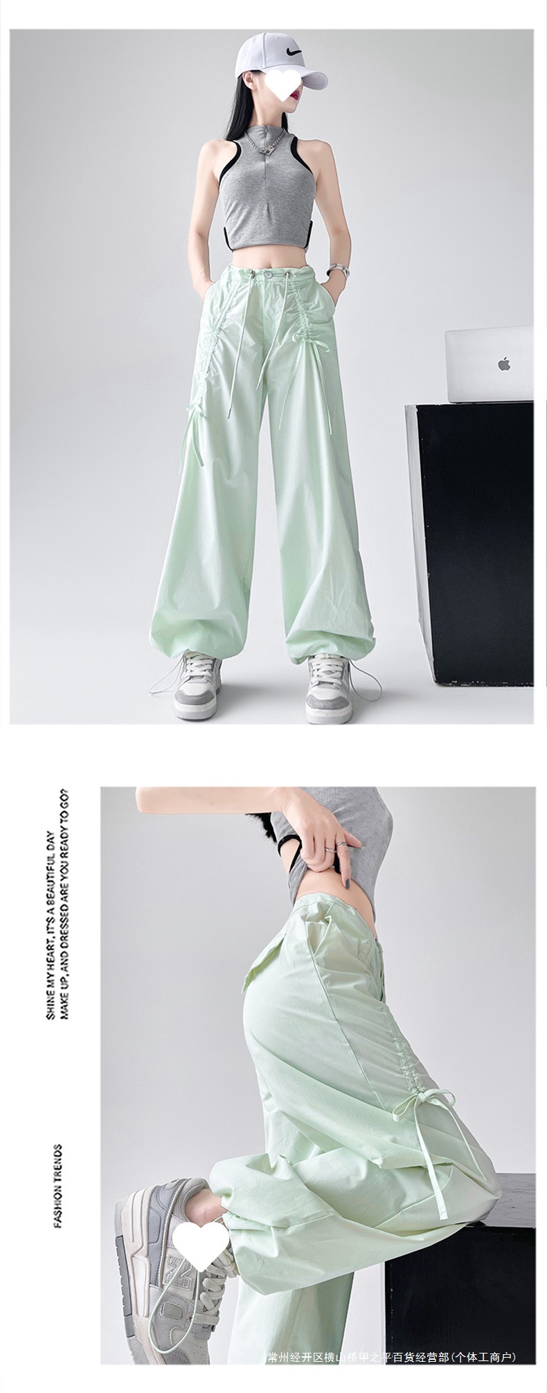 여성용 아메리칸 스타일 속건성 작업복 여름 도파민 아보카도 그린 드로스트링 스웨트팬츠 투웨어 하이킹 파라트로퍼 와이드 팬츠