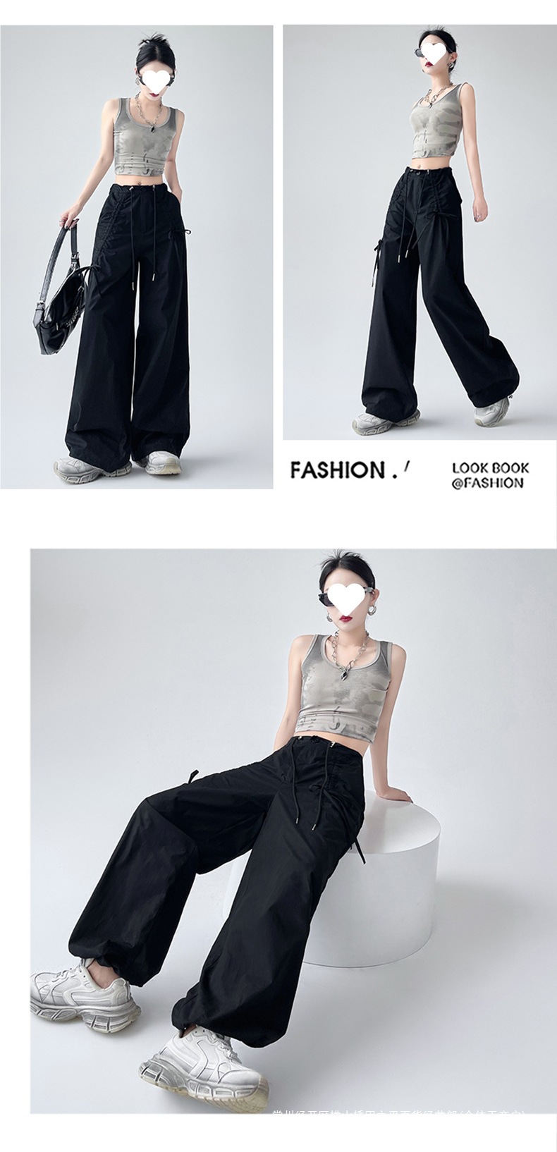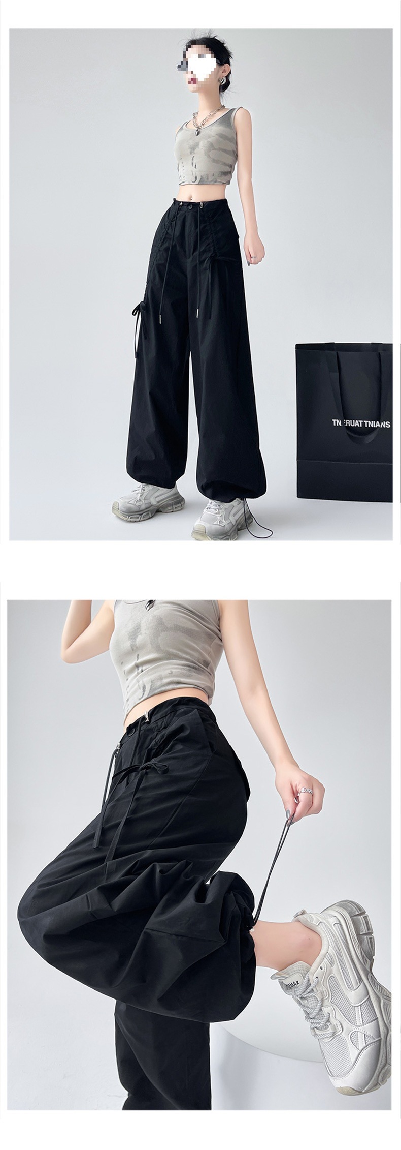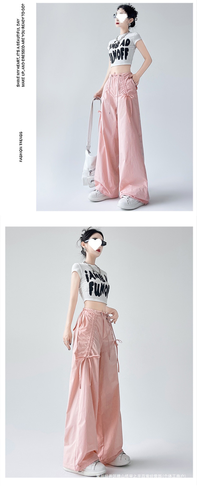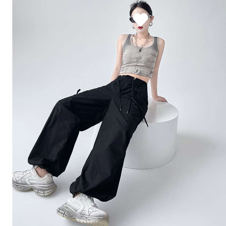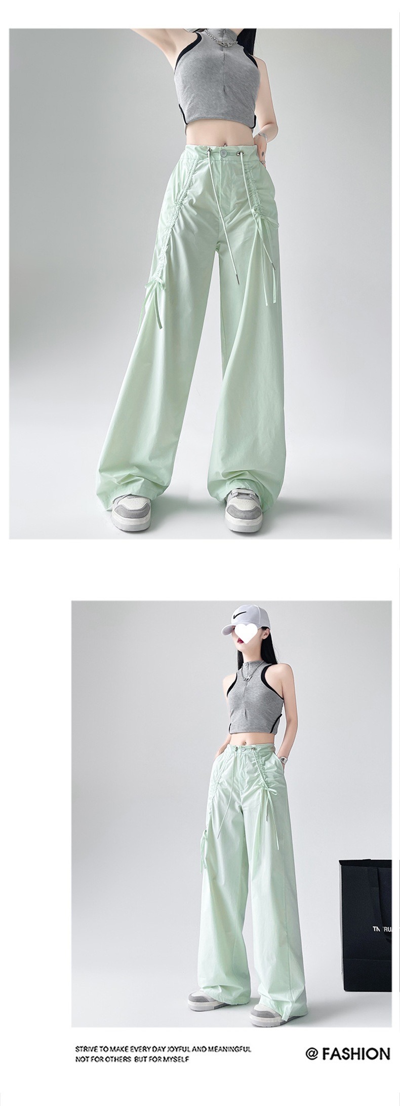 여성용 아메리칸 스타일 속건성 작업복 여름 도파민 아보카도 그린 드로스트링 스웨트팬츠 투웨어 하이킹 파라트로퍼 와이드 팬츠