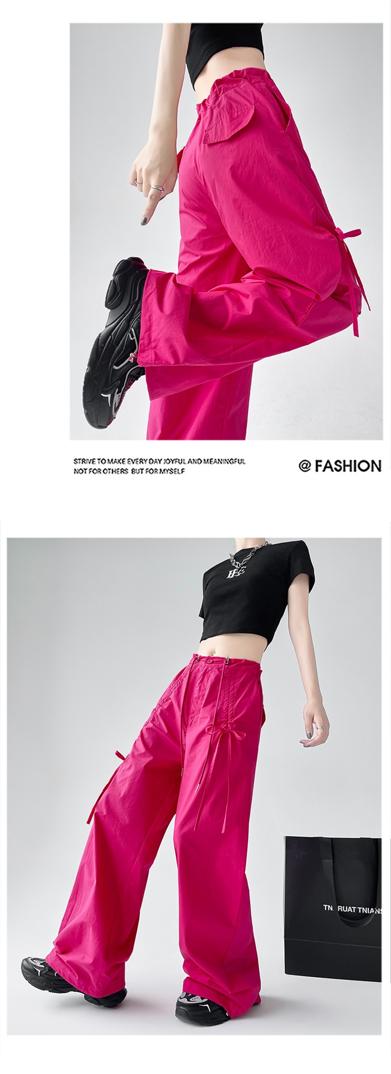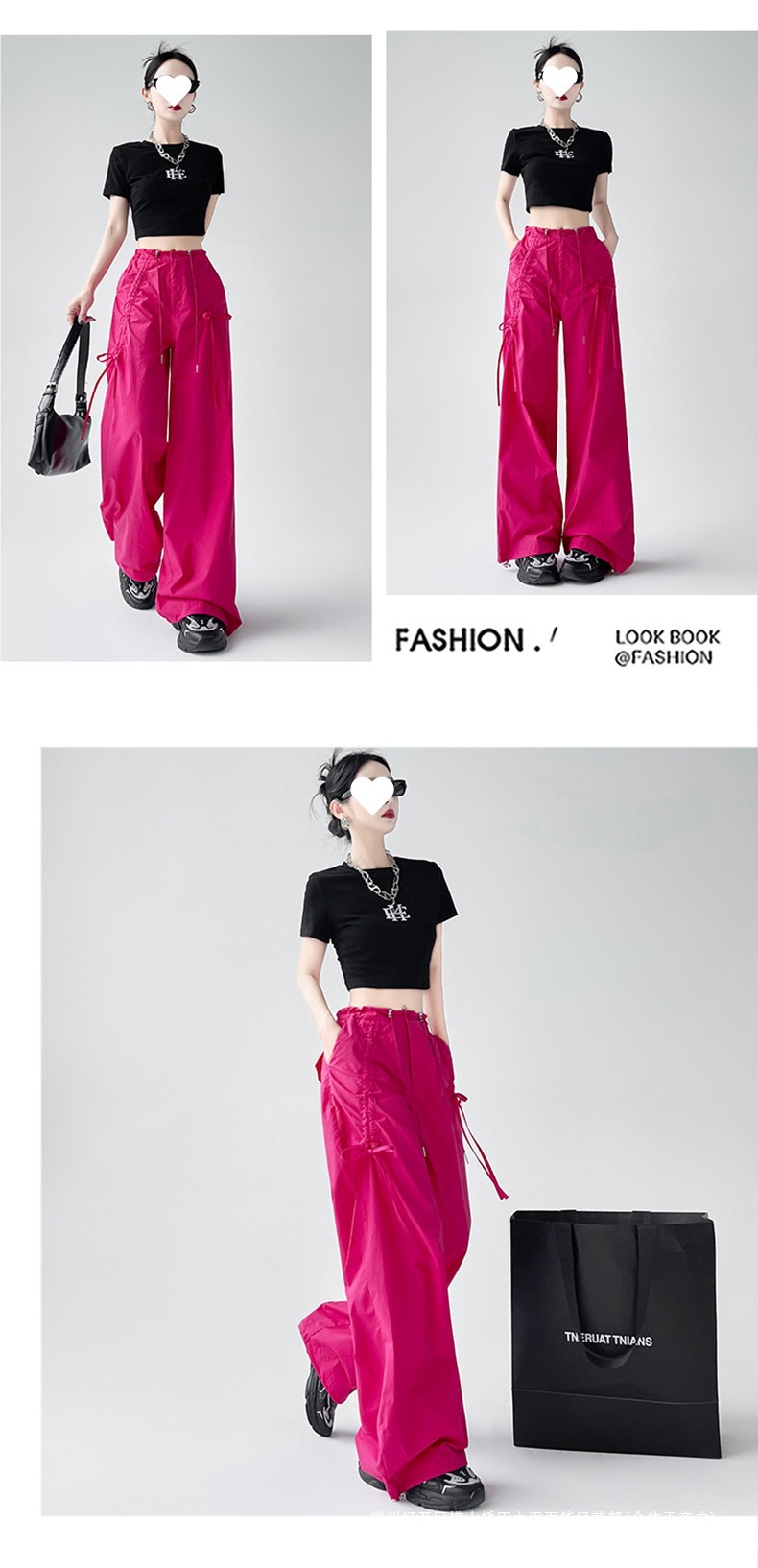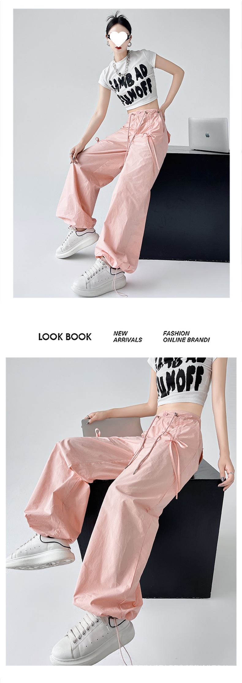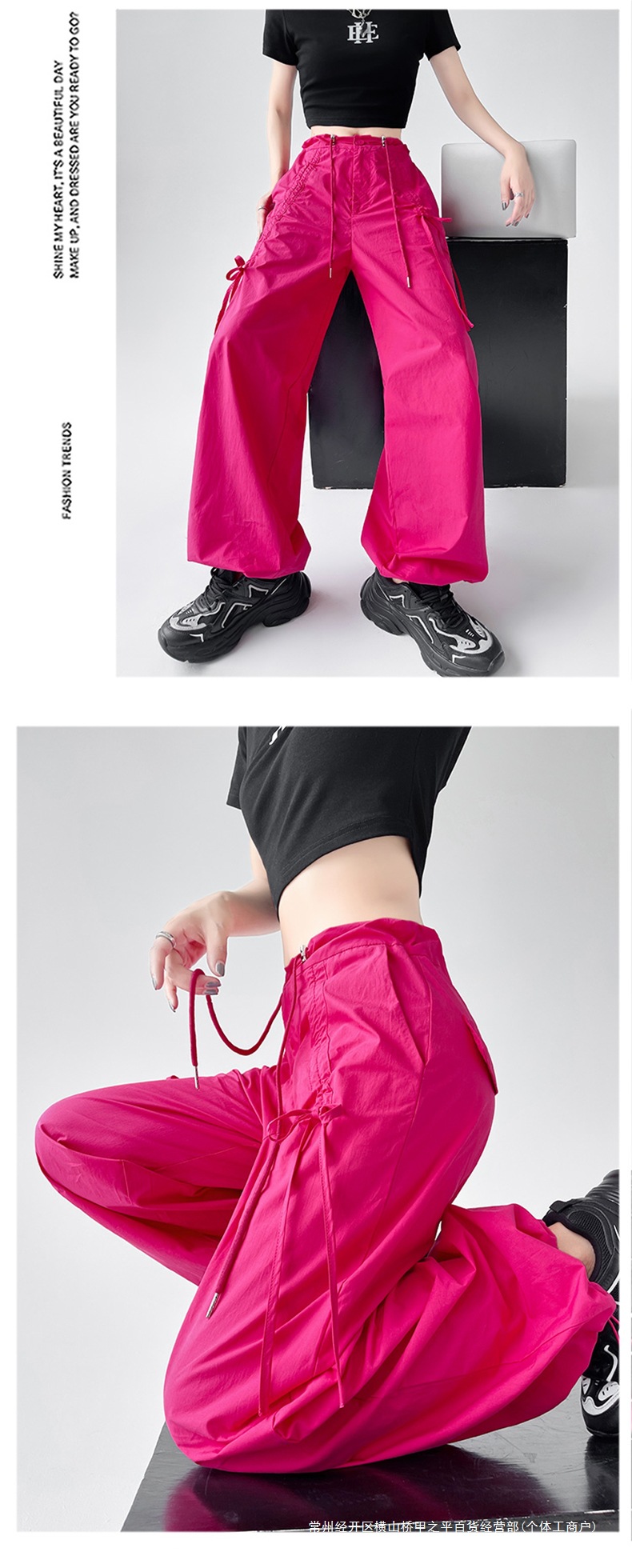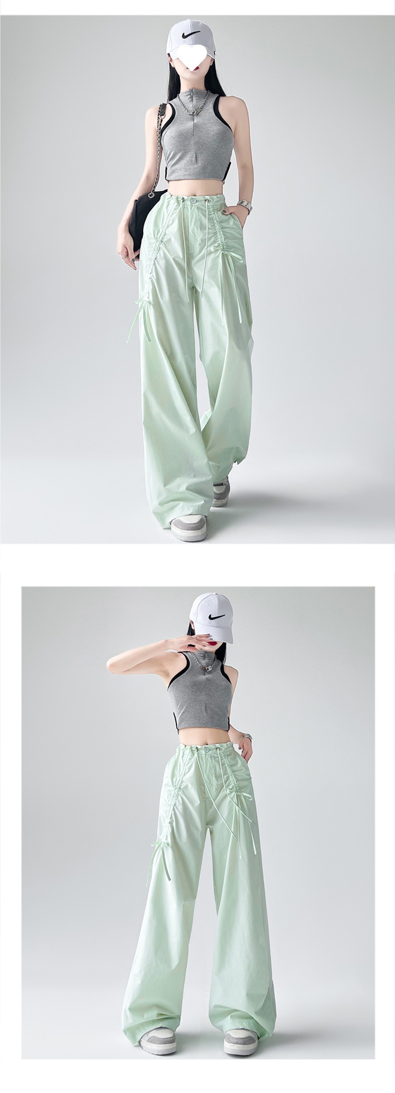 여성용 아메리칸 스타일 속건성 작업복 여름 도파민 아보카도 그린 드로스트링 스웨트팬츠 투웨어 하이킹 파라트로퍼 와이드 팬츠스토어 가기
