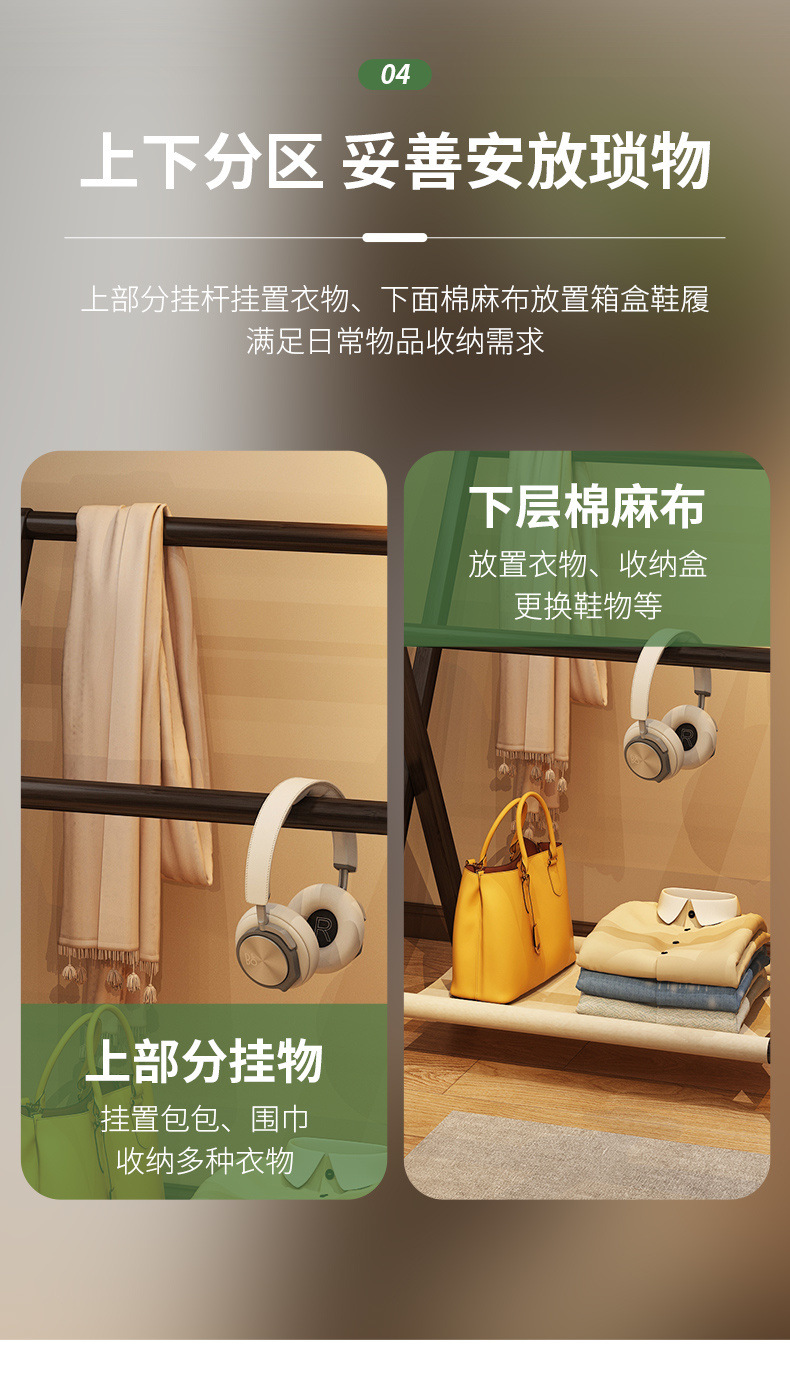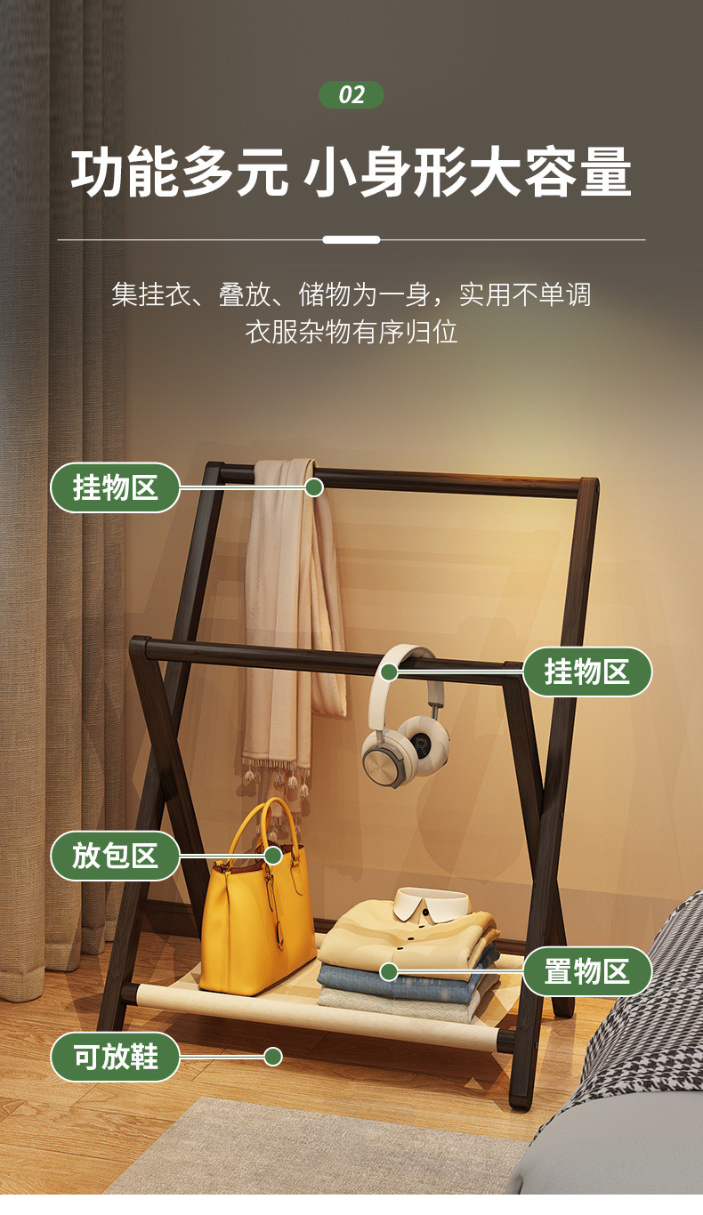 침대 옆 옷걸이, 바닥에 작은 원목 침실, 밤에 잠을 잘 때 임시 옷과 바지 보관, 북유럽스토어 가기