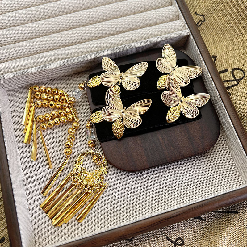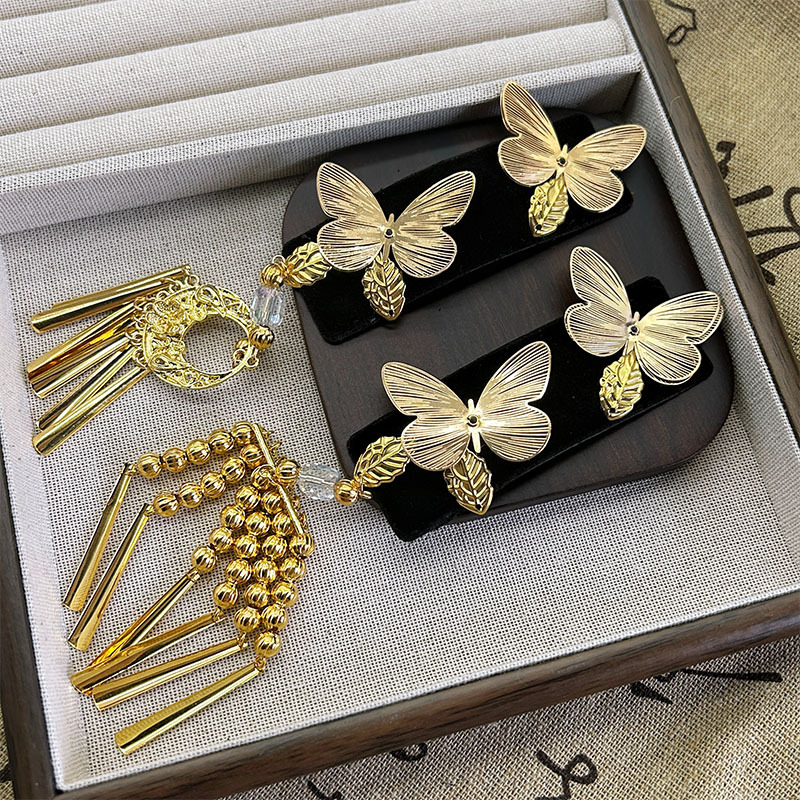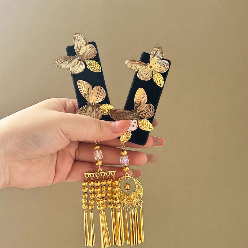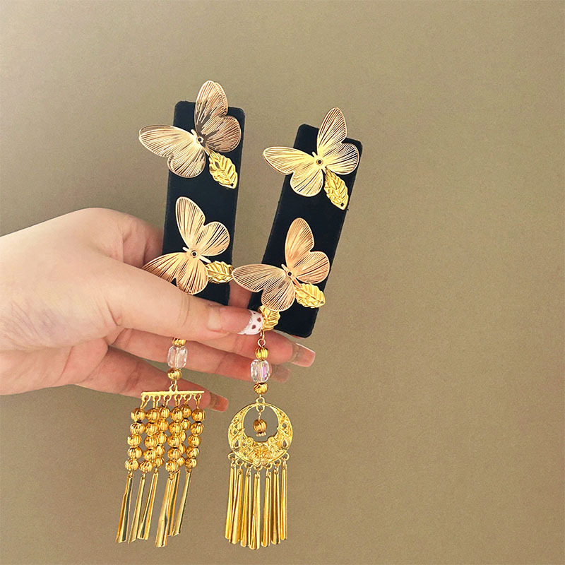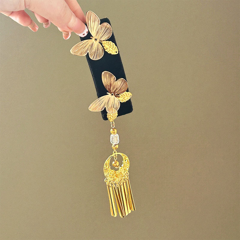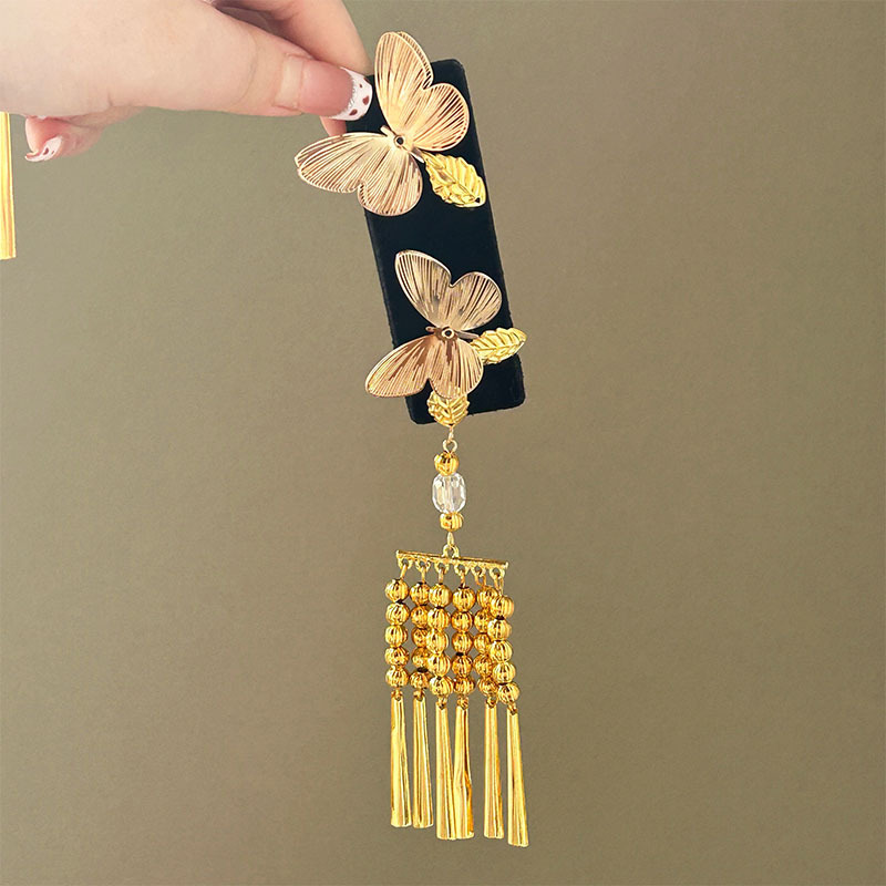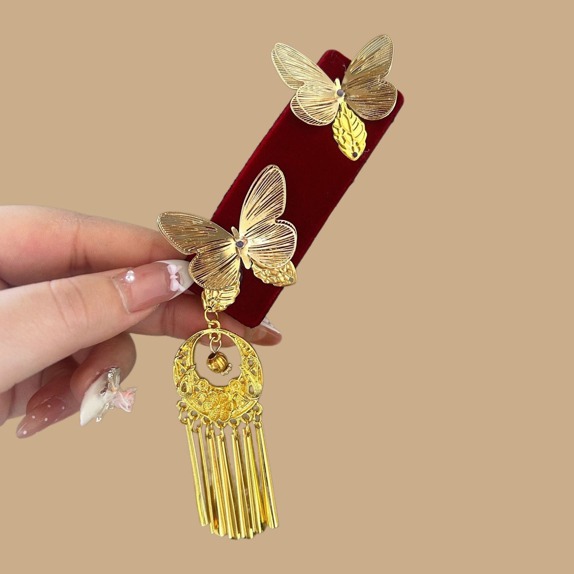 여성용 골든 더블 나비 머리핀, 고급스럽고 절묘한 헤어 액세서리, 머리핀 클립, 앤티크 스타일 헤드웨어, 앞머리 클립, BB 클립스토어 가기