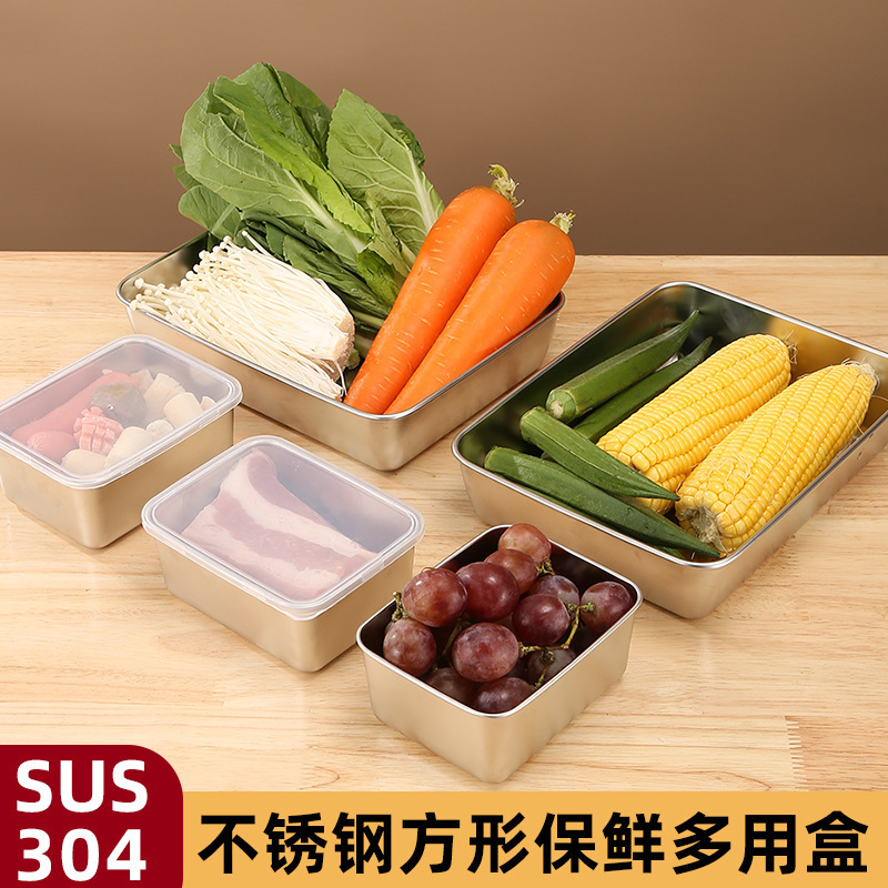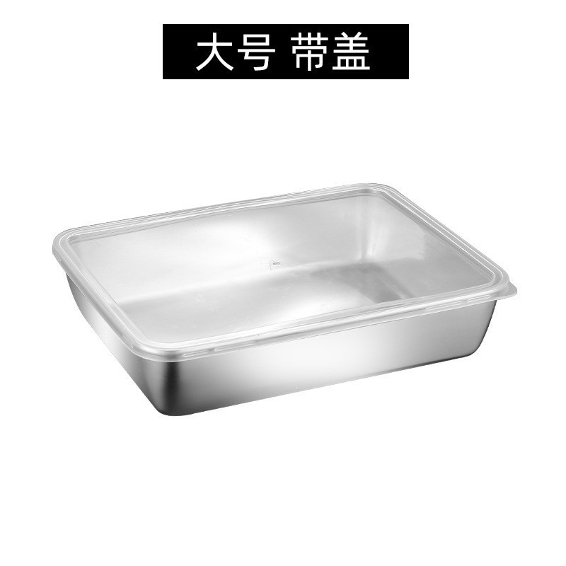 뚜껑이 있는 304 스테인레스 스틸 식품 등급 두꺼운 304 사각형 접시 차가운 요리 트레이 찜 접시 다목적 접시 준비 상자 크리스퍼스토어 가기