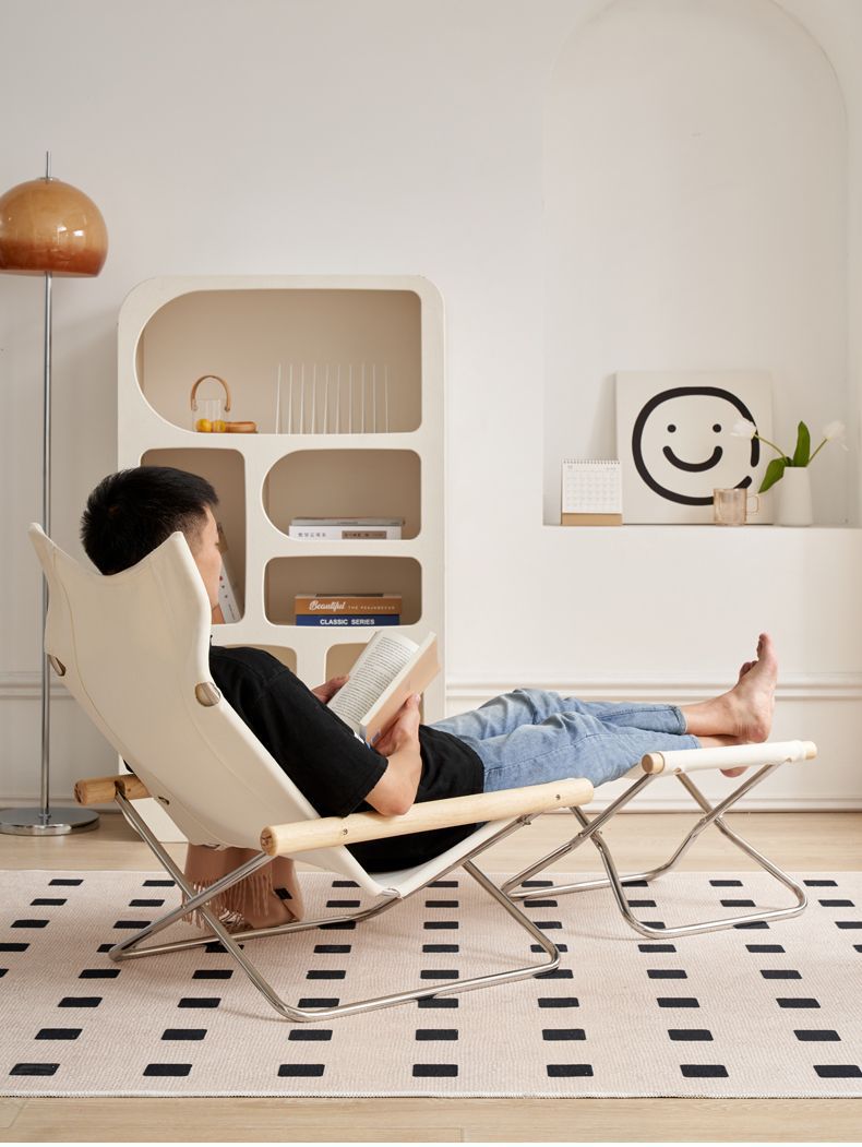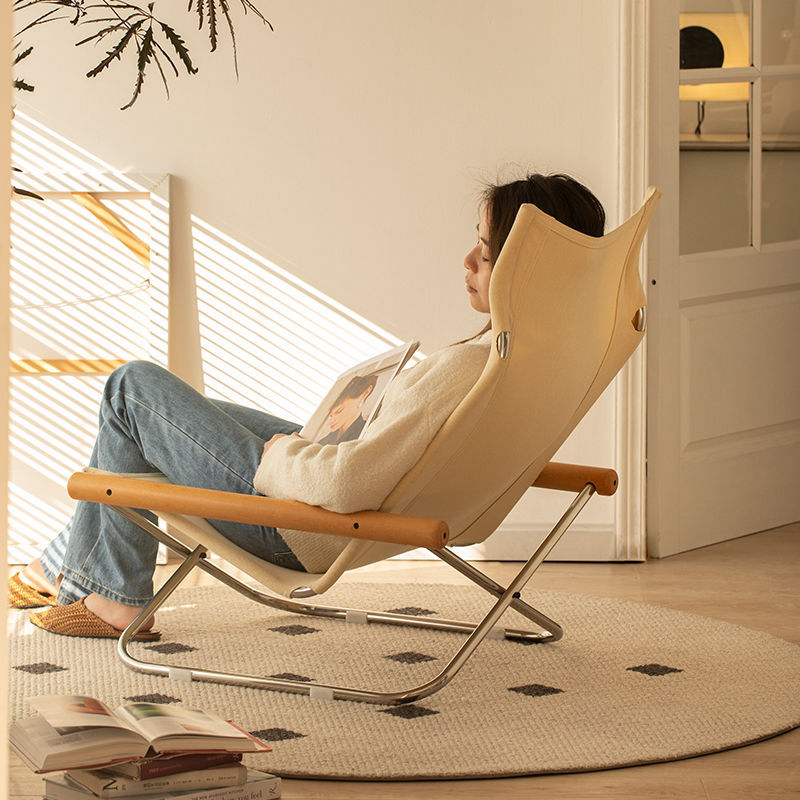 일본식 캔버스 접이식 의자 홈 발코니 게으른 안락 의자 현대 간단한 야외 점심 시간 싱글 레저 의자 금속스토어 가기