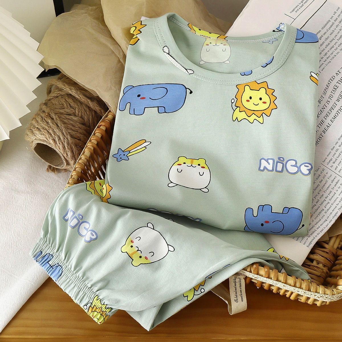 아동 속옷 세트 아이슬란드 면 여름 얇은 중대형 아동 가을 옷과 긴 바지 소년 소녀 잠옷 아기 면 스웨터