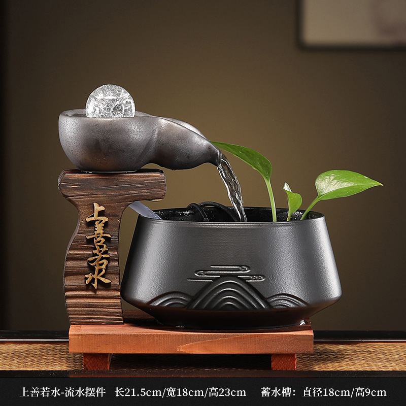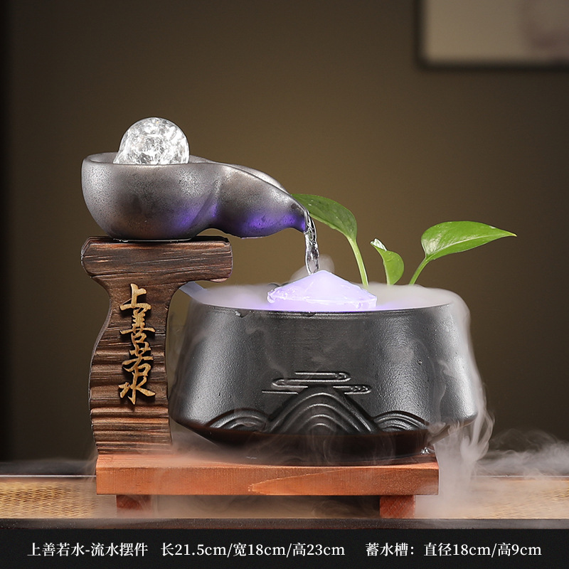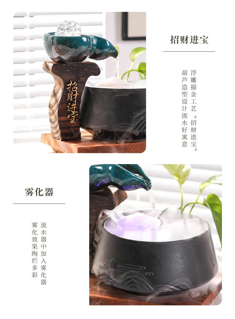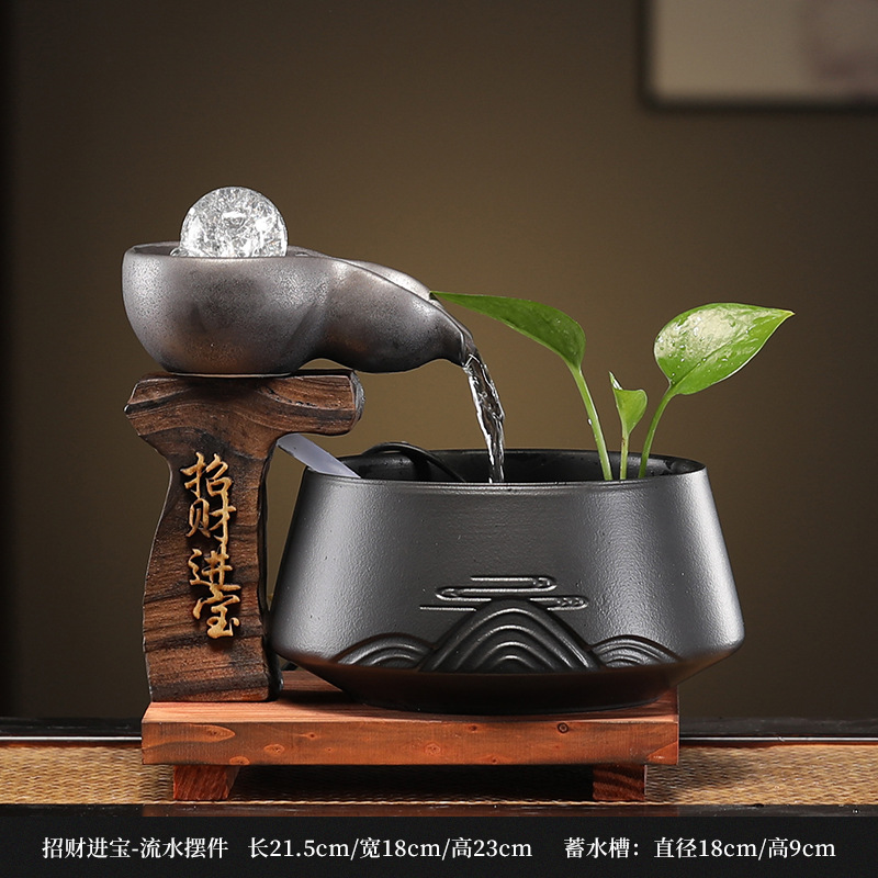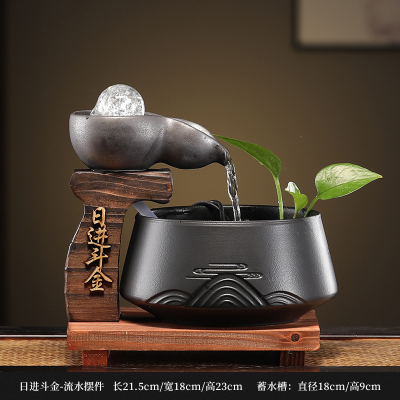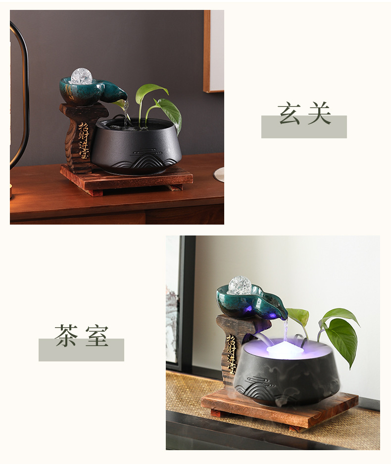 사무실 프런트 데스크 행운의 물 분수 장식품 순환 물 가습 간단한 거실 입구 돈 데스크탑 선물