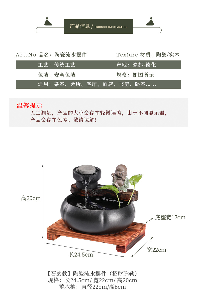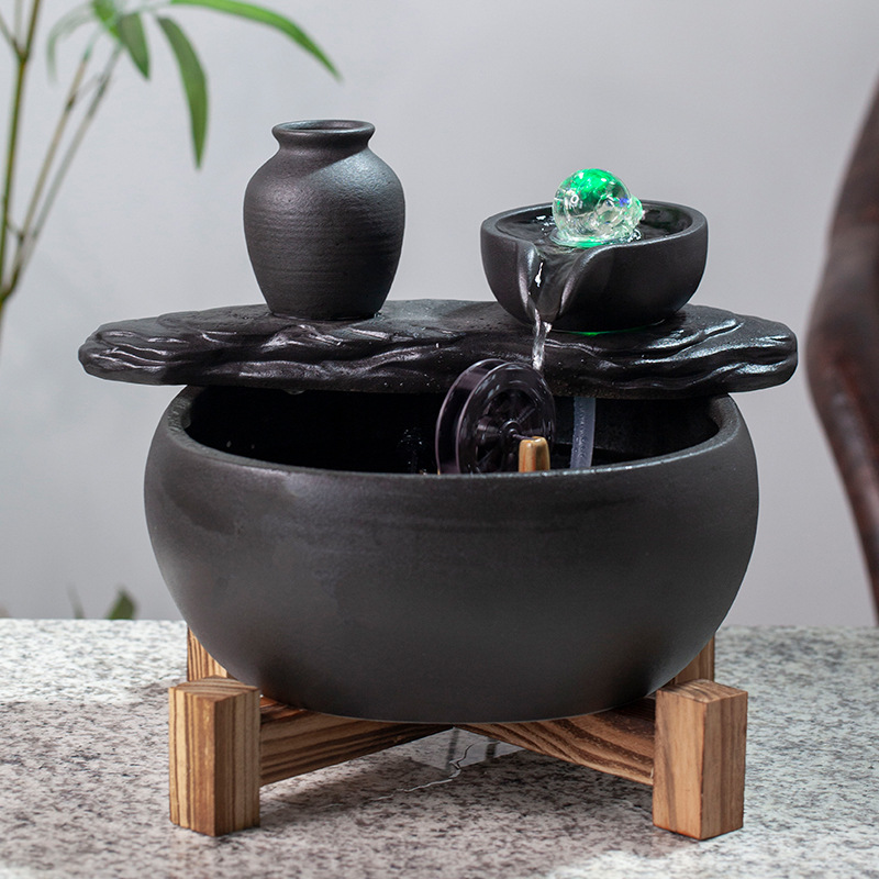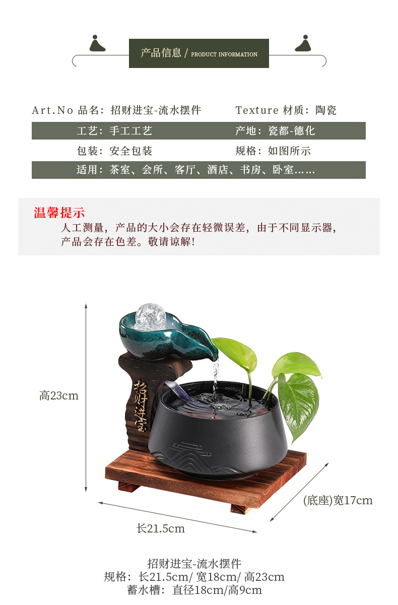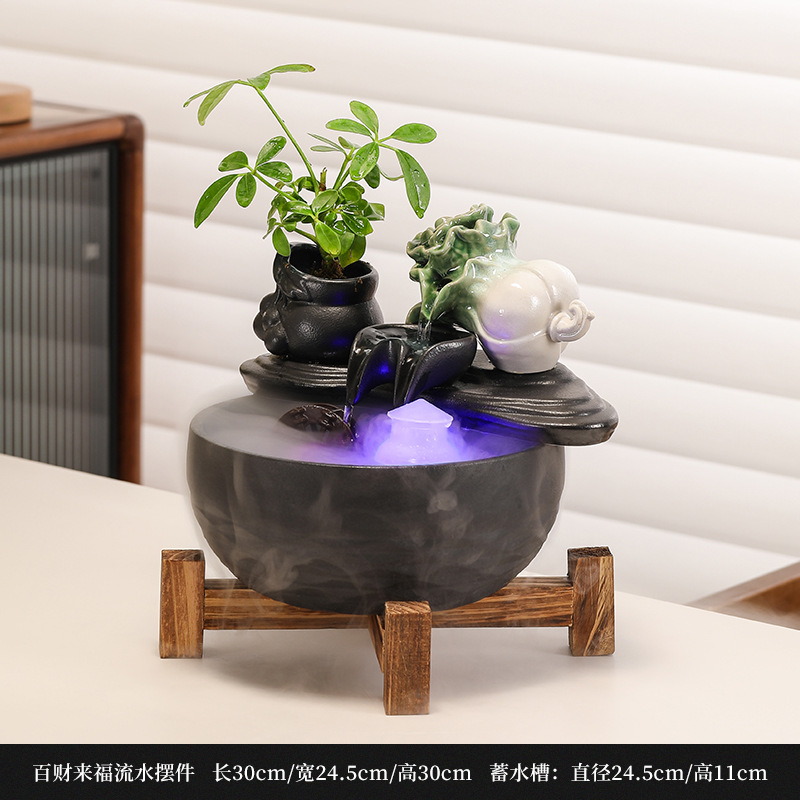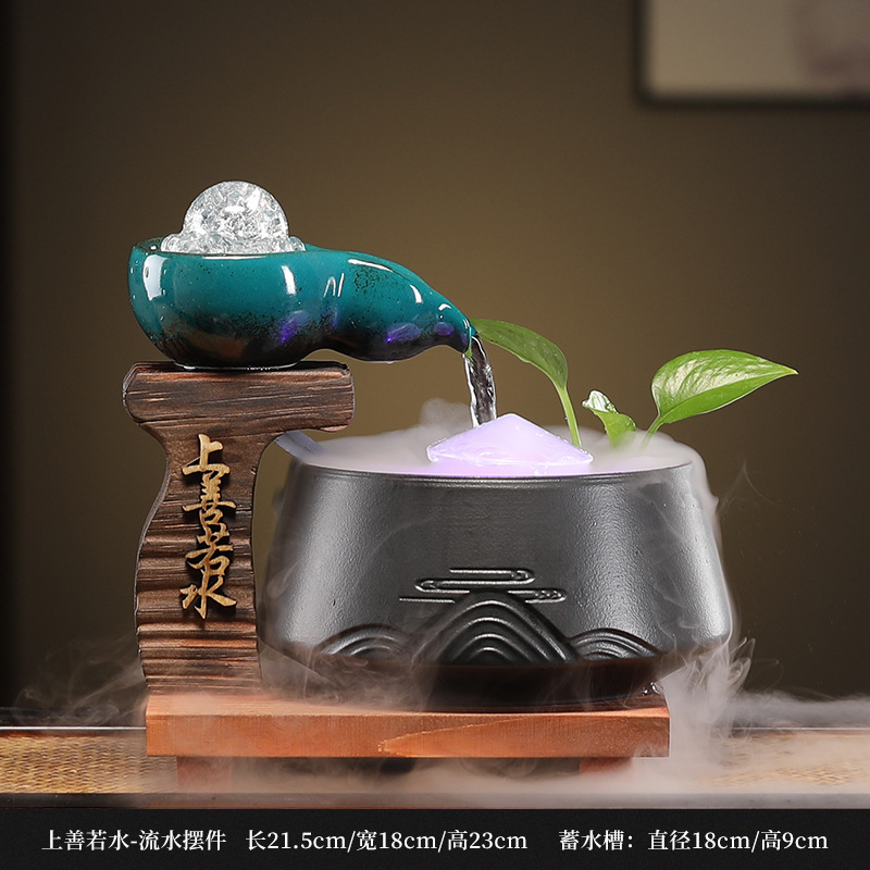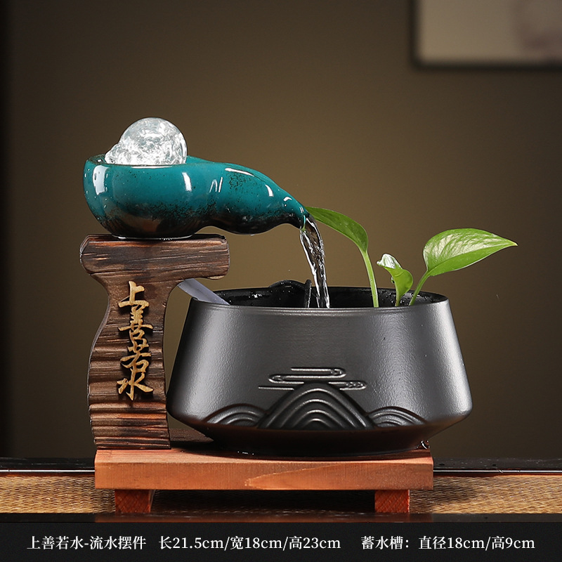 사무실 프런트 데스크 행운의 물 분수 장식품 순환 물 가습 간단한 거실 입구 돈 데스크탑 선물
